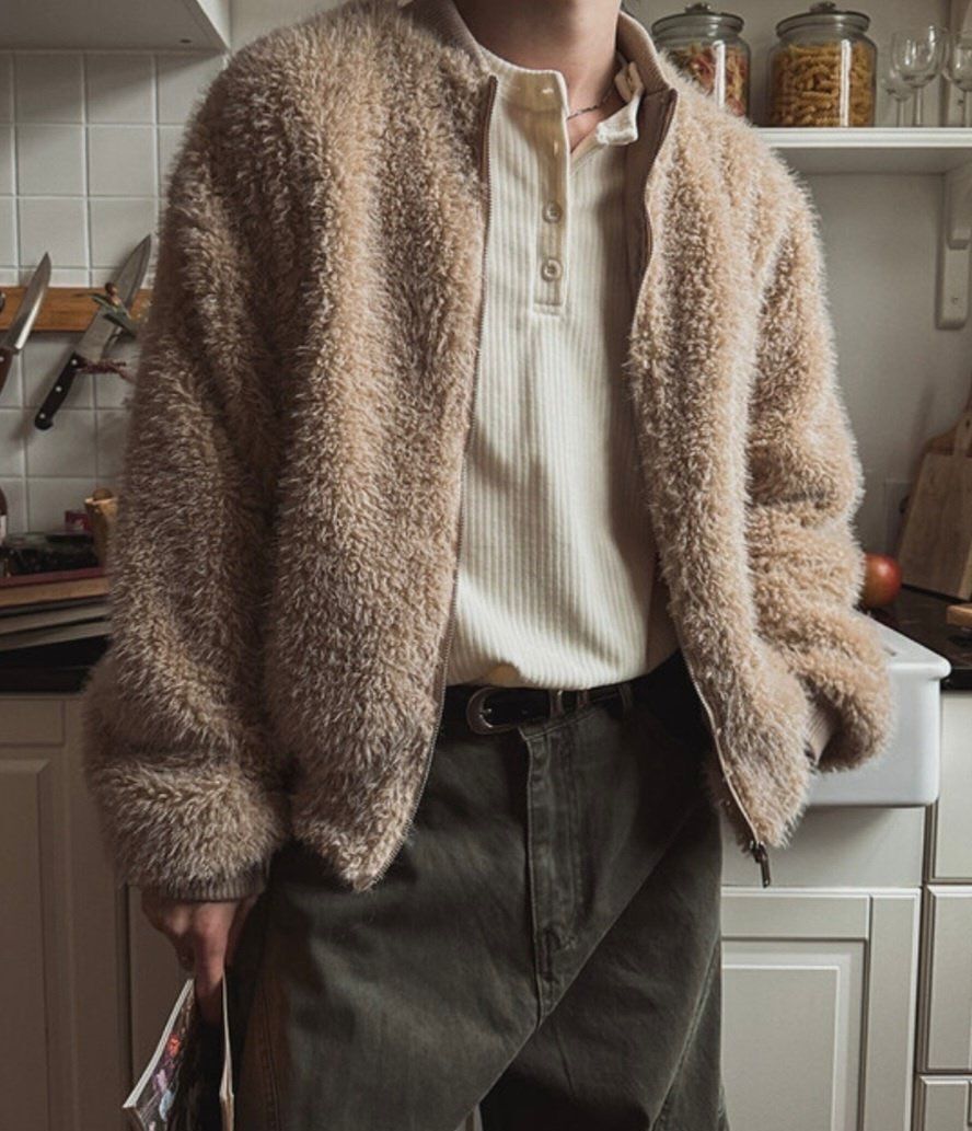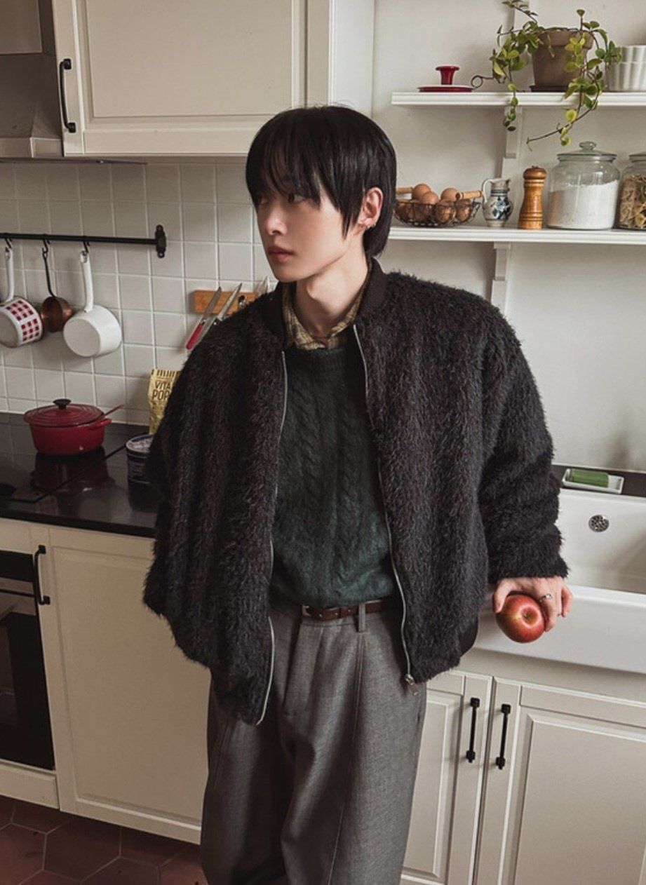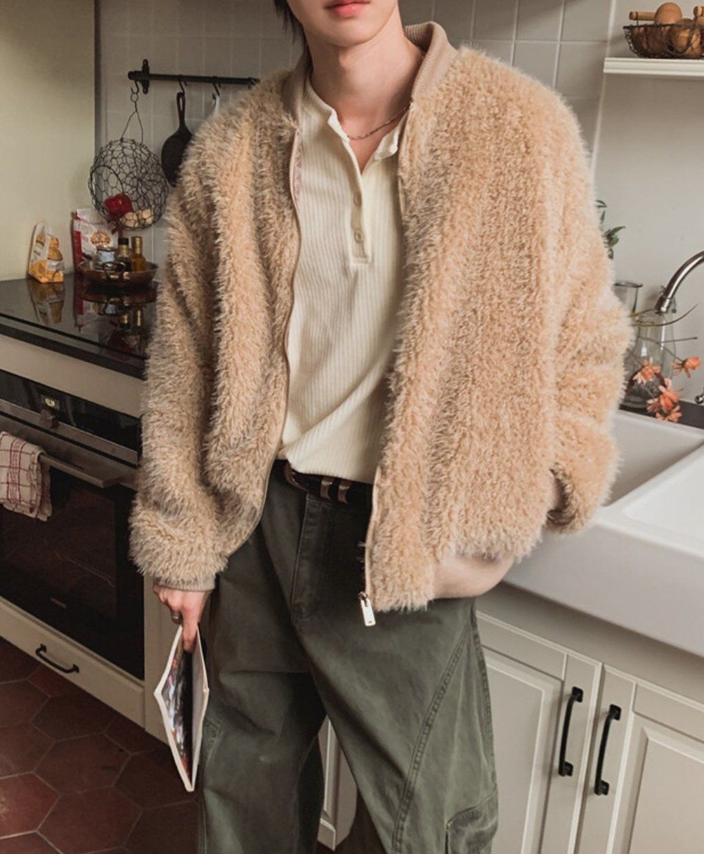 淨色拉鍊毛毛外套 MALENKII-190JK