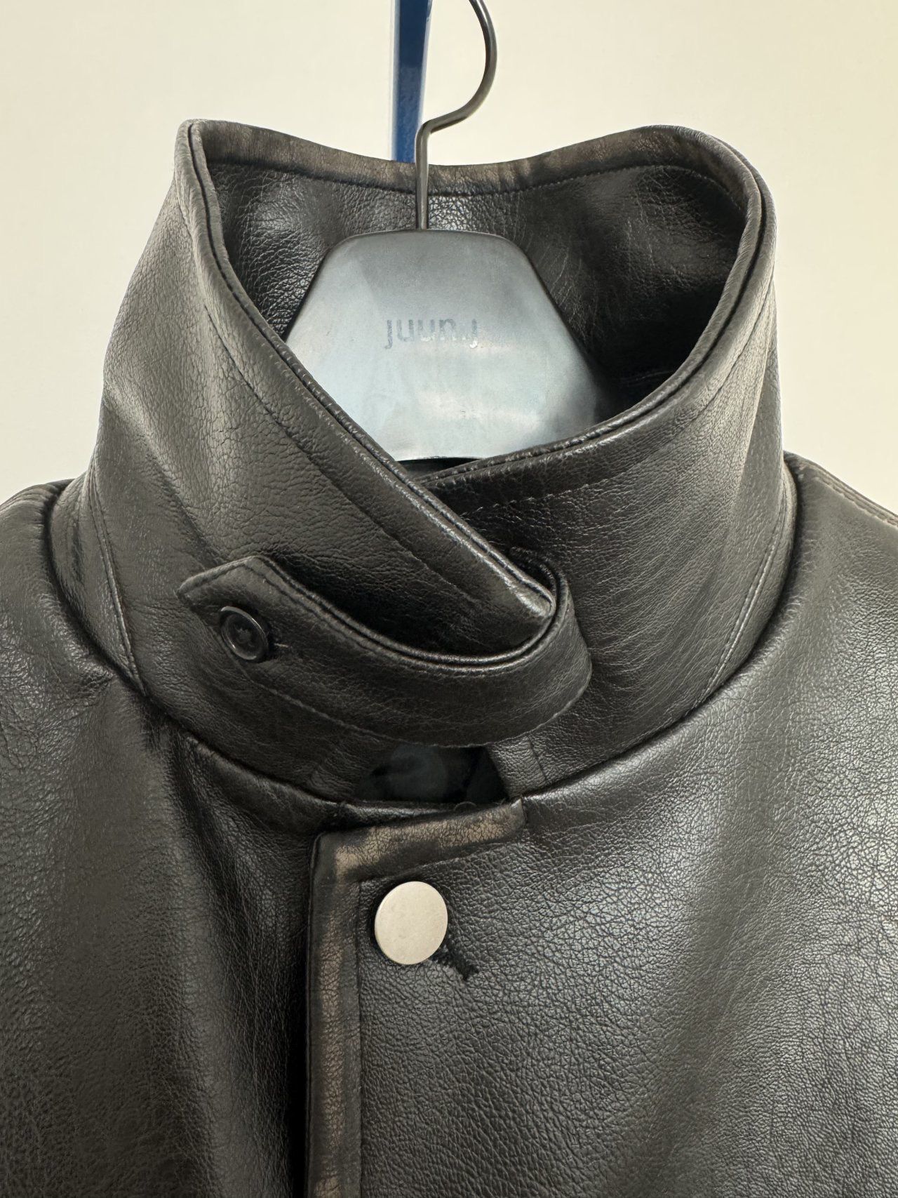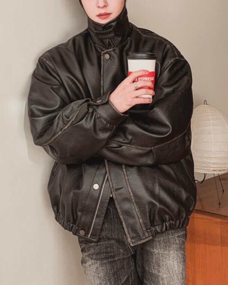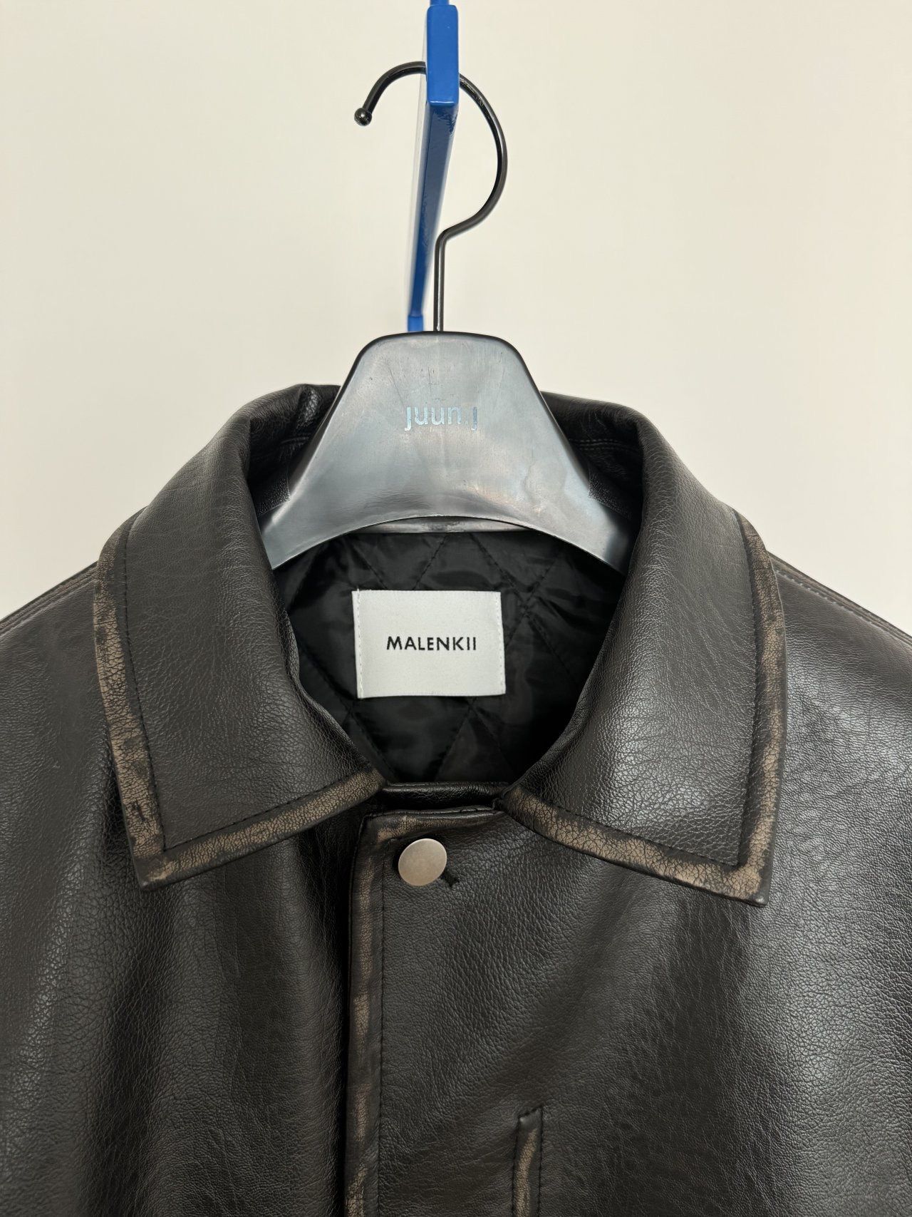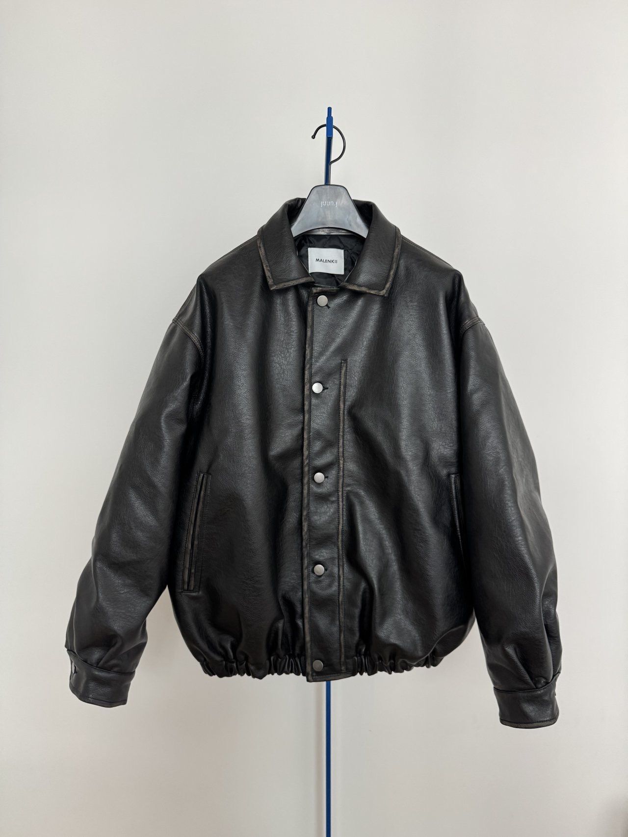 反領合成皮拉鍊外套(薄夾棉) MALENKII-193JK
