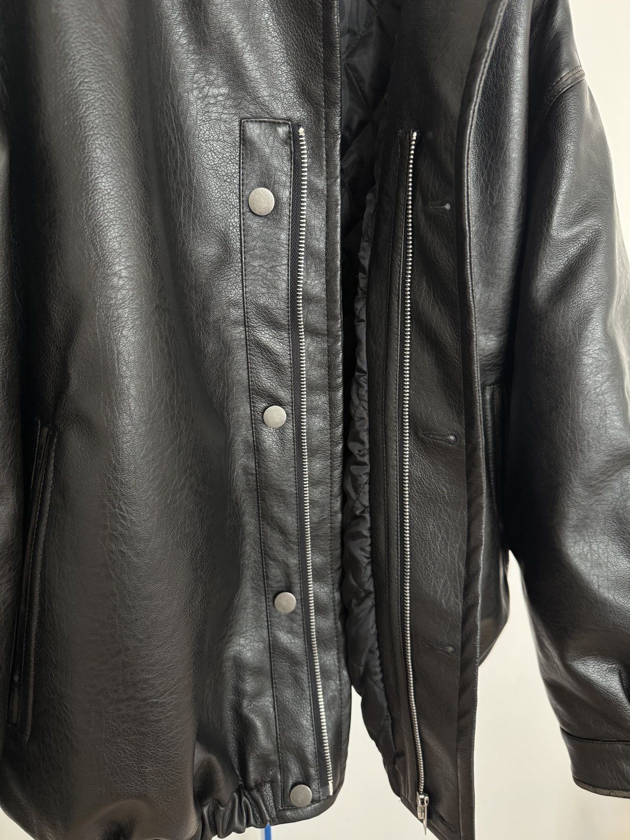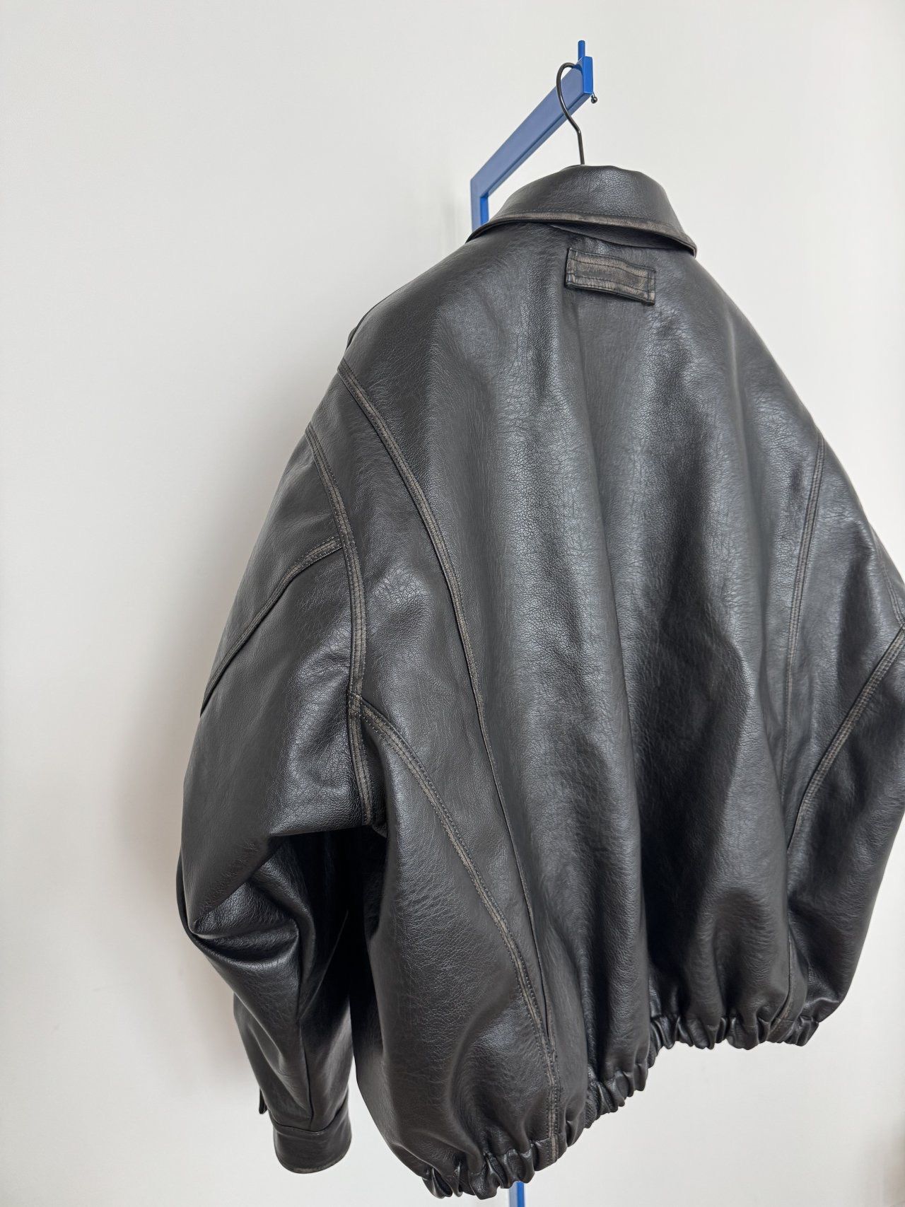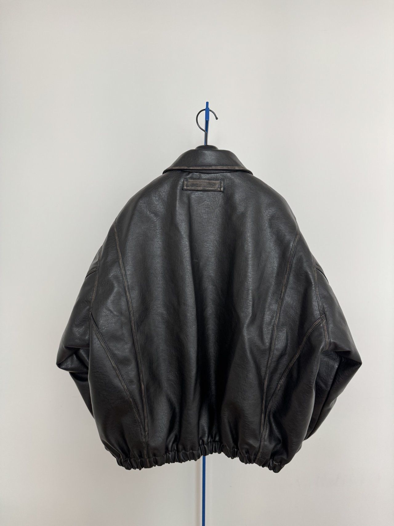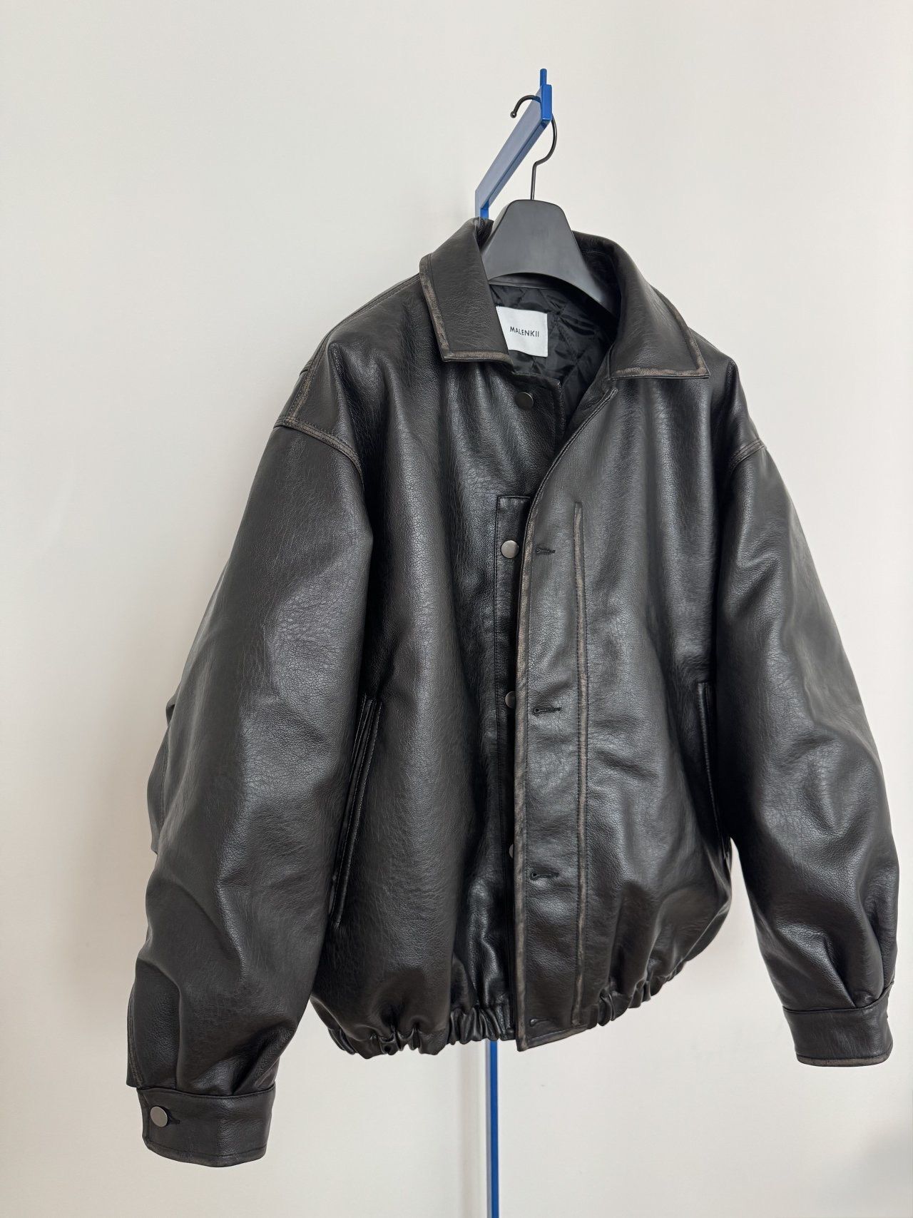 反領合成皮拉鍊外套(薄夾棉) MALENKII-193JK