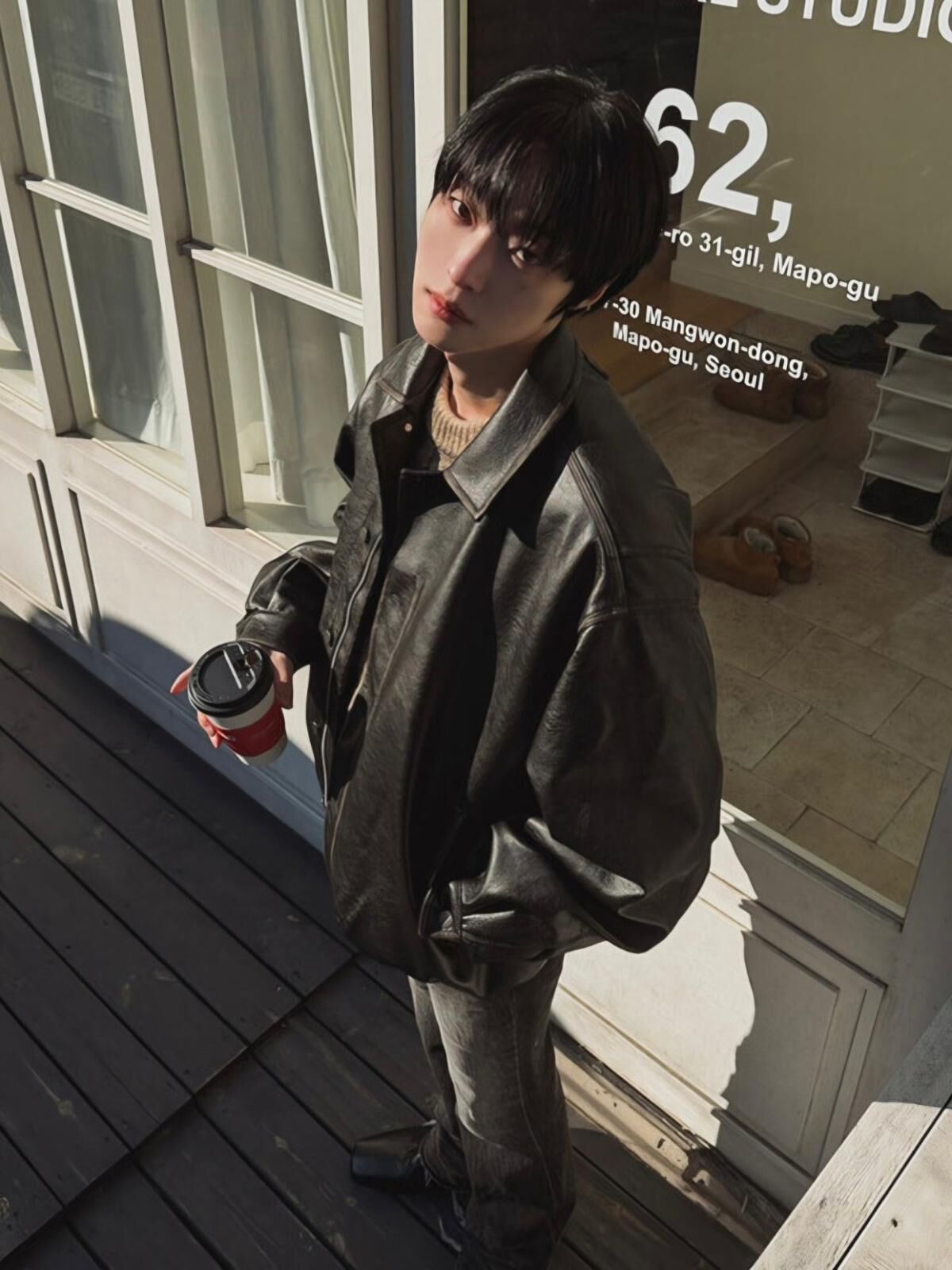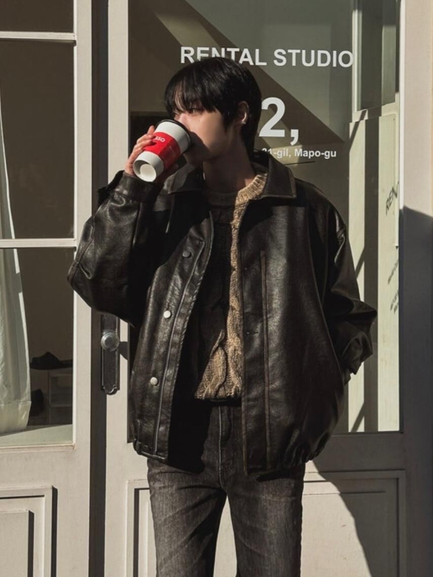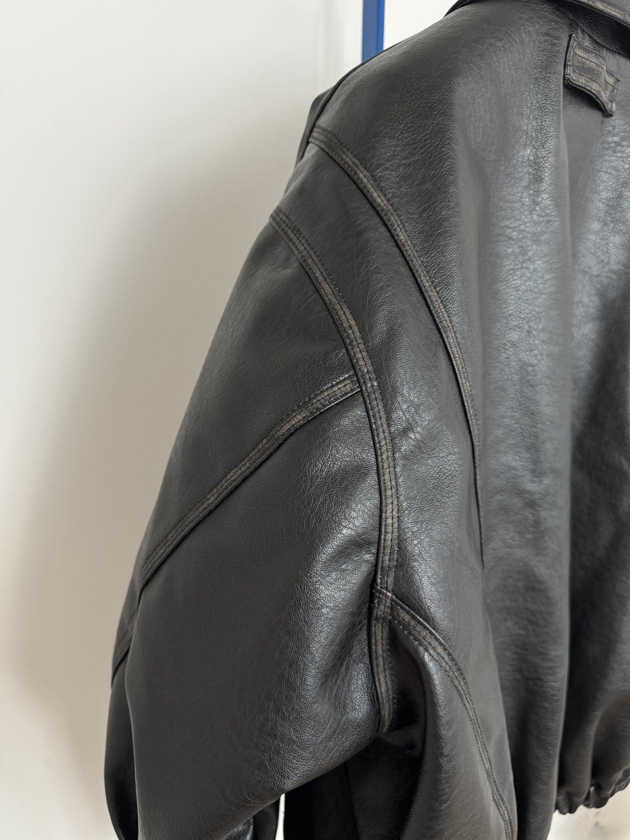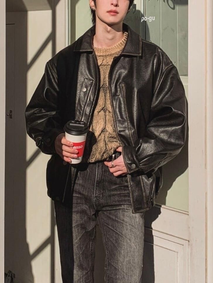 反領合成皮拉鍊外套(薄夾棉) MALENKII-193JK