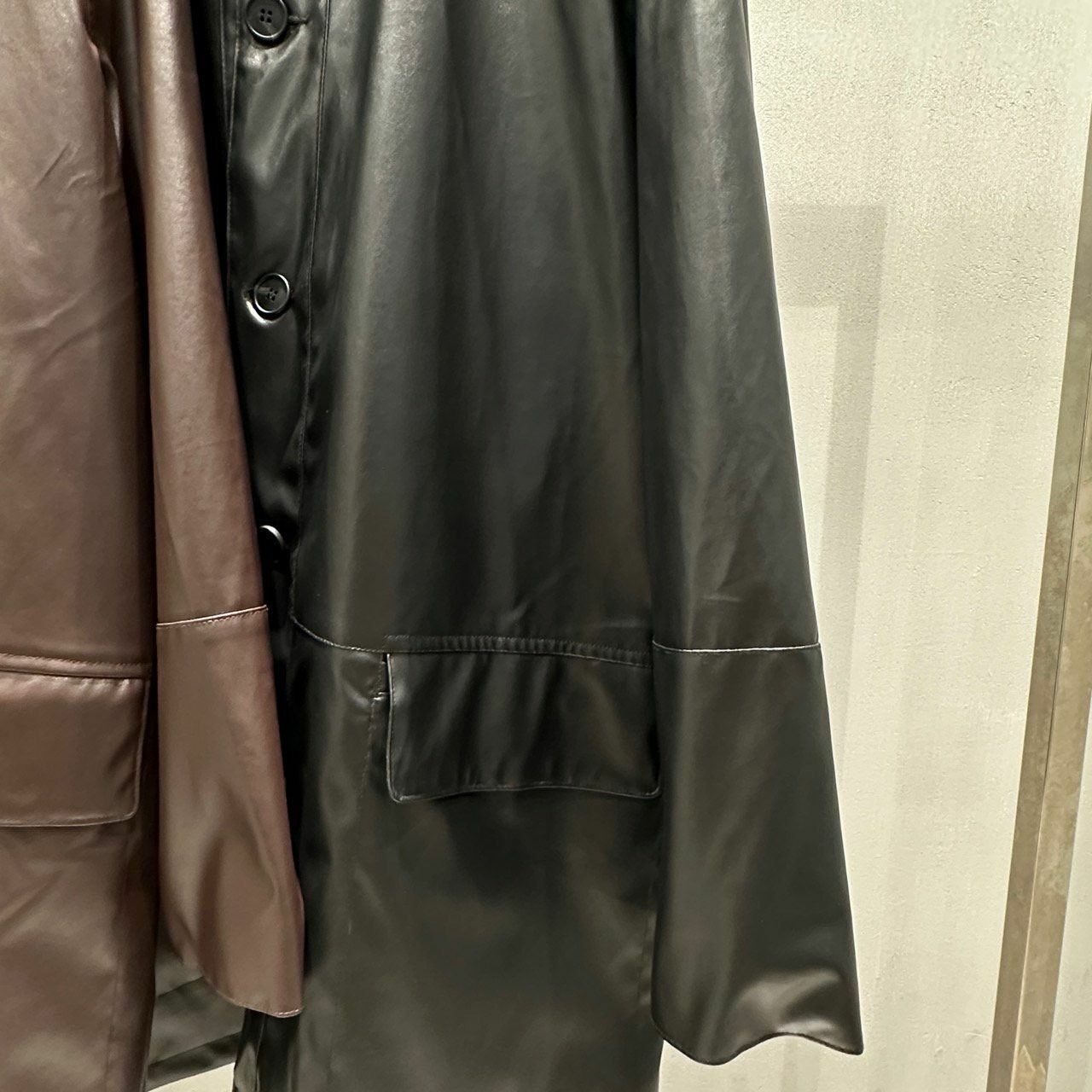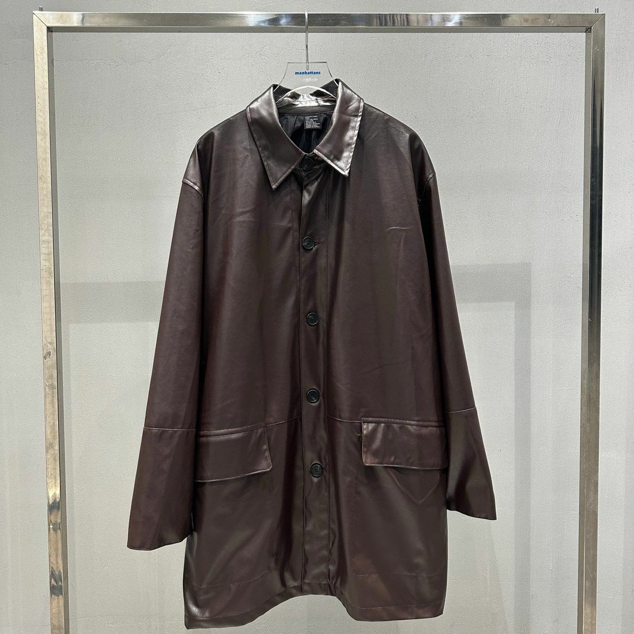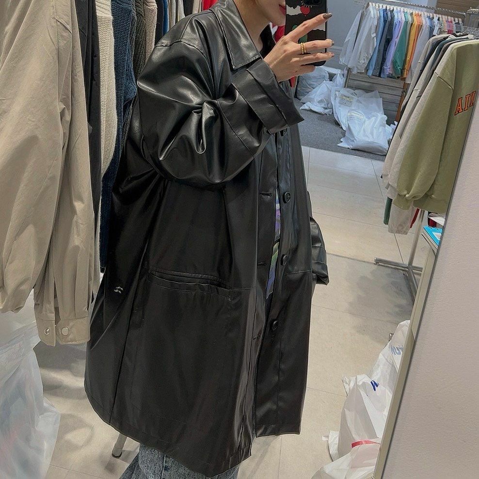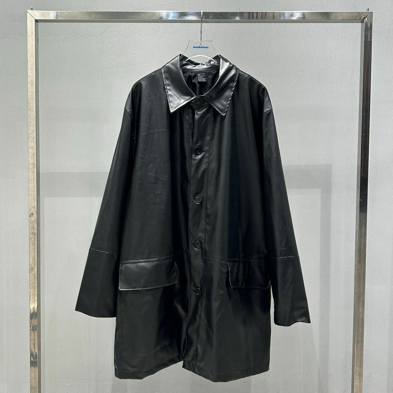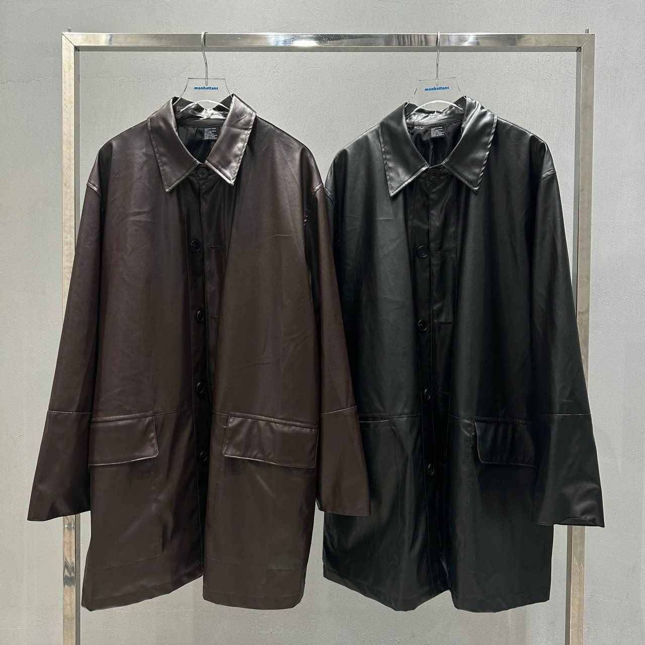 反領開胸合成皮中長褸 manhattans-001JK