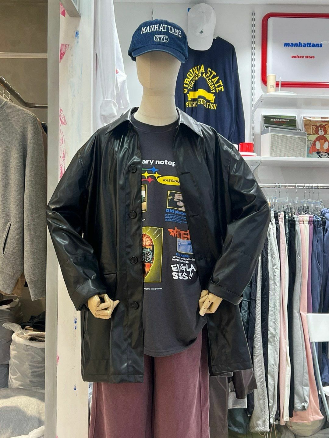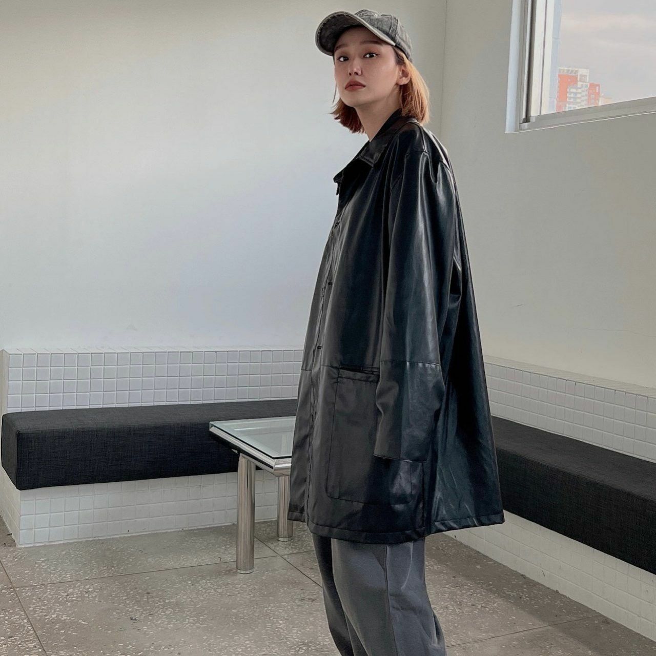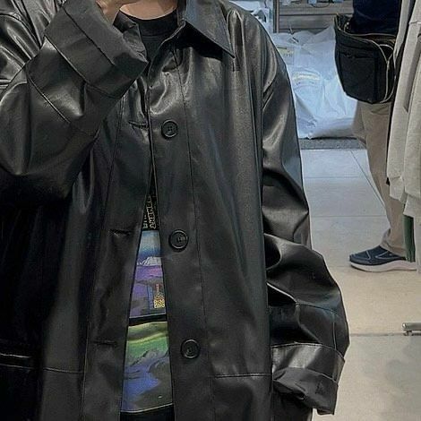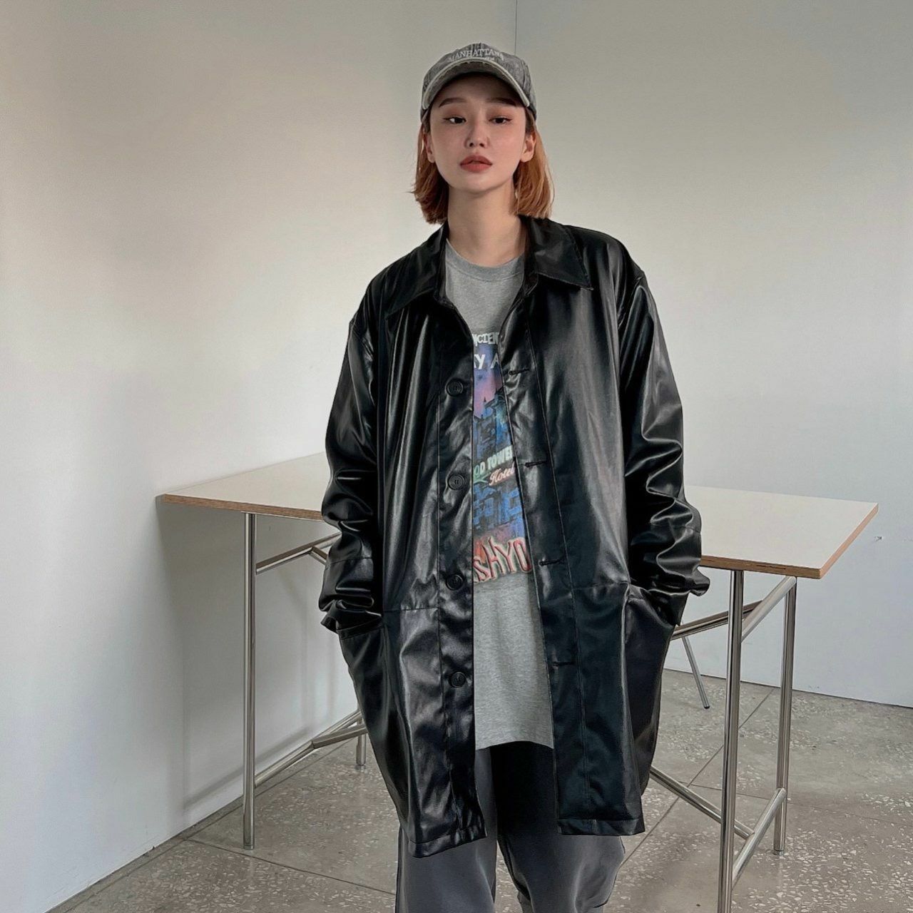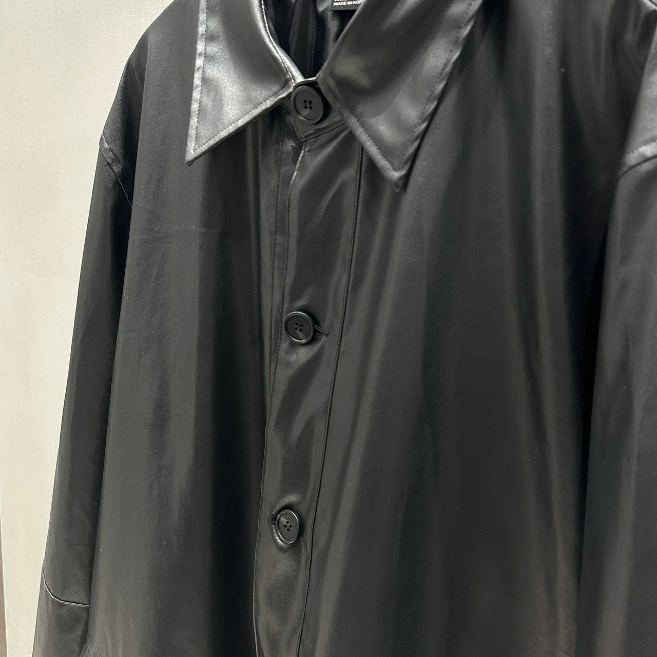 反領開胸合成皮中長褸 manhattans-001JK