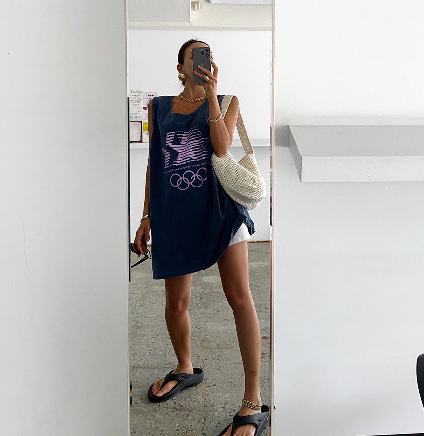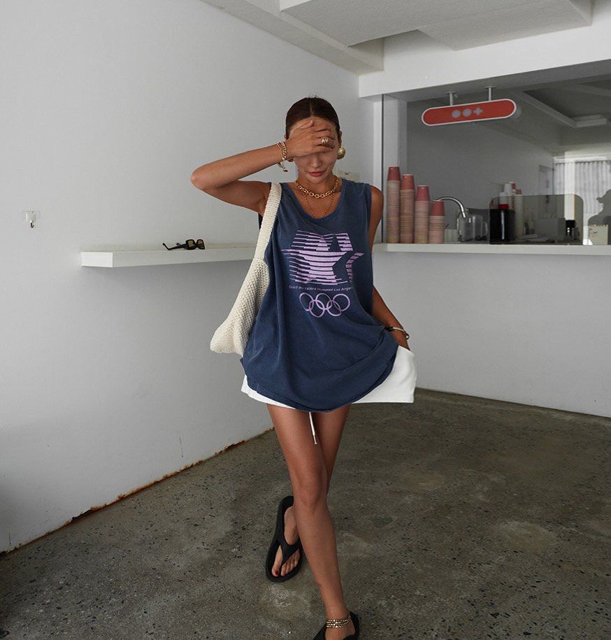 OverSize英文字圖案背心 manhattans-043V