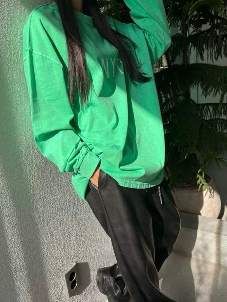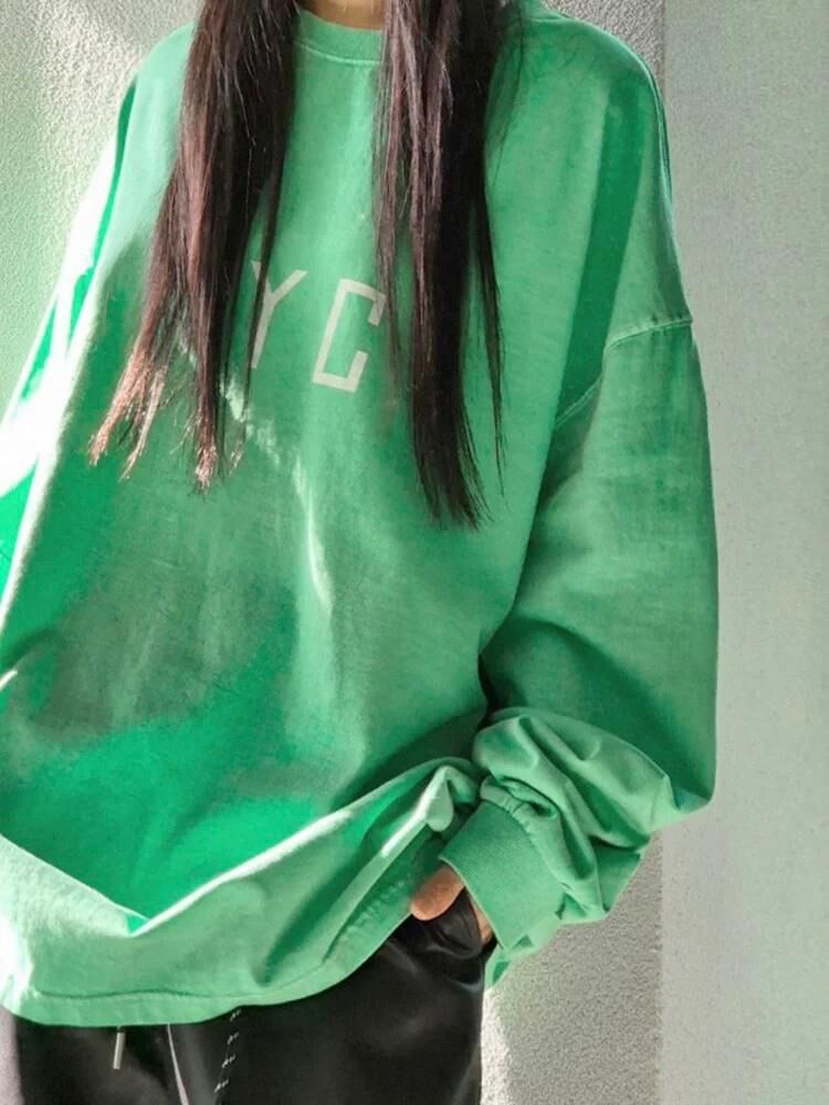 洗水英文字長袖衫 manhattans-046T