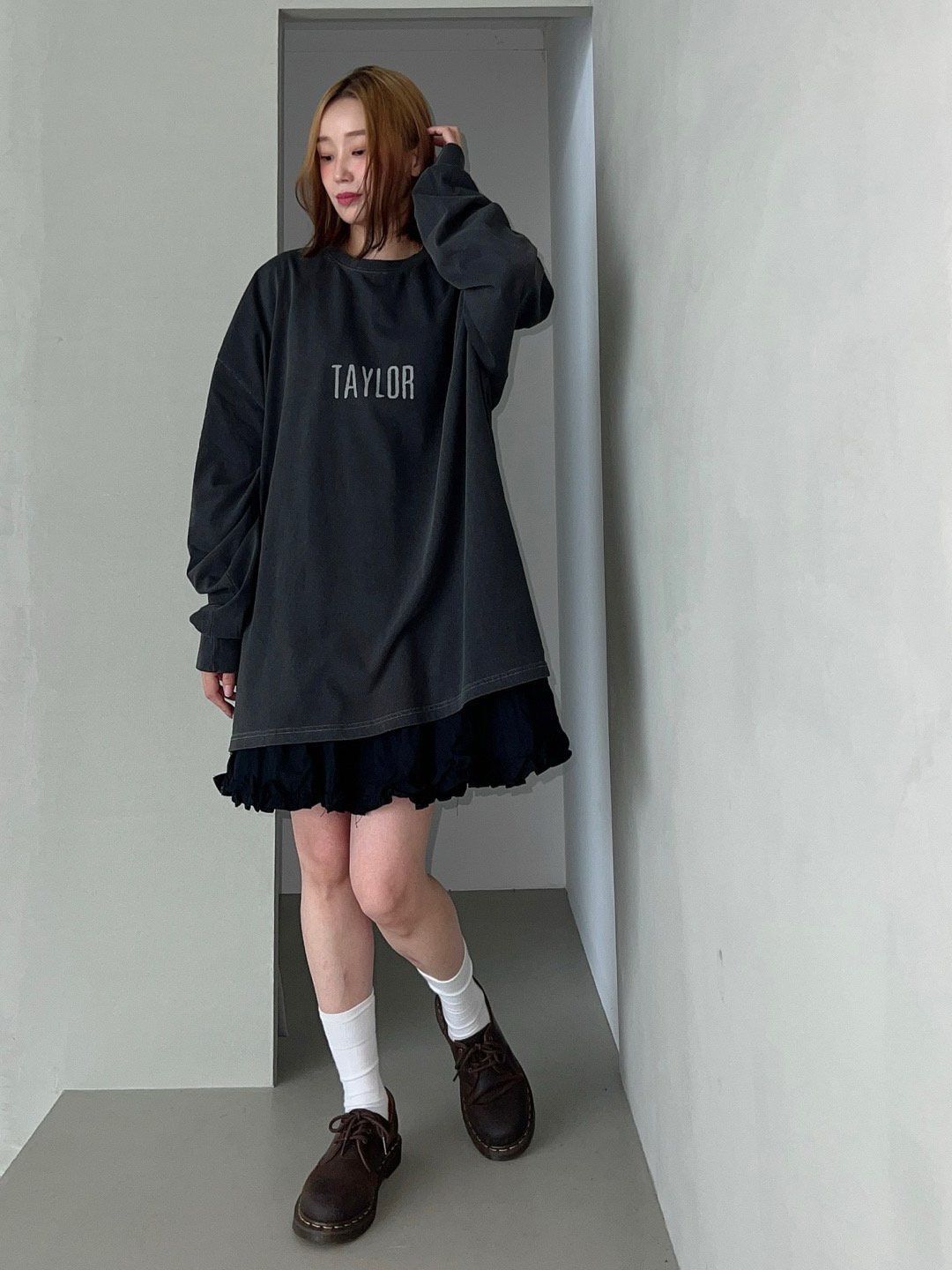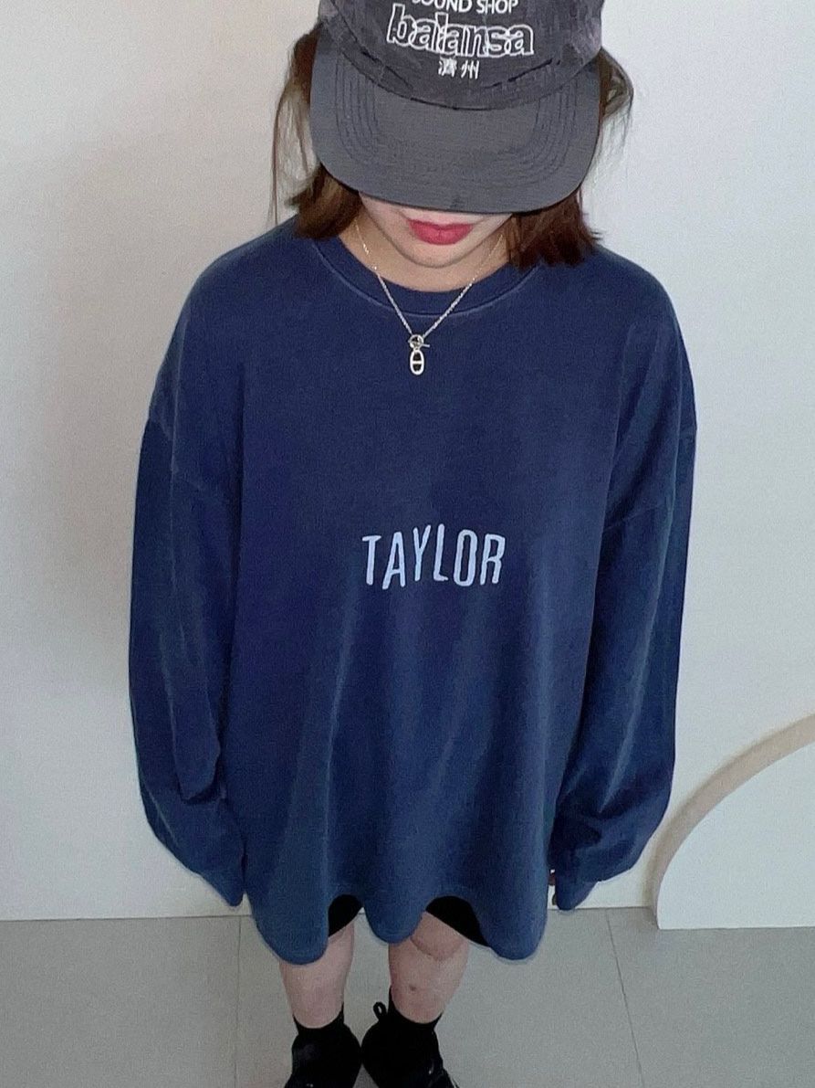 OverSize洗水英文字長袖衫 manhattans-052T