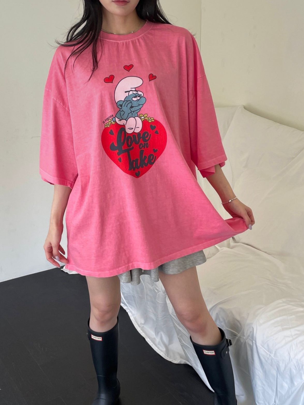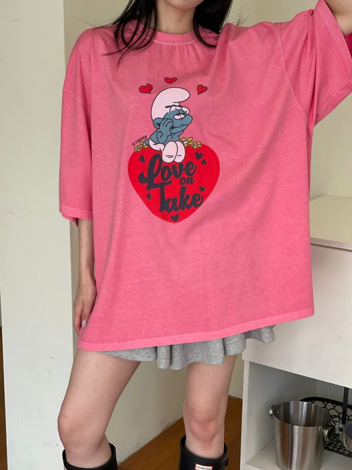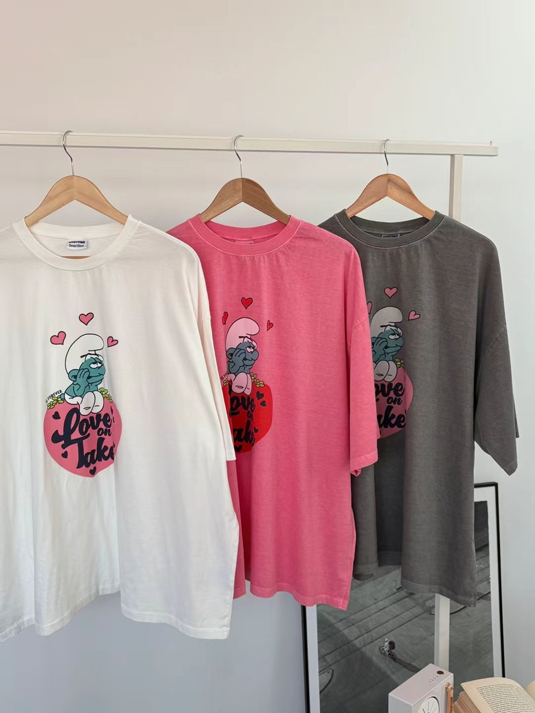 OverSize洗水卡通圖案英文字短袖Tee MB-049T