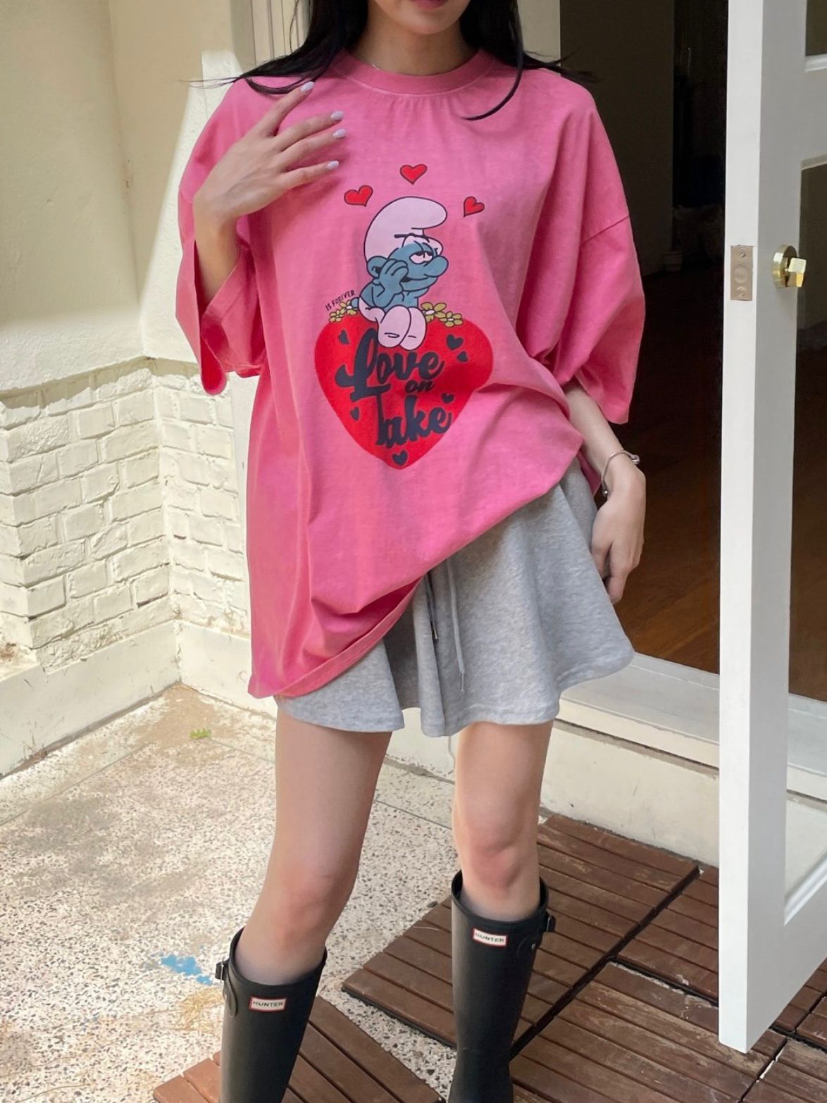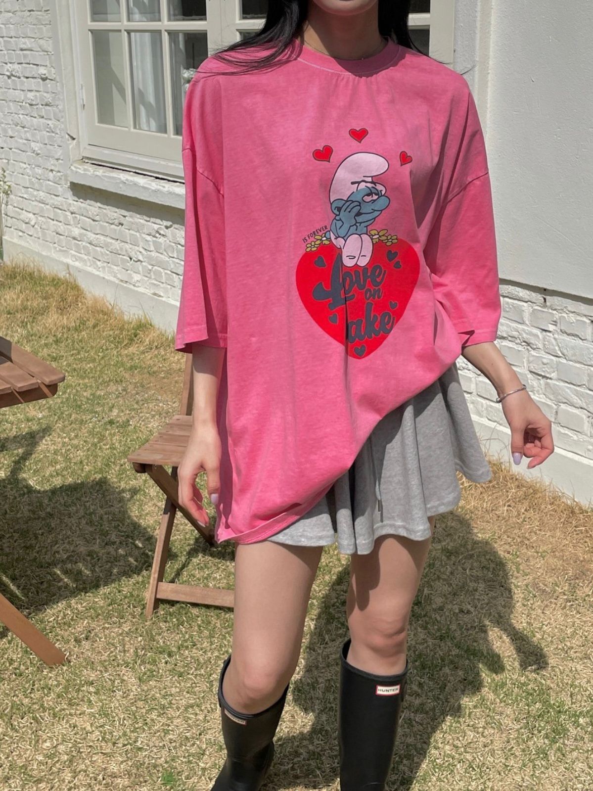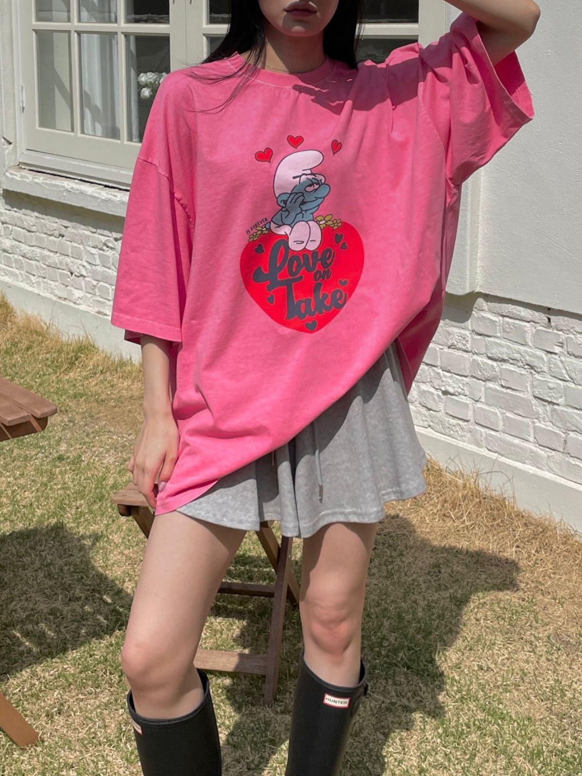 OverSize洗水卡通圖案英文字短袖Tee MB-049T