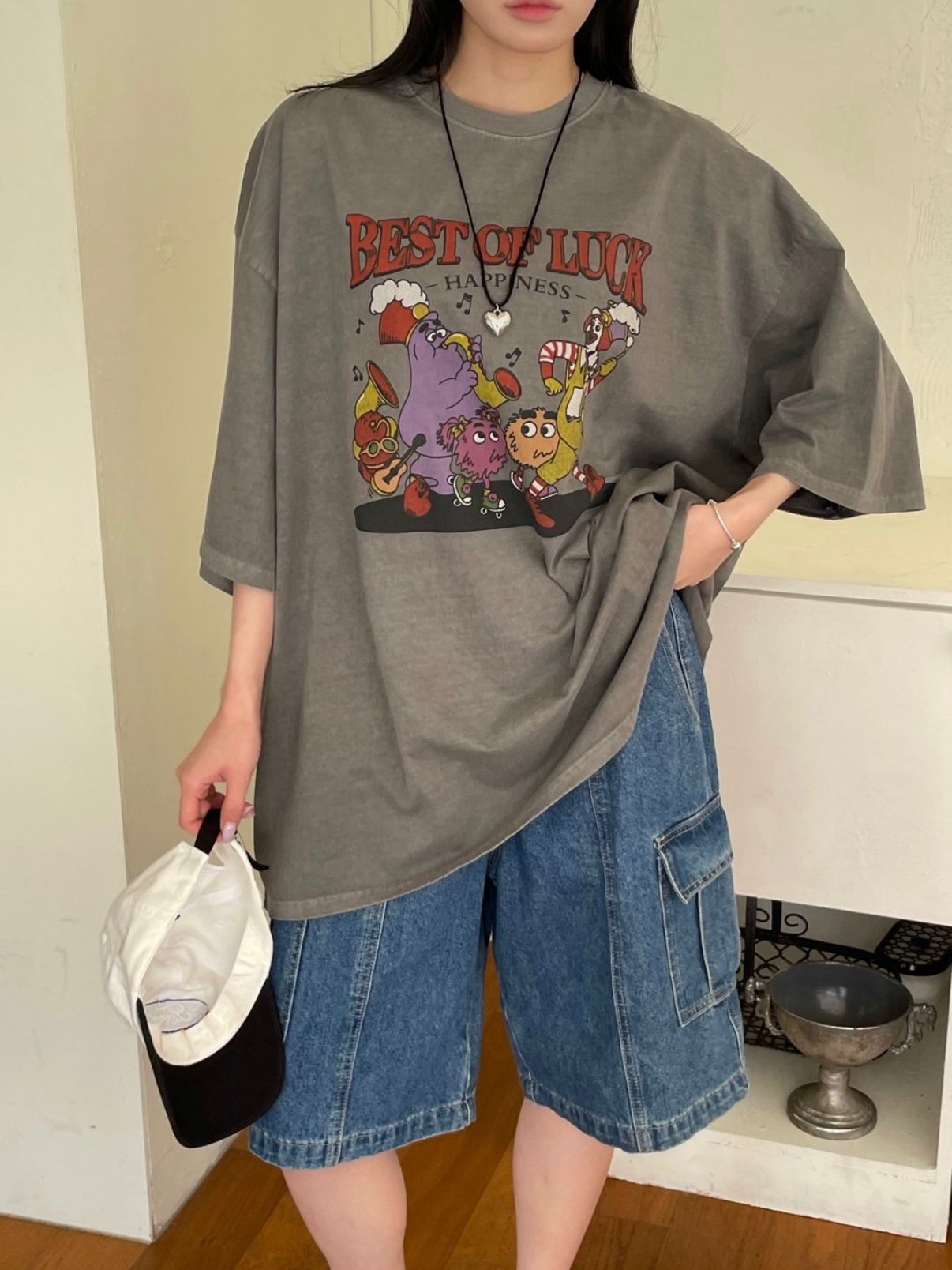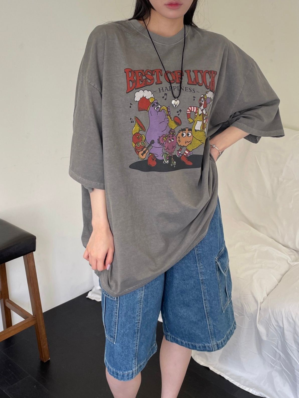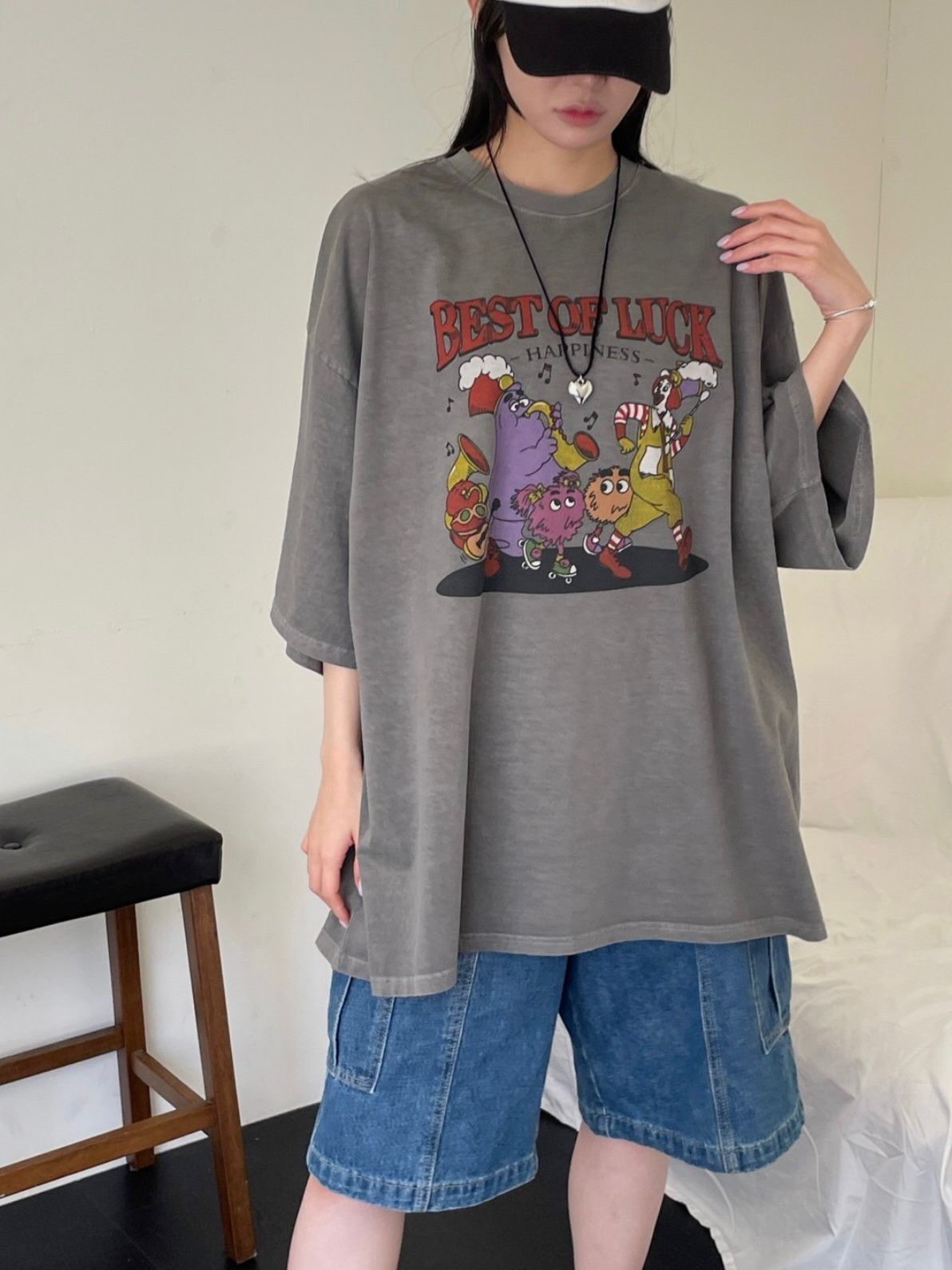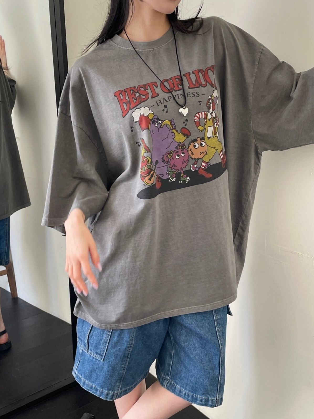 OverSize洗水卡通圖案英文字短袖Tee MB-051T