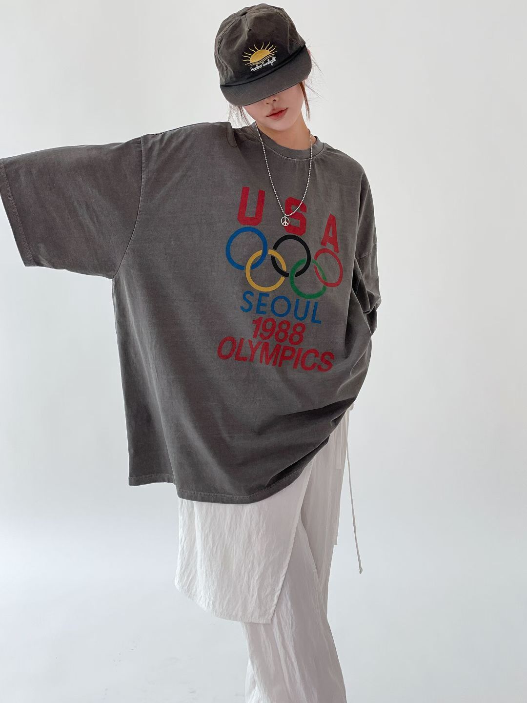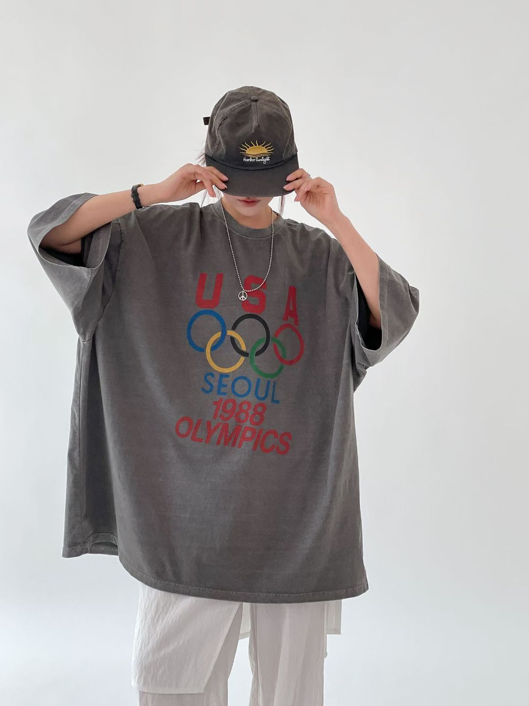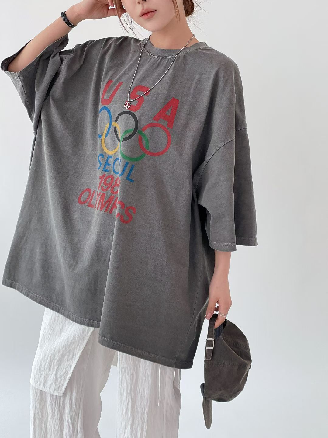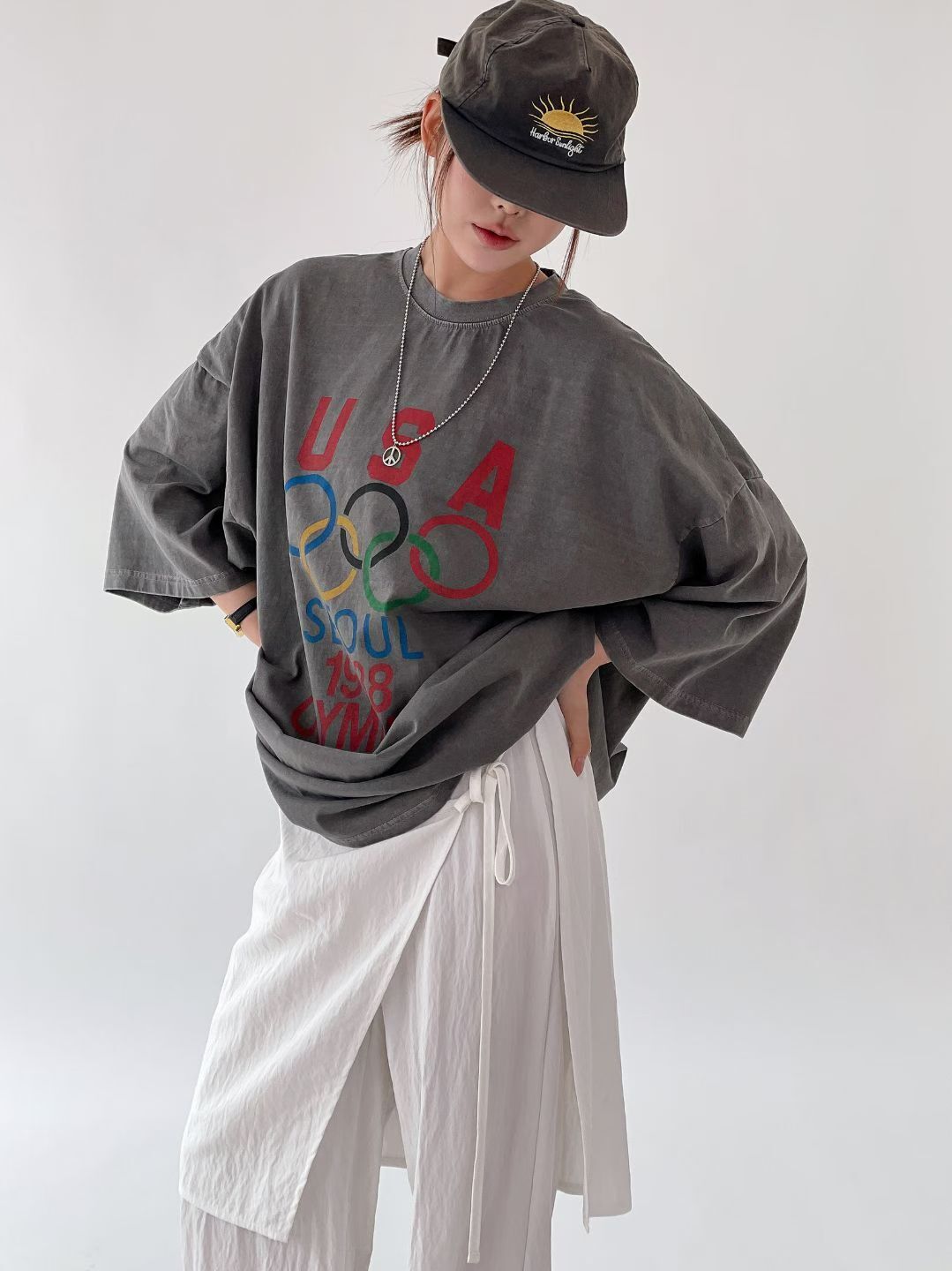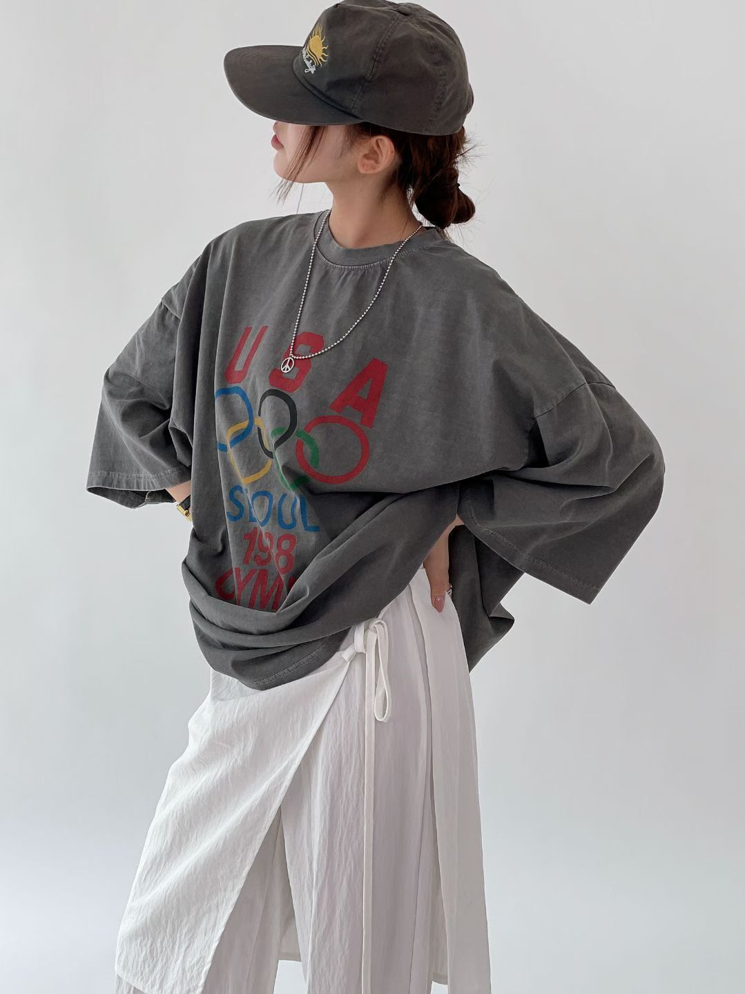 OverSize洗水英文字圖案短袖Tee MB-054T