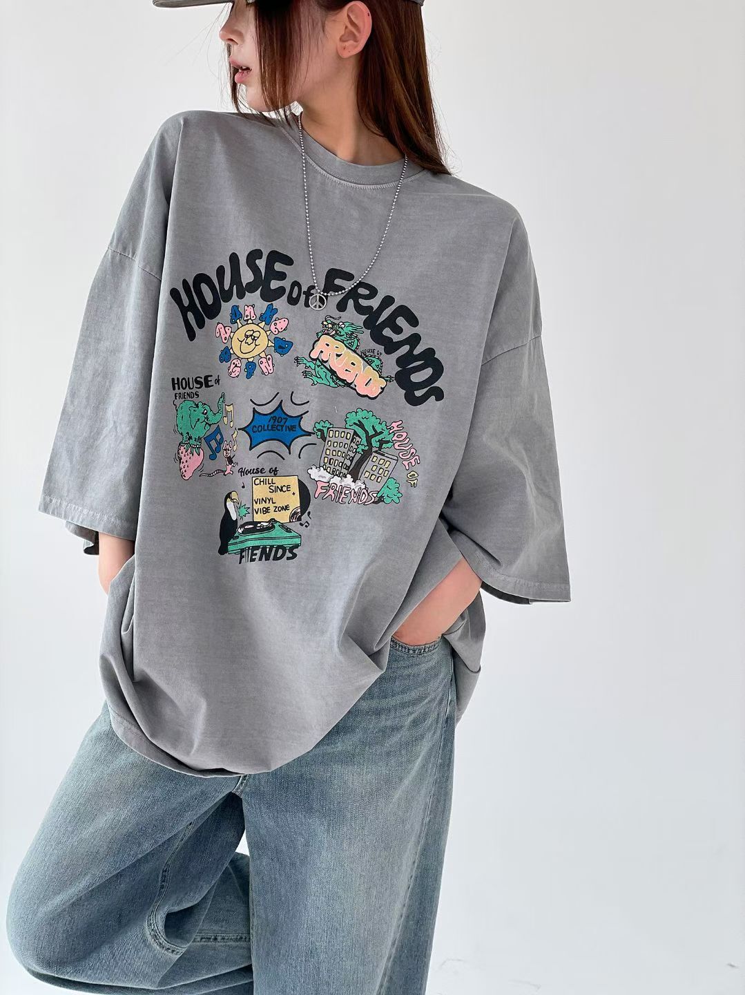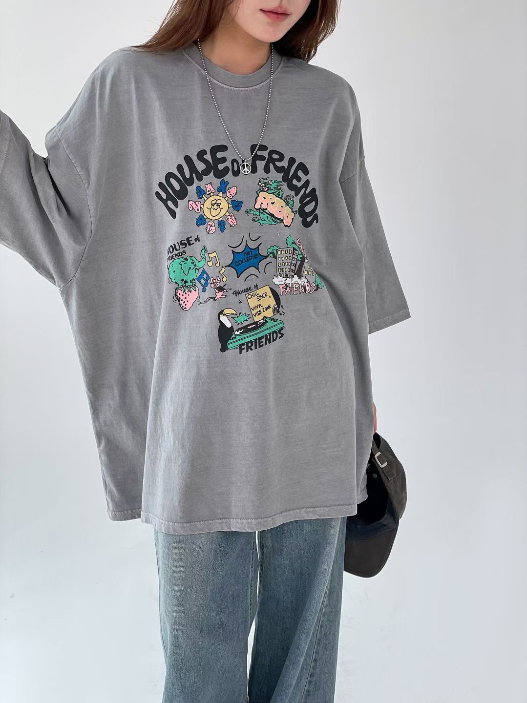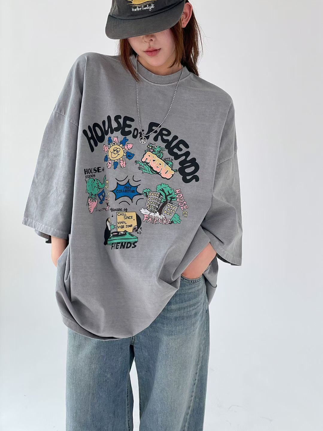 OverSize洗水英文字圖案短袖Tee MB-056T