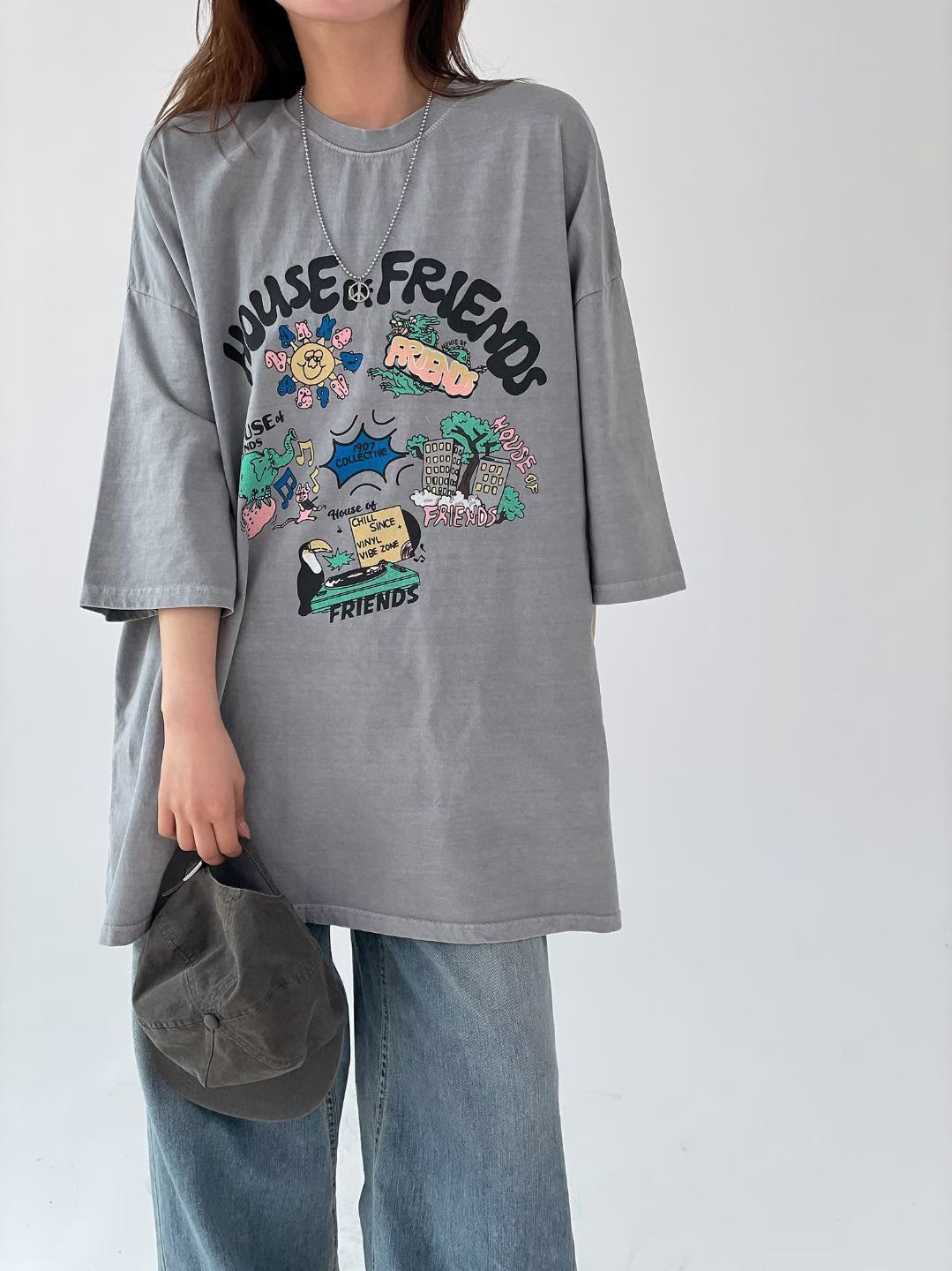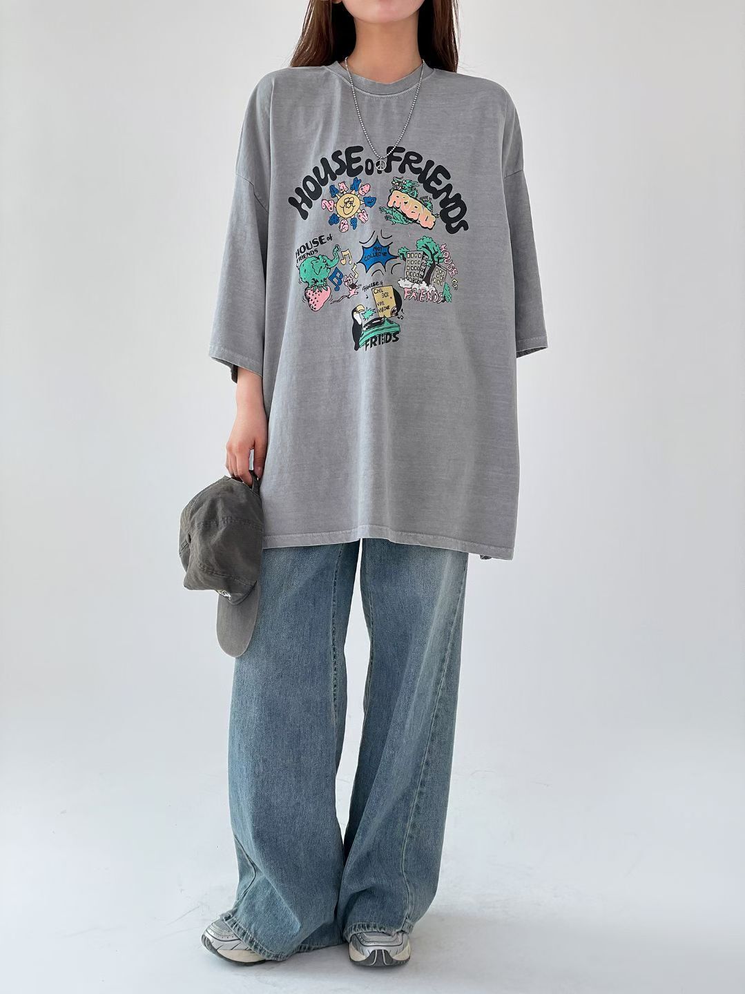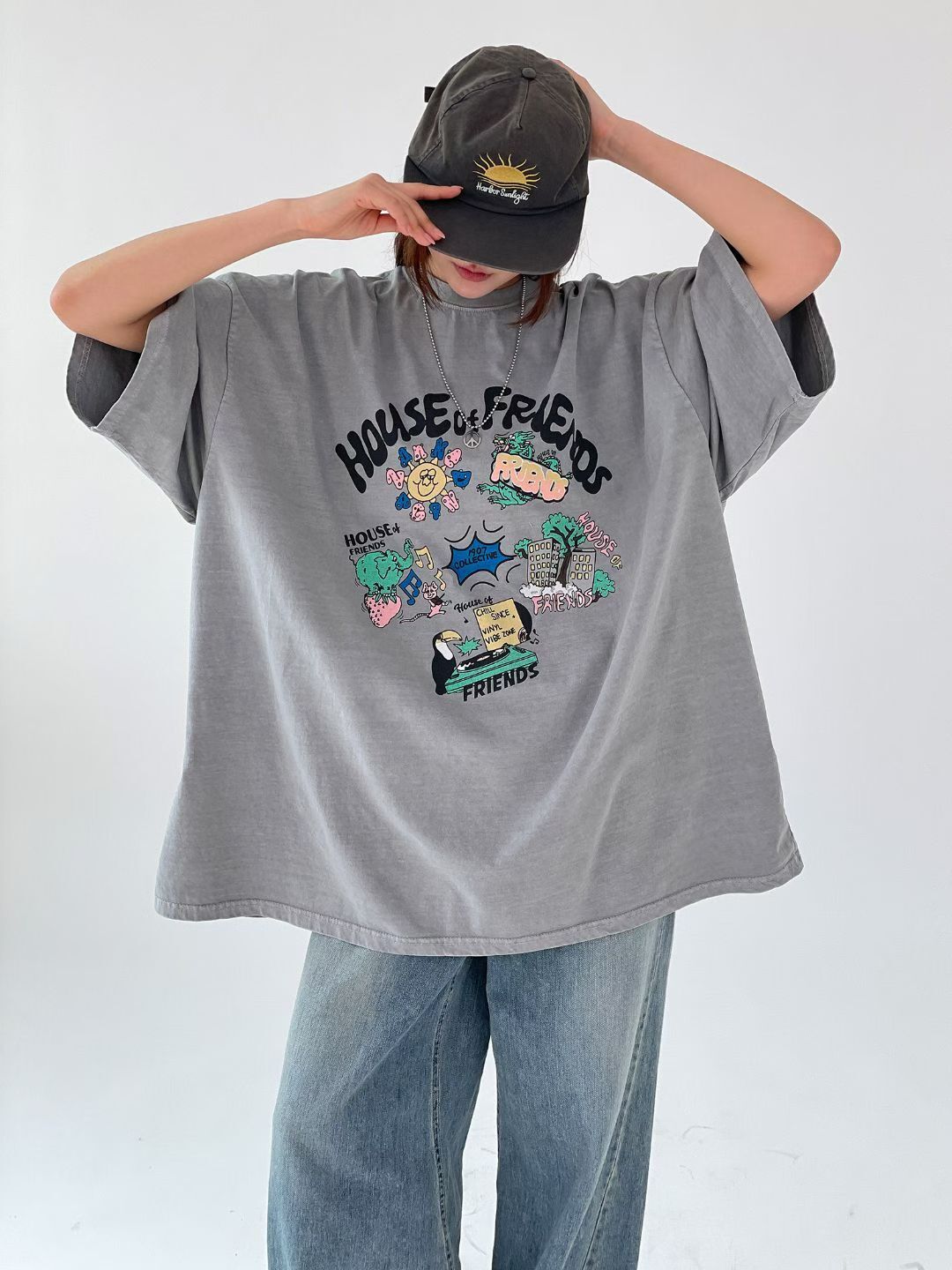 OverSize洗水英文字圖案短袖Tee MB-056T