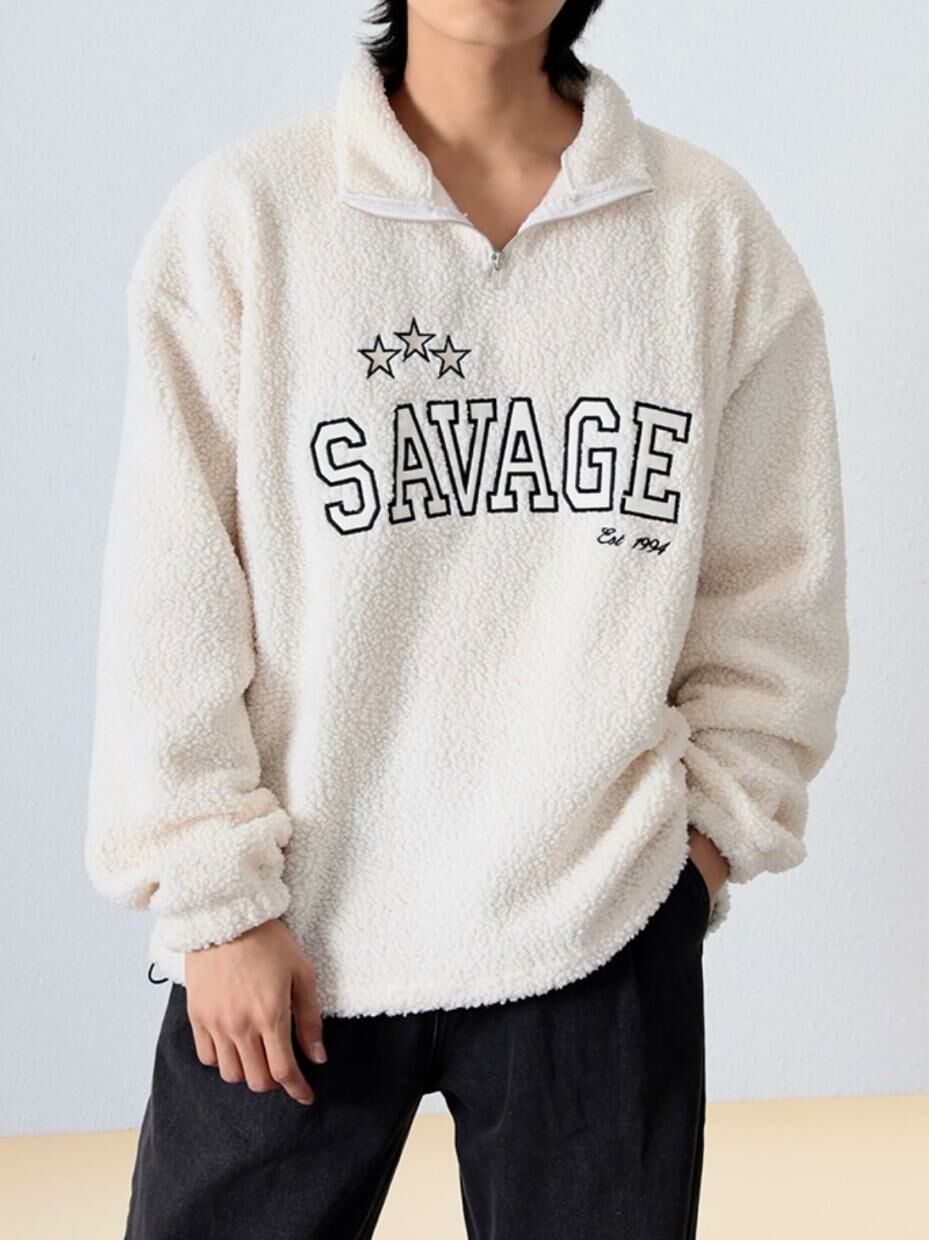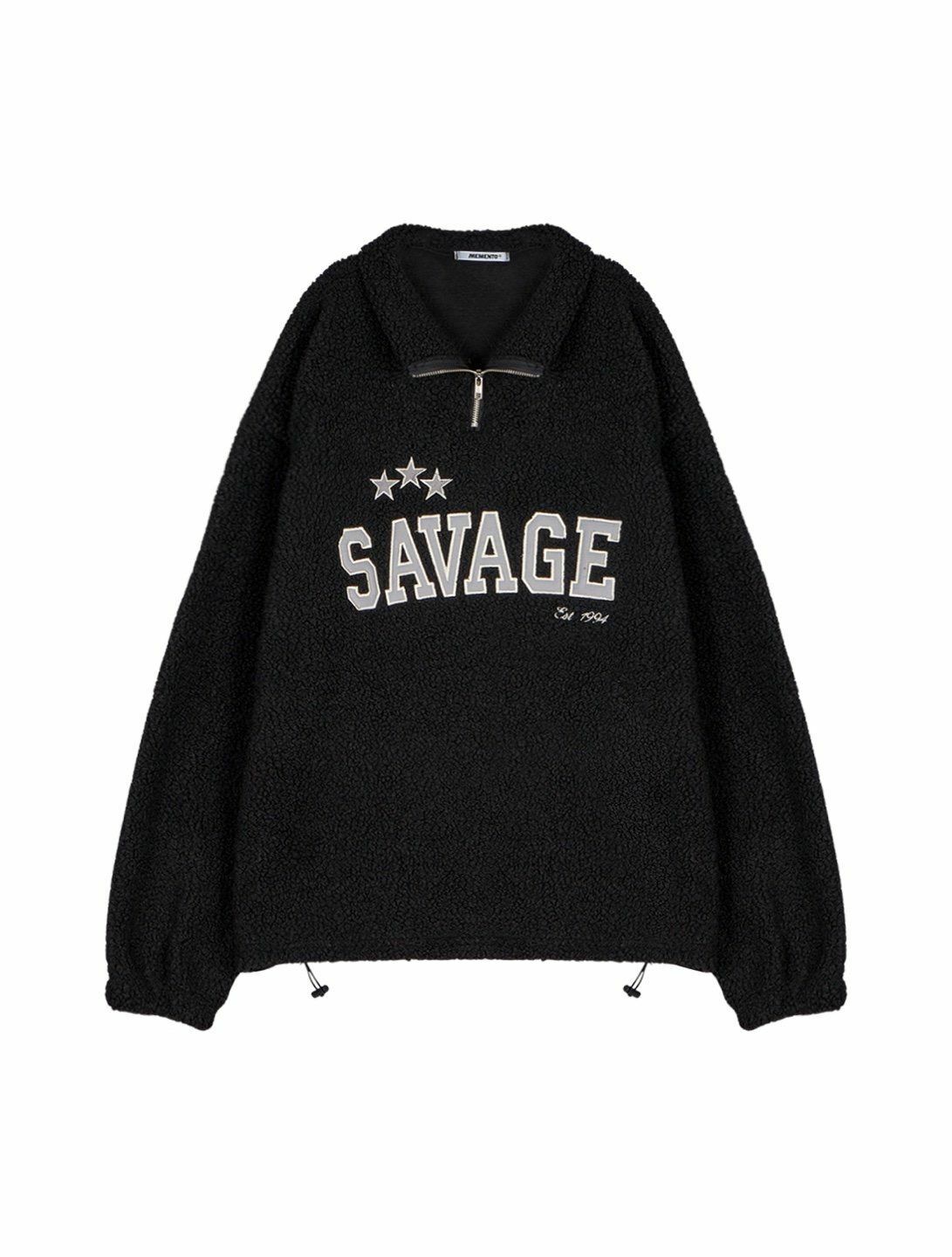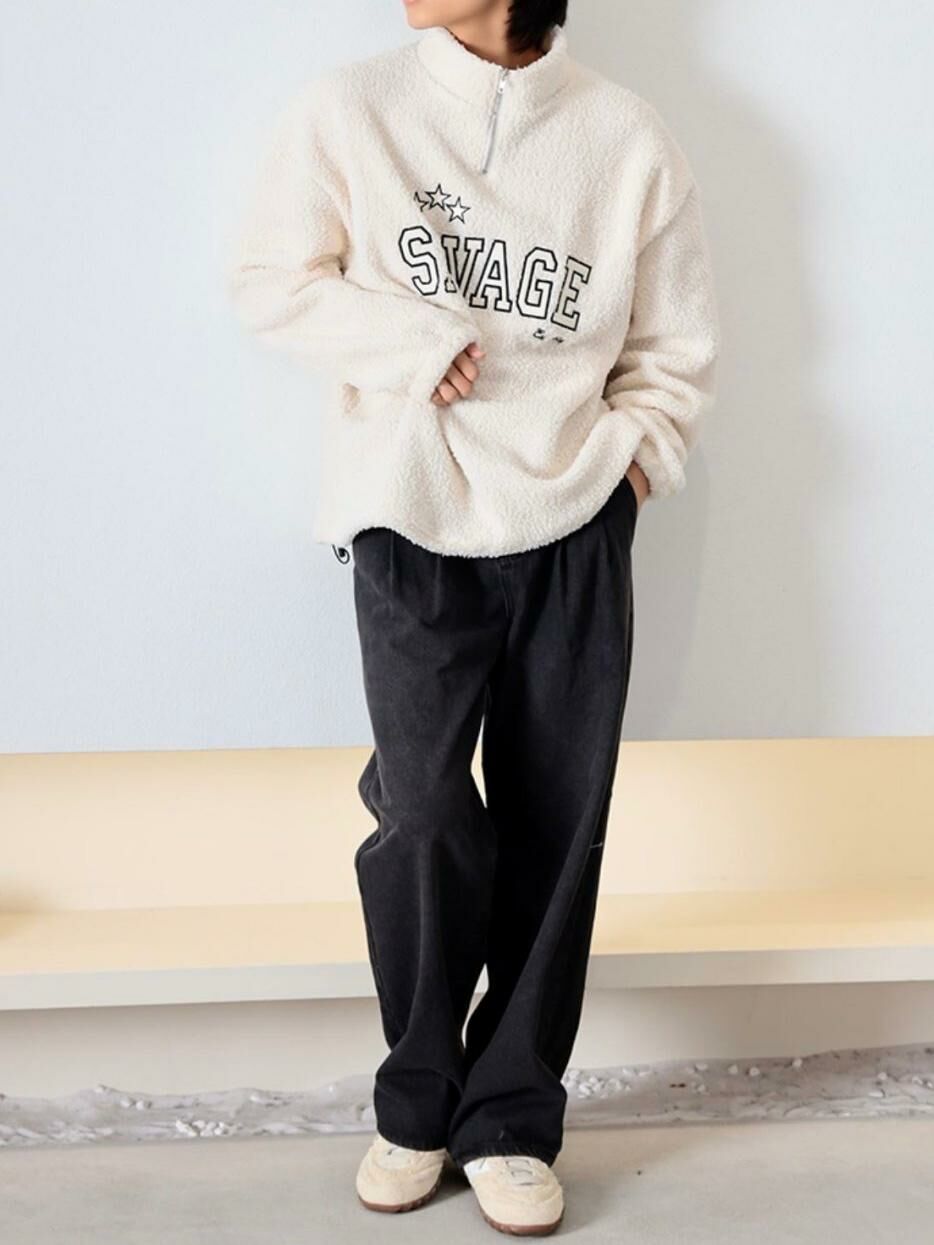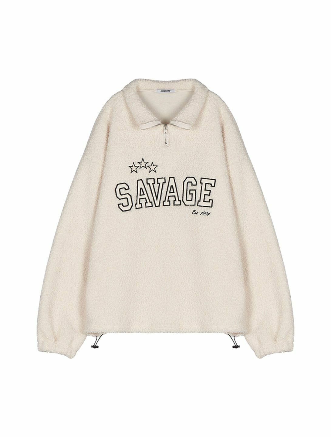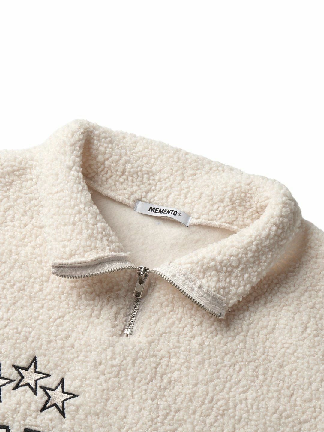 反領半拉鍊英文字毛毛衛衣 MEMENTO-025T