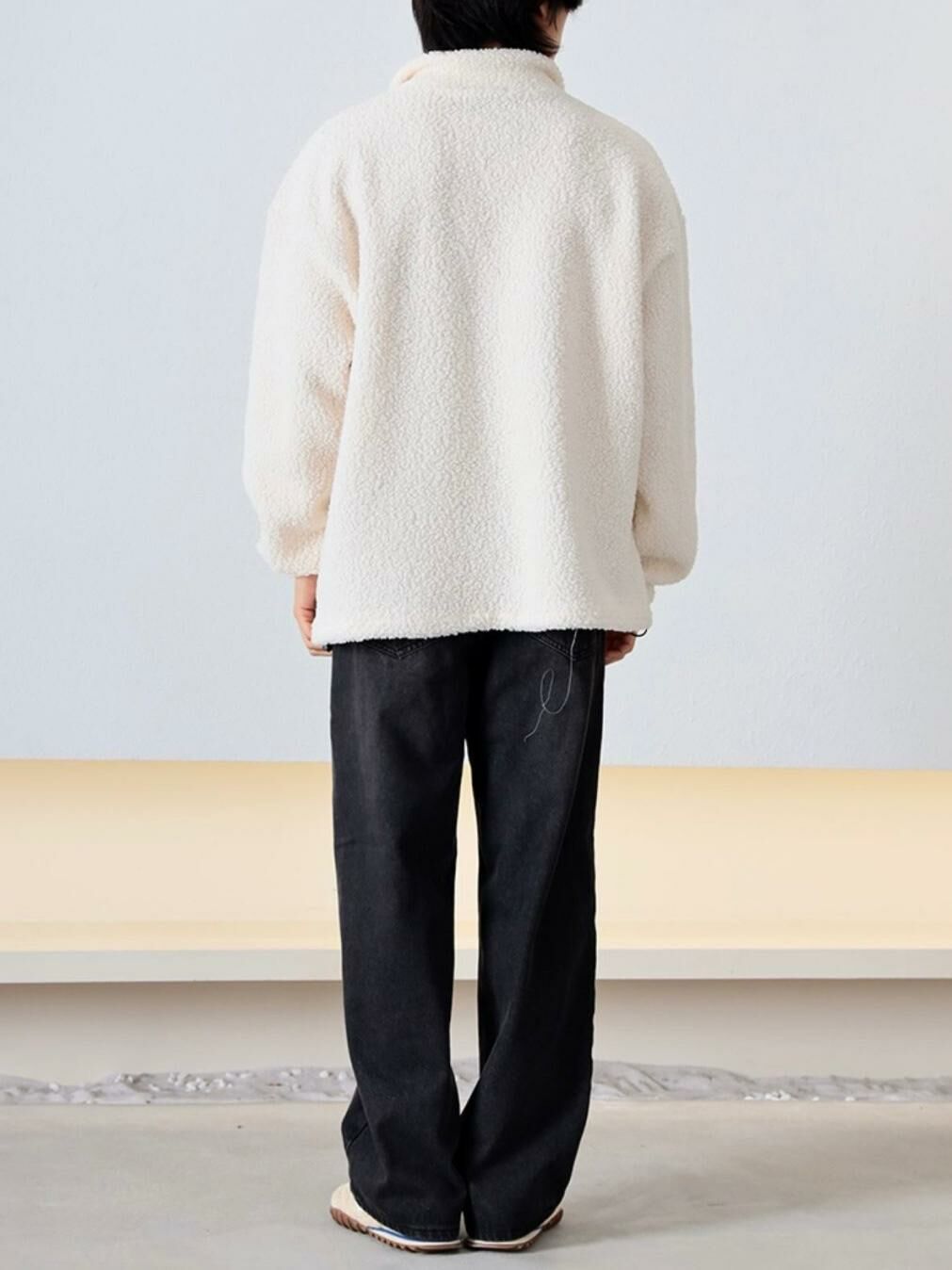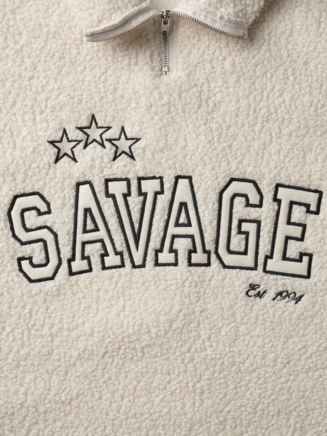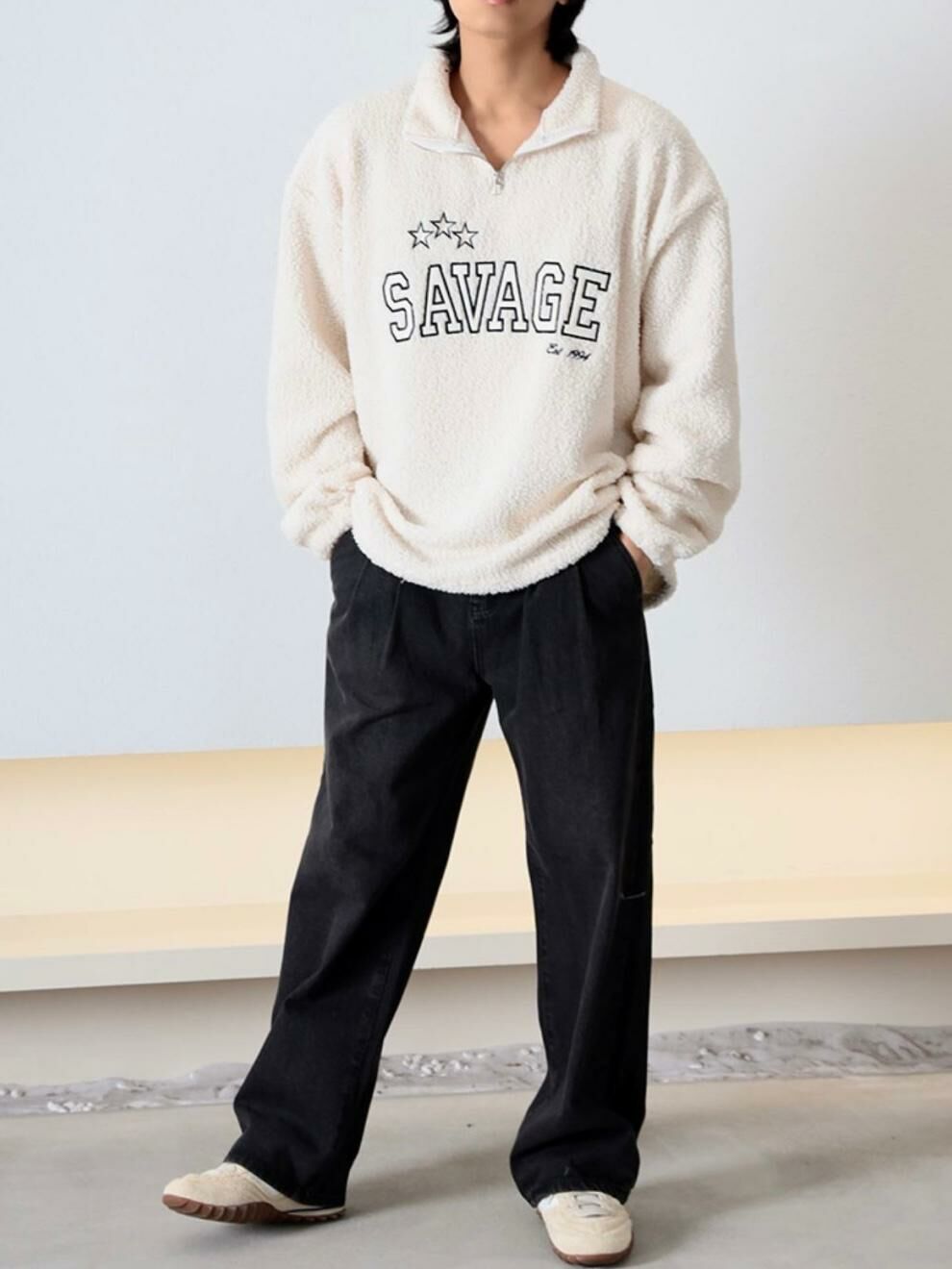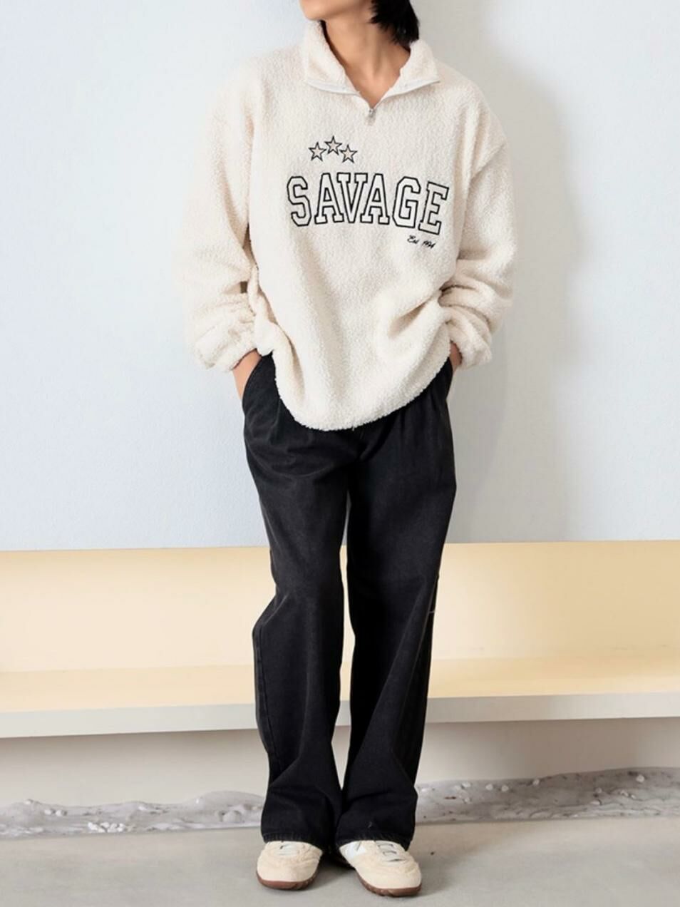 反領半拉鍊英文字毛毛衛衣 MEMENTO-025T