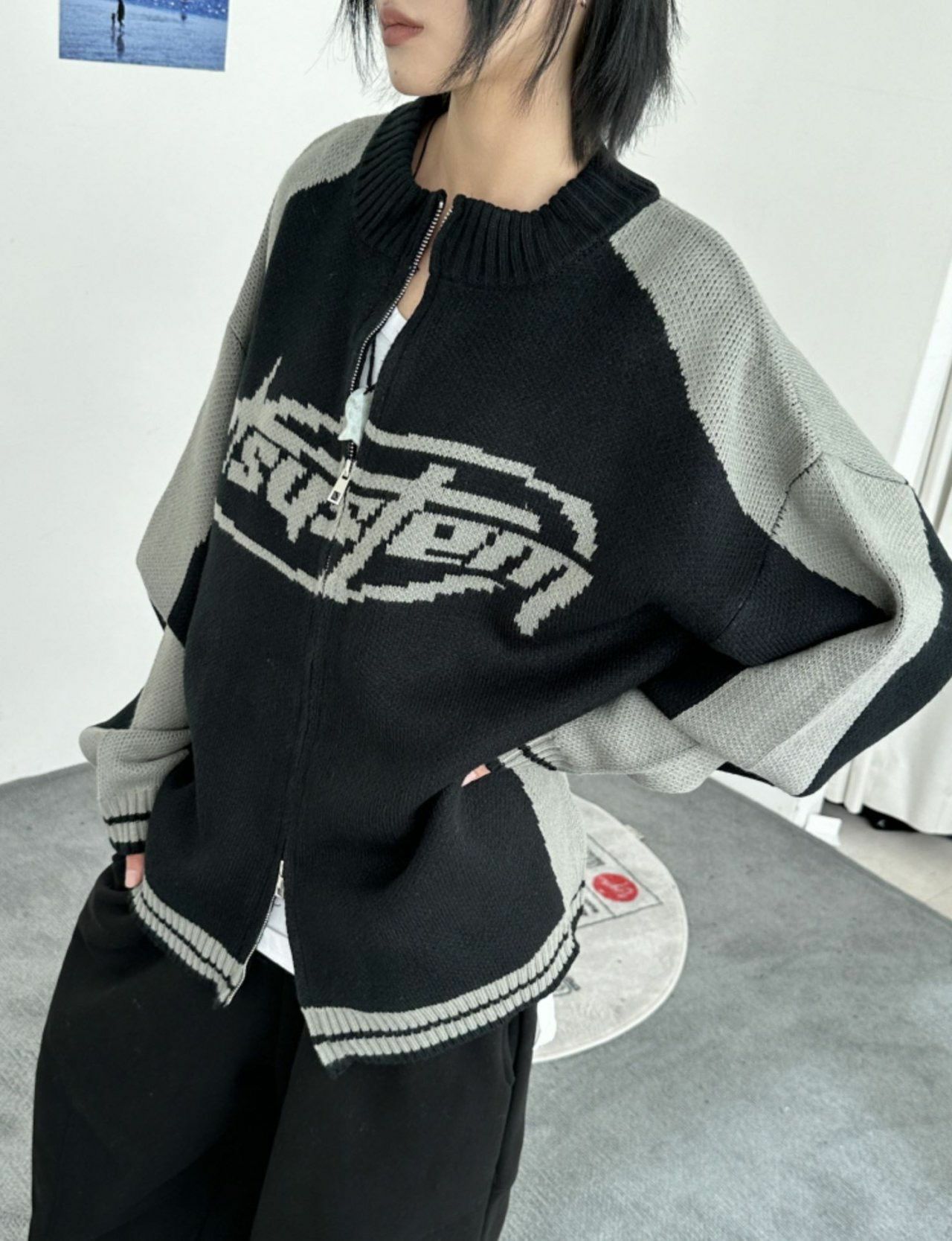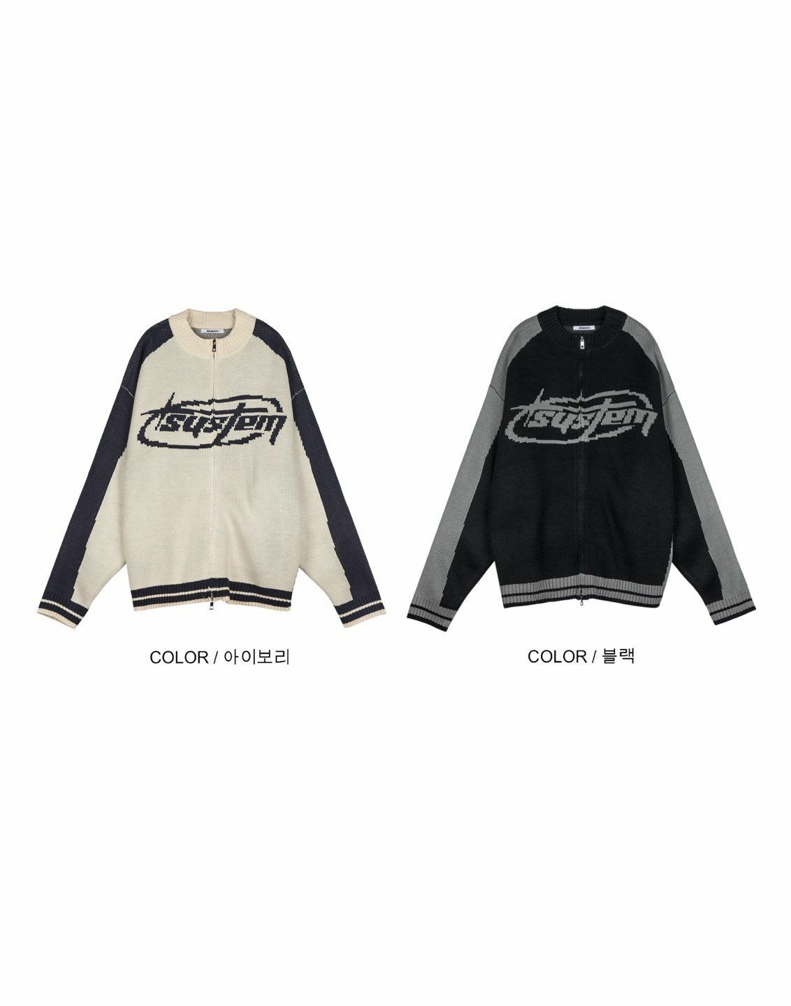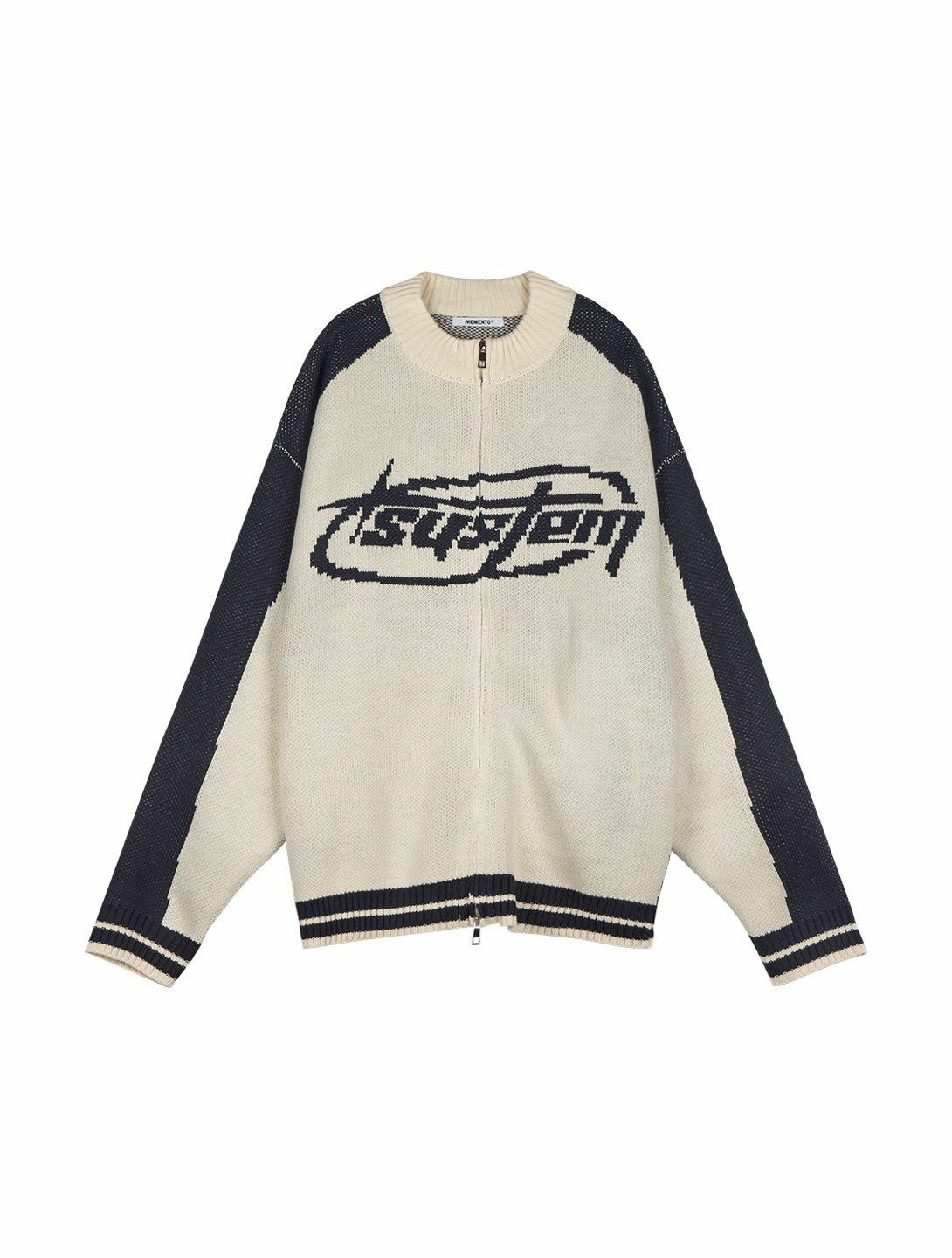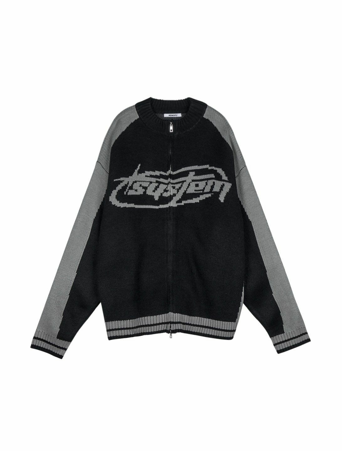 英文字拉鍊針織外套 MEMENTO-027JK