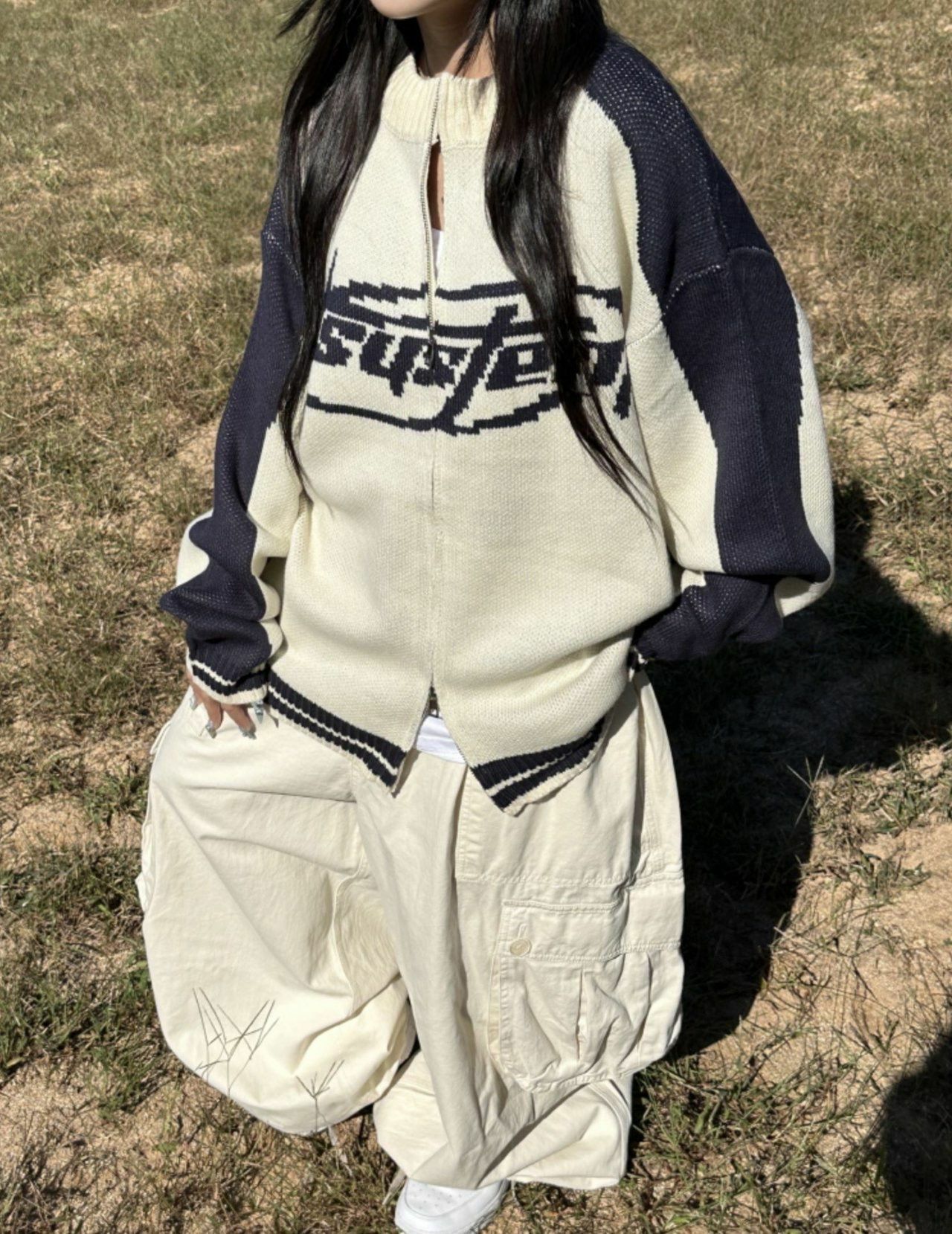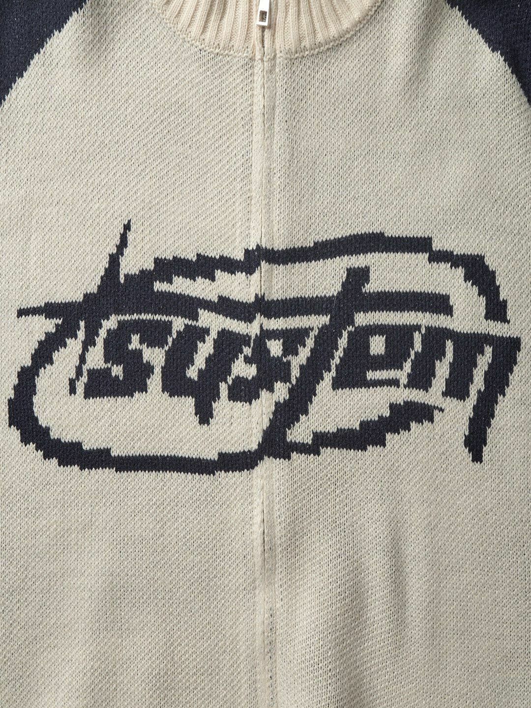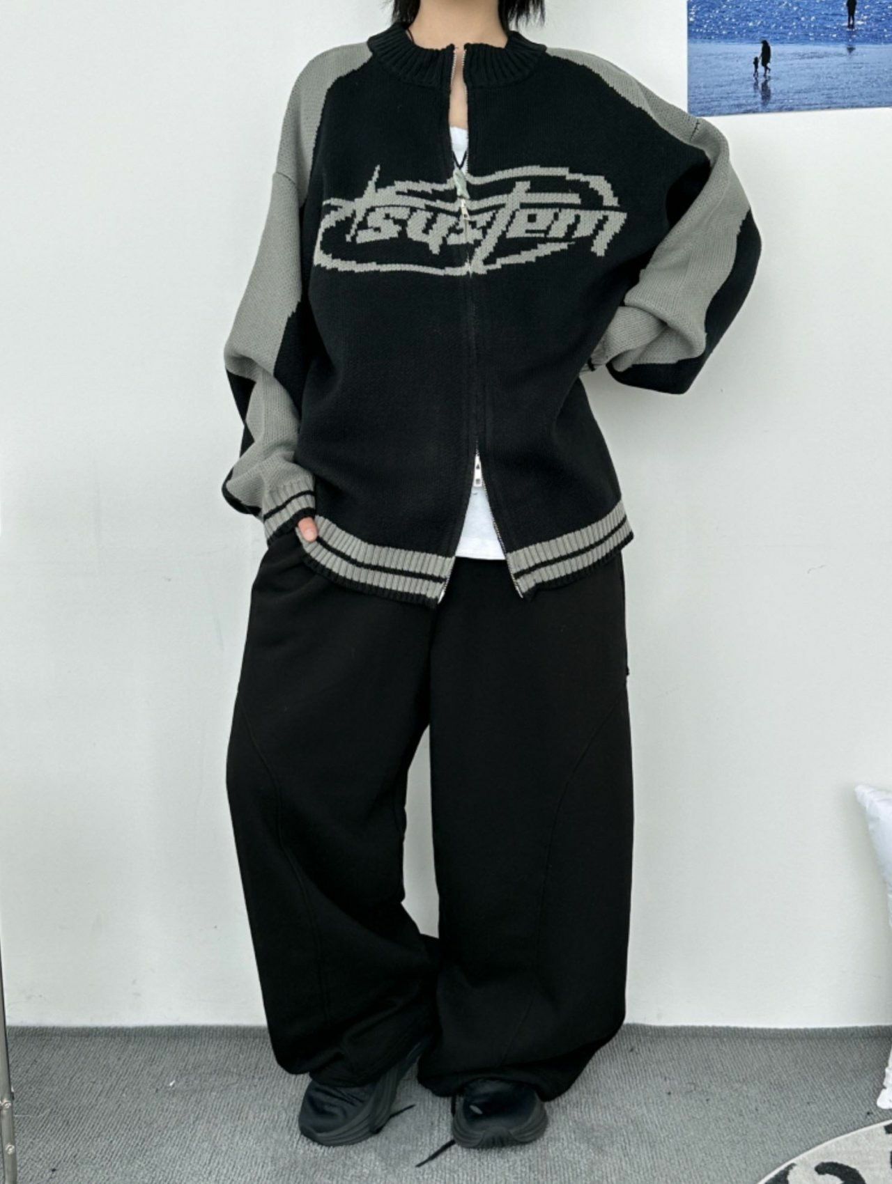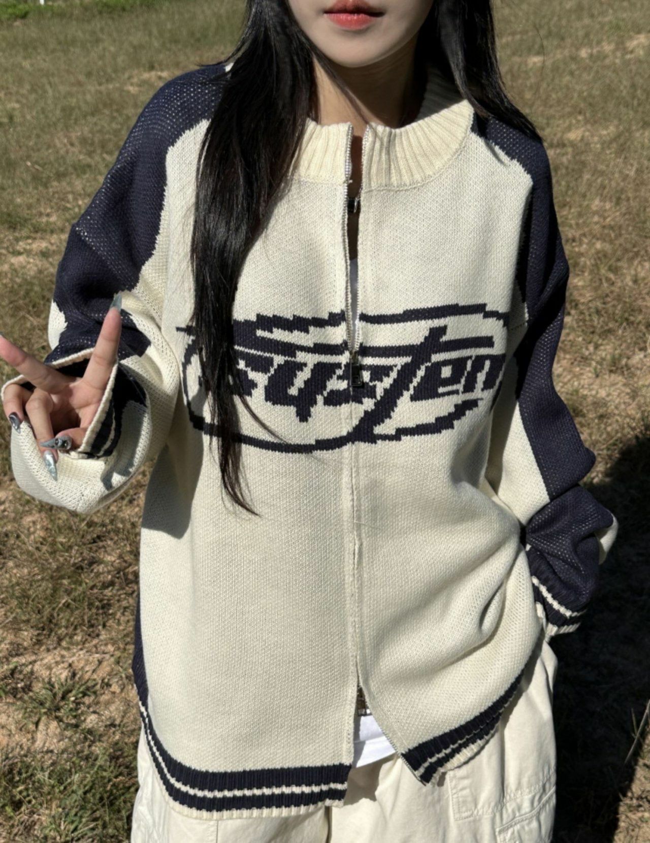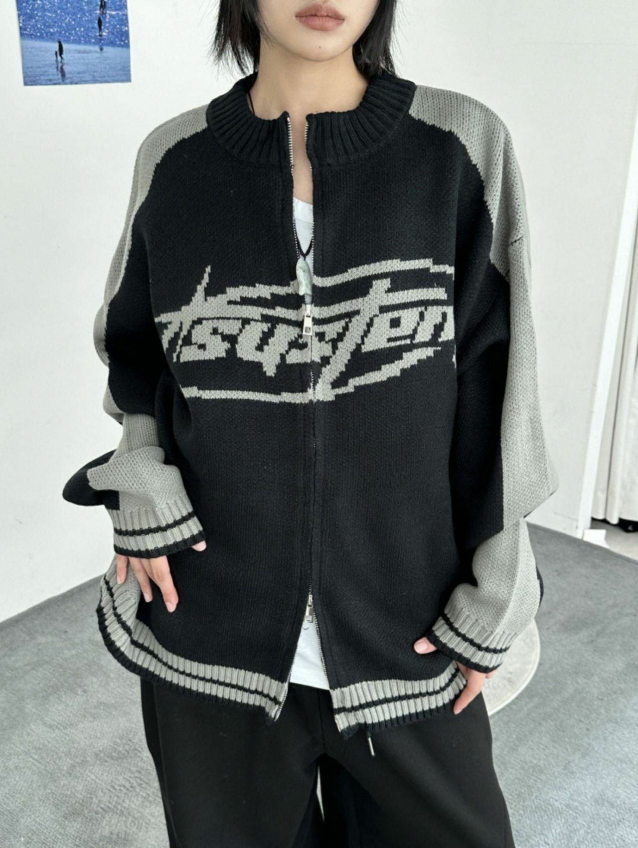 英文字拉鍊針織外套 MEMENTO-027JK