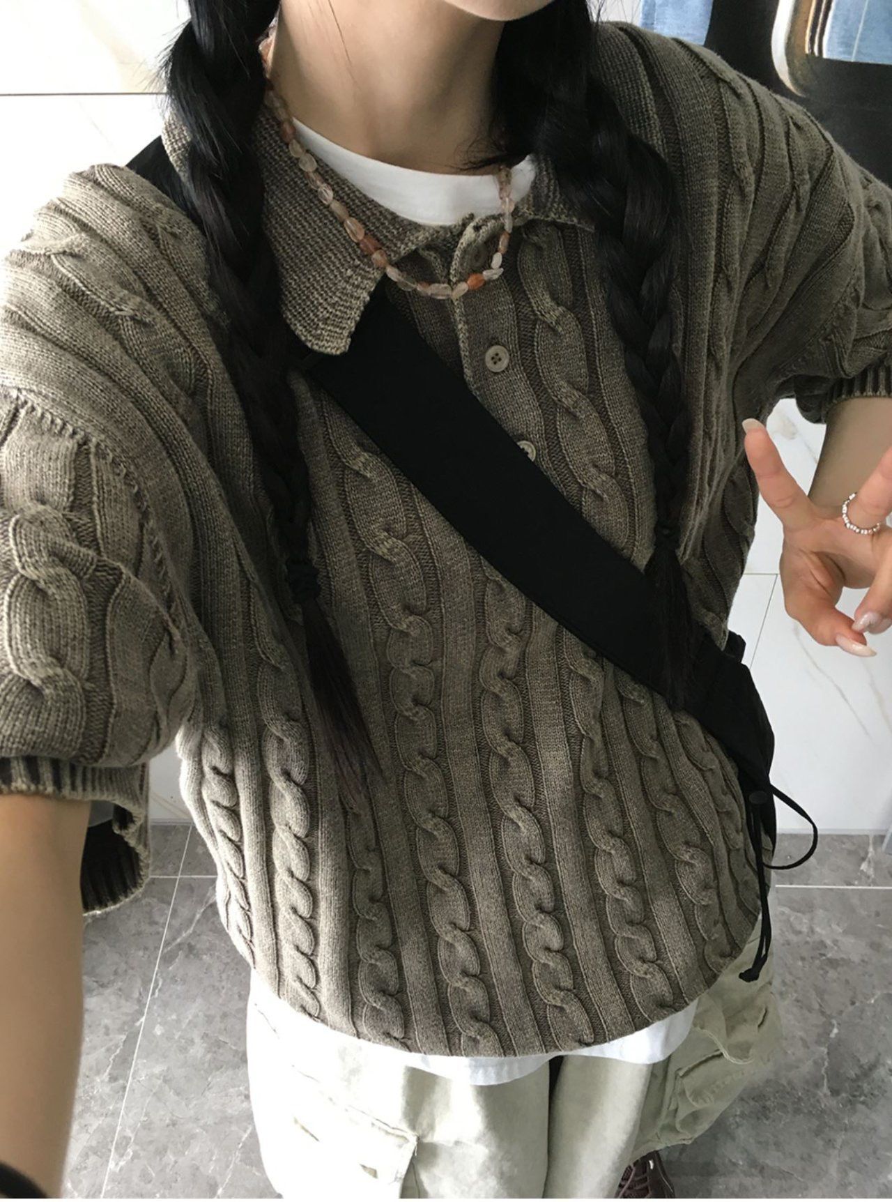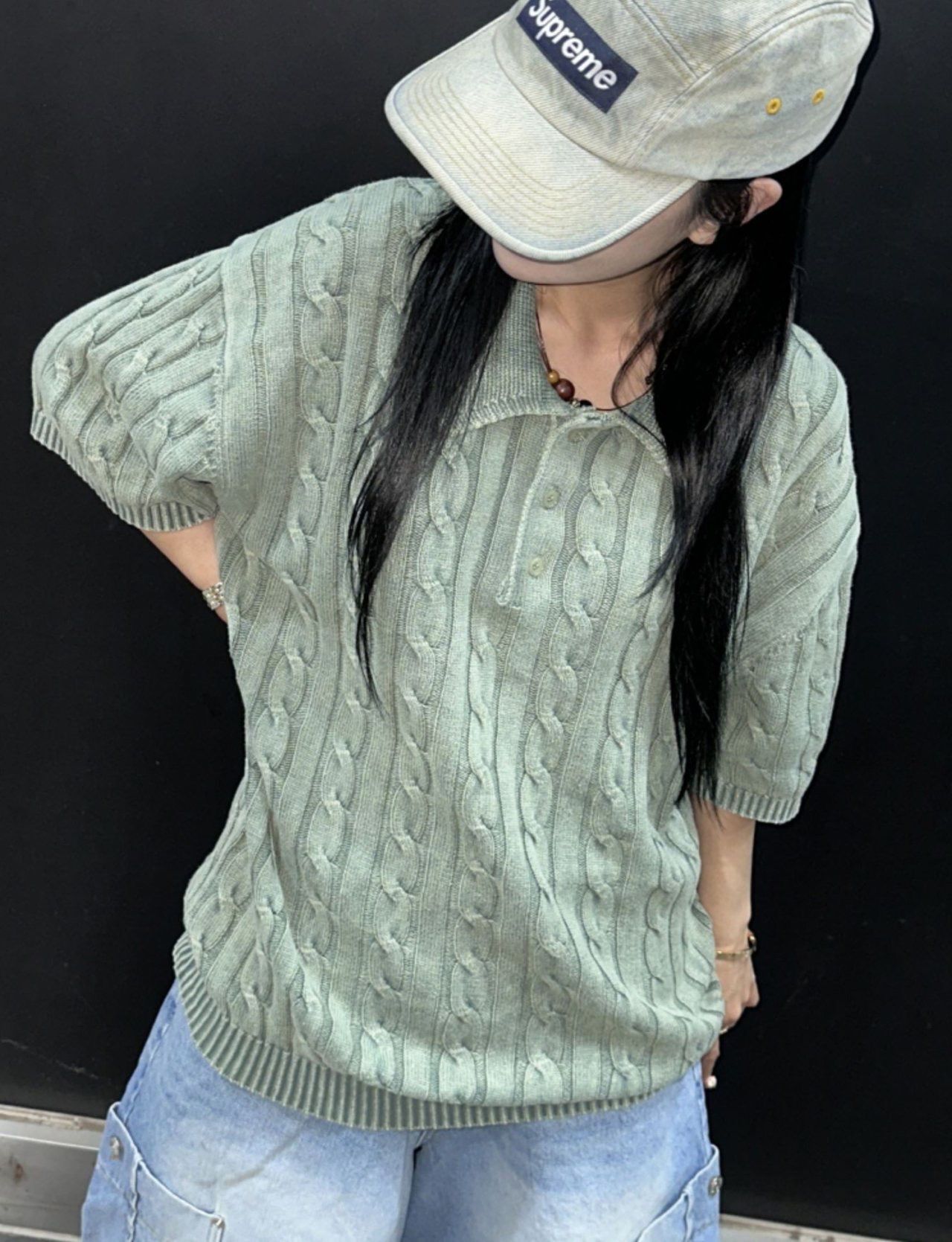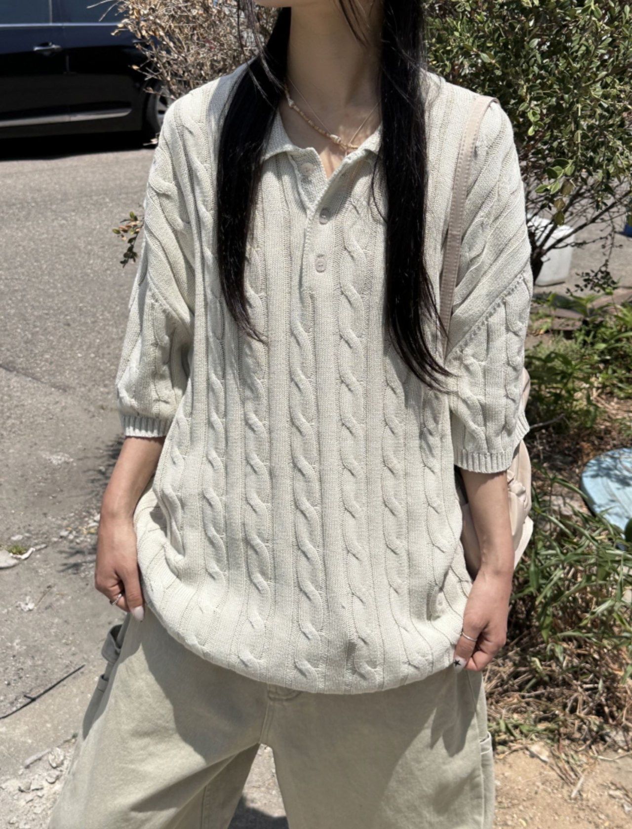 淨色暗紋針織短袖Tee MEMENTO-036T