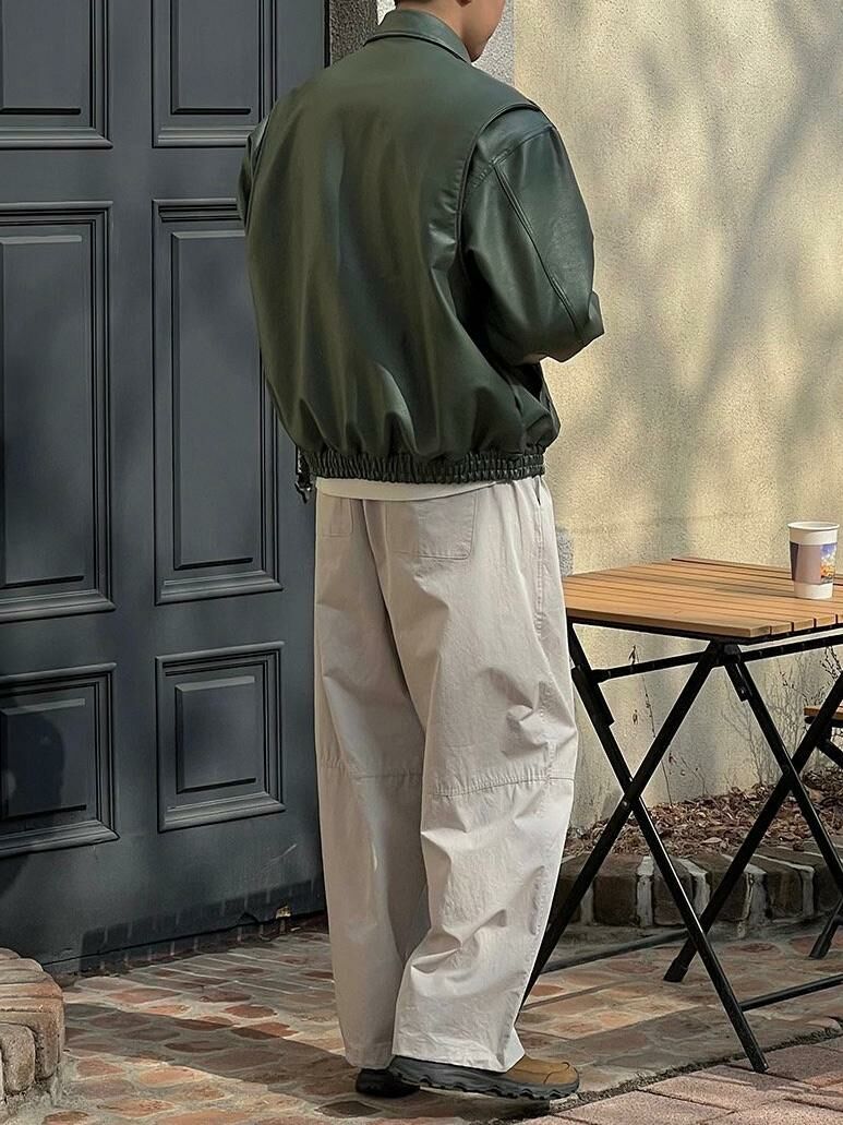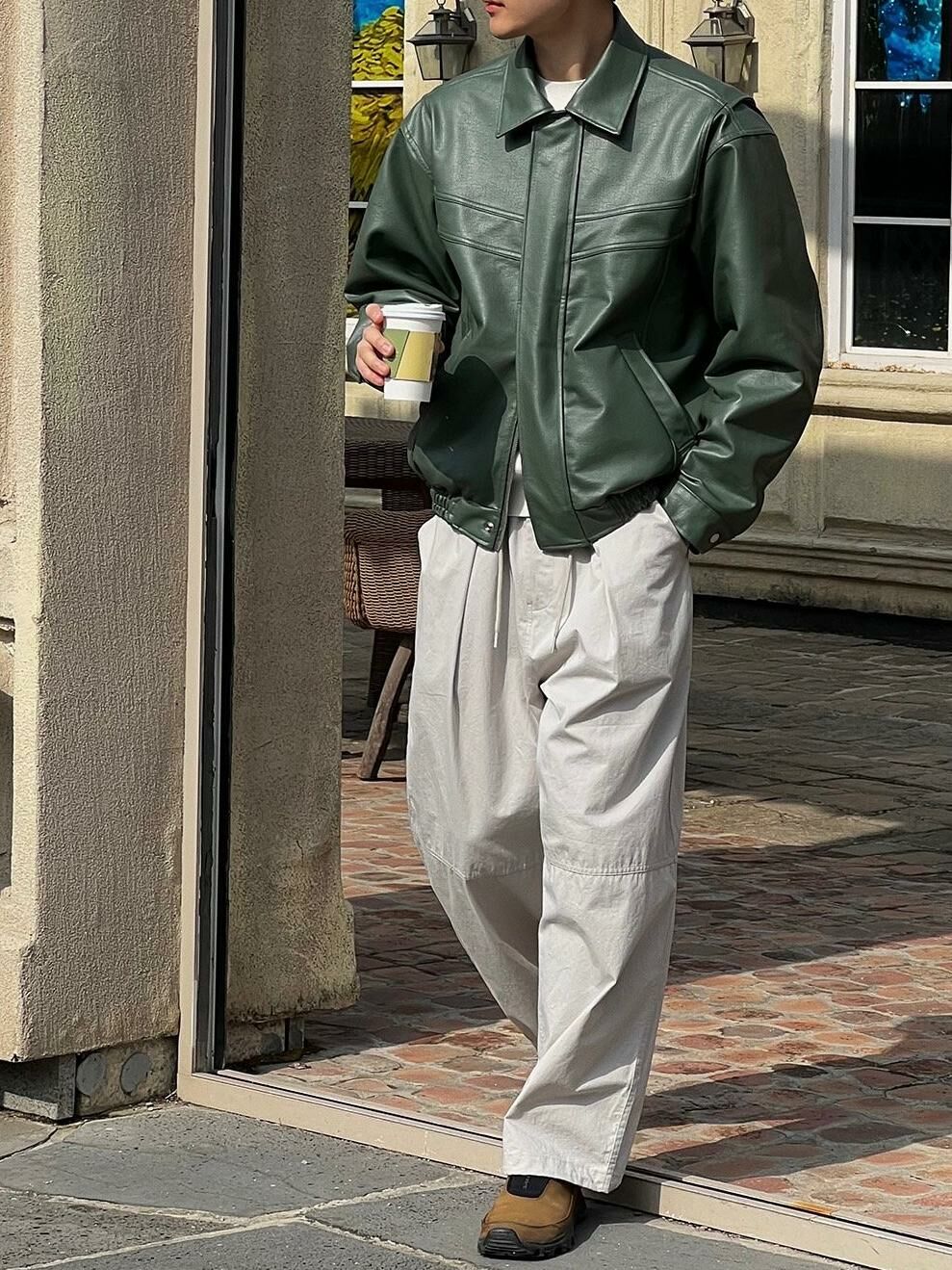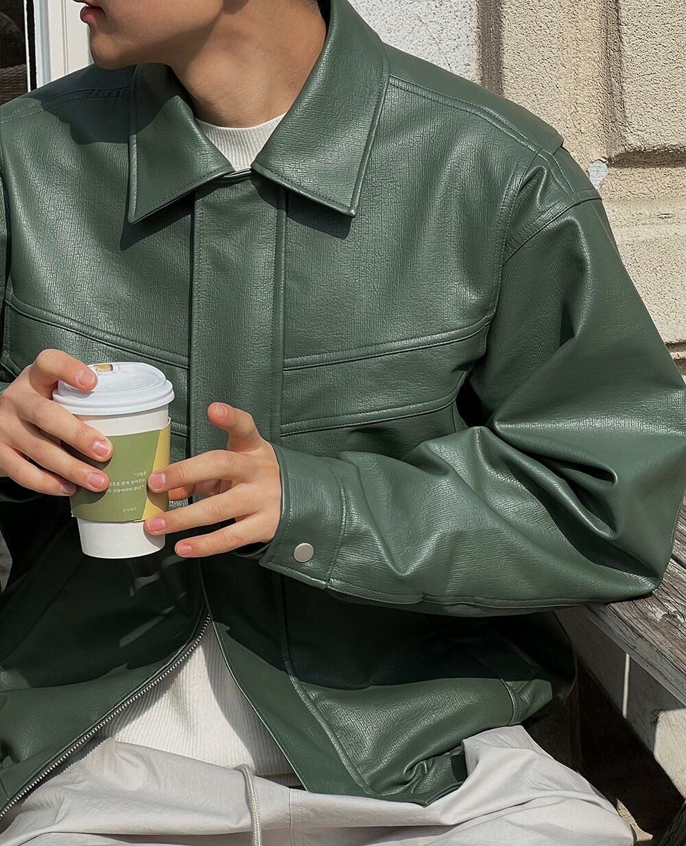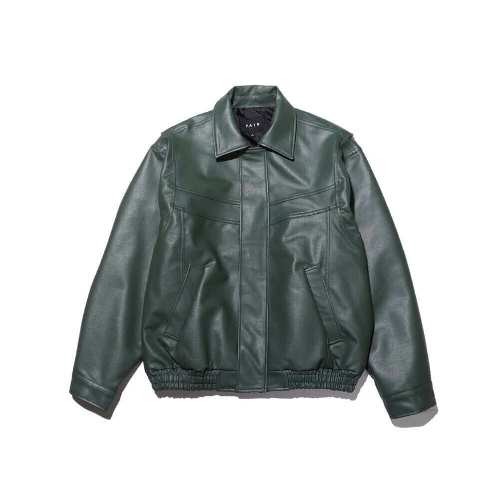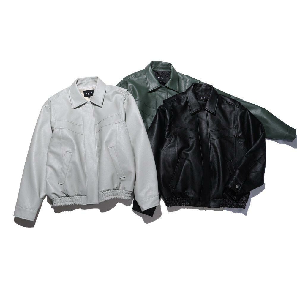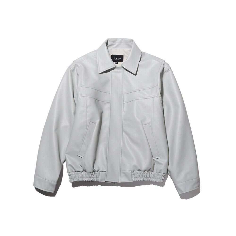 淨色反領拉鍊合成皮褸 PAIR-004JK