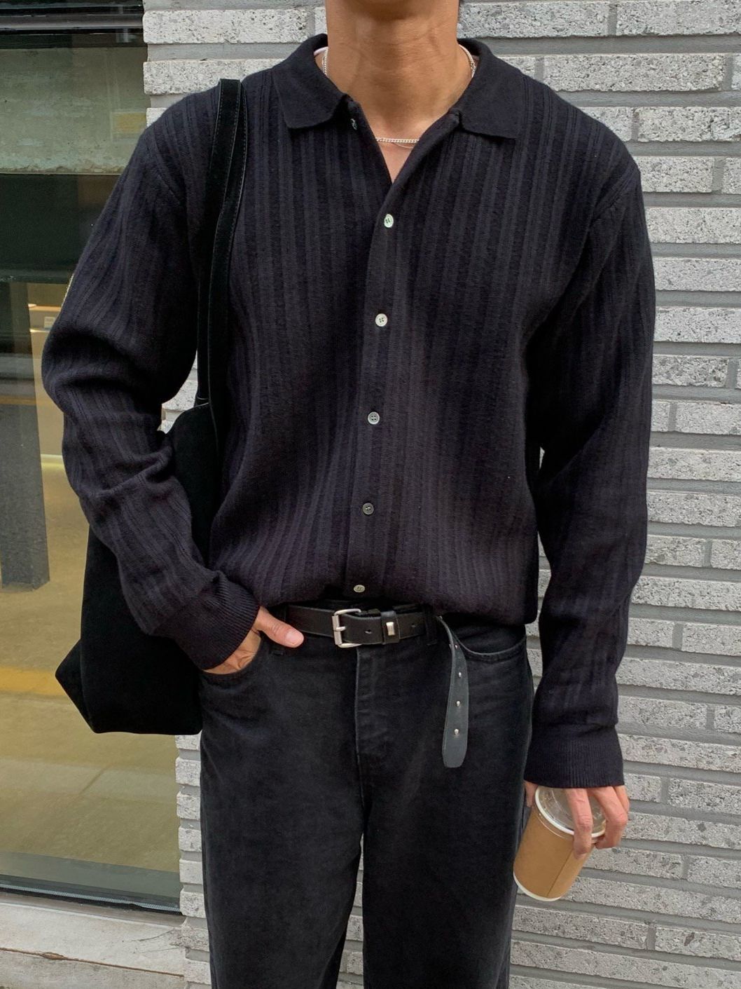 暗直紋反領開胸外套 MENTO-009T