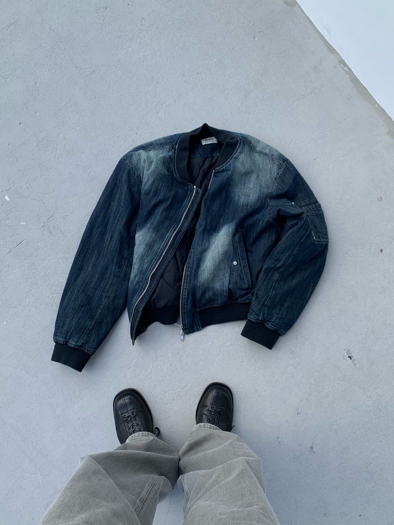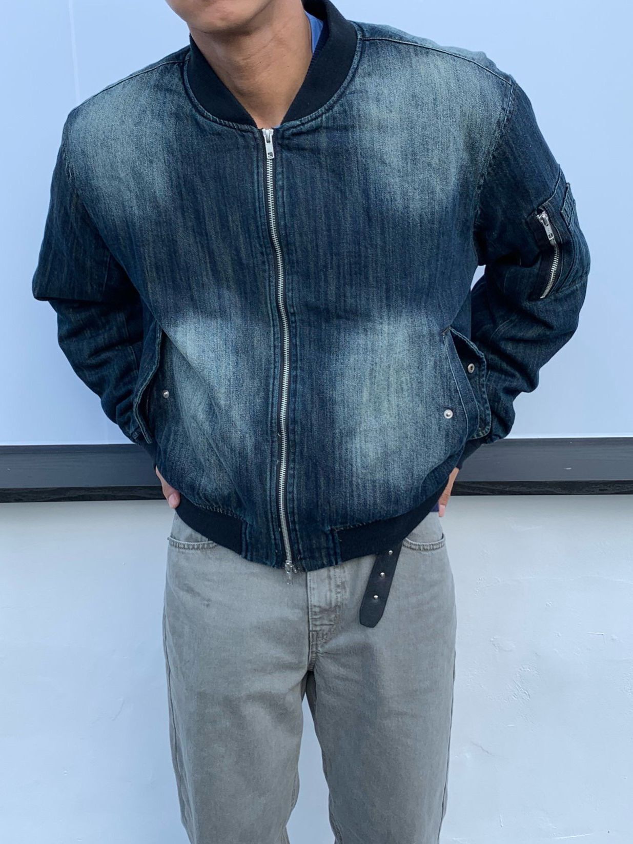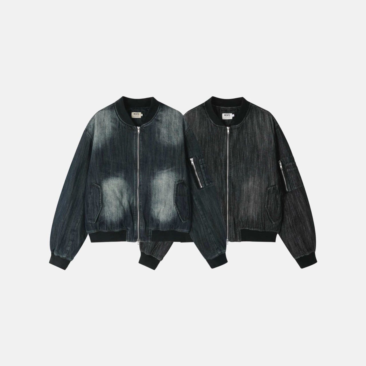 洗水直紋拉鍊牛仔褸 MENTO-019JK