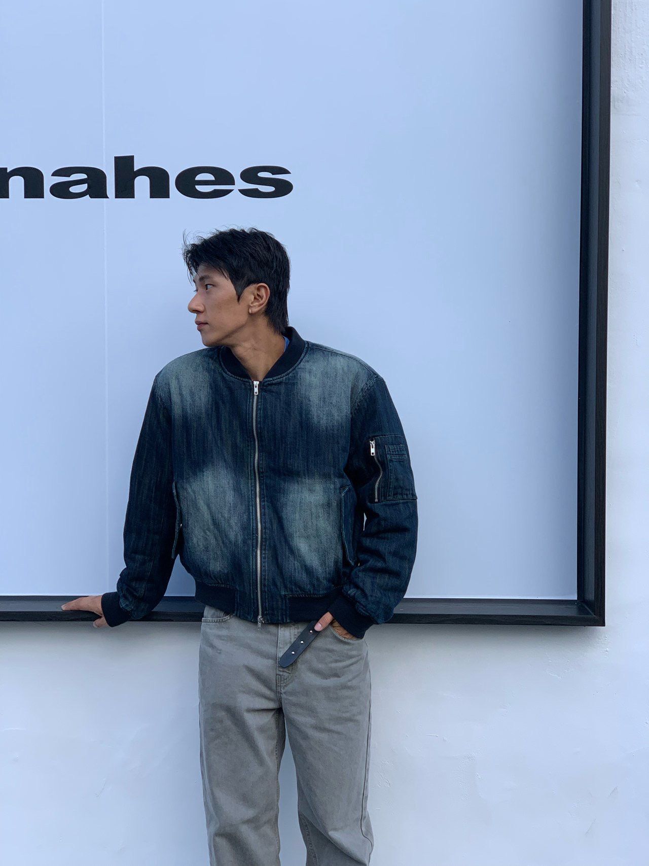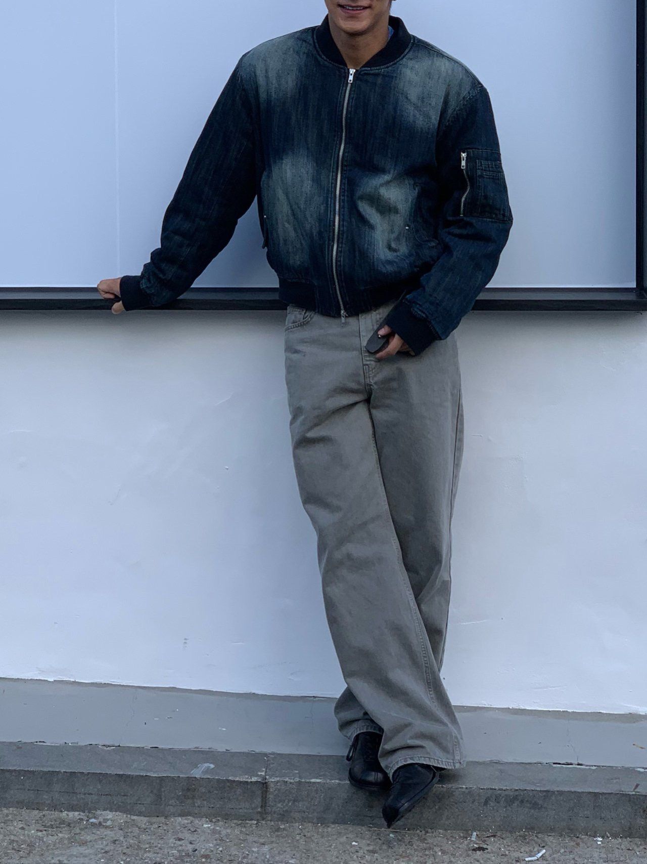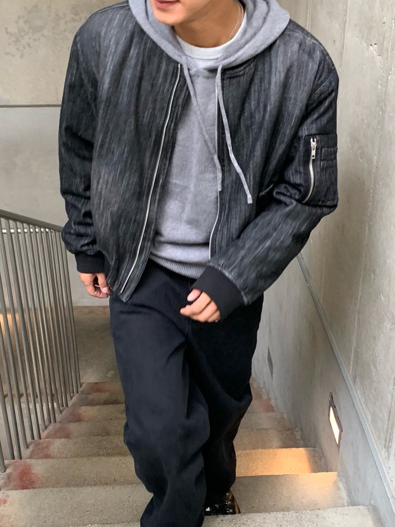 洗水直紋拉鍊牛仔褸 MENTO-019JK