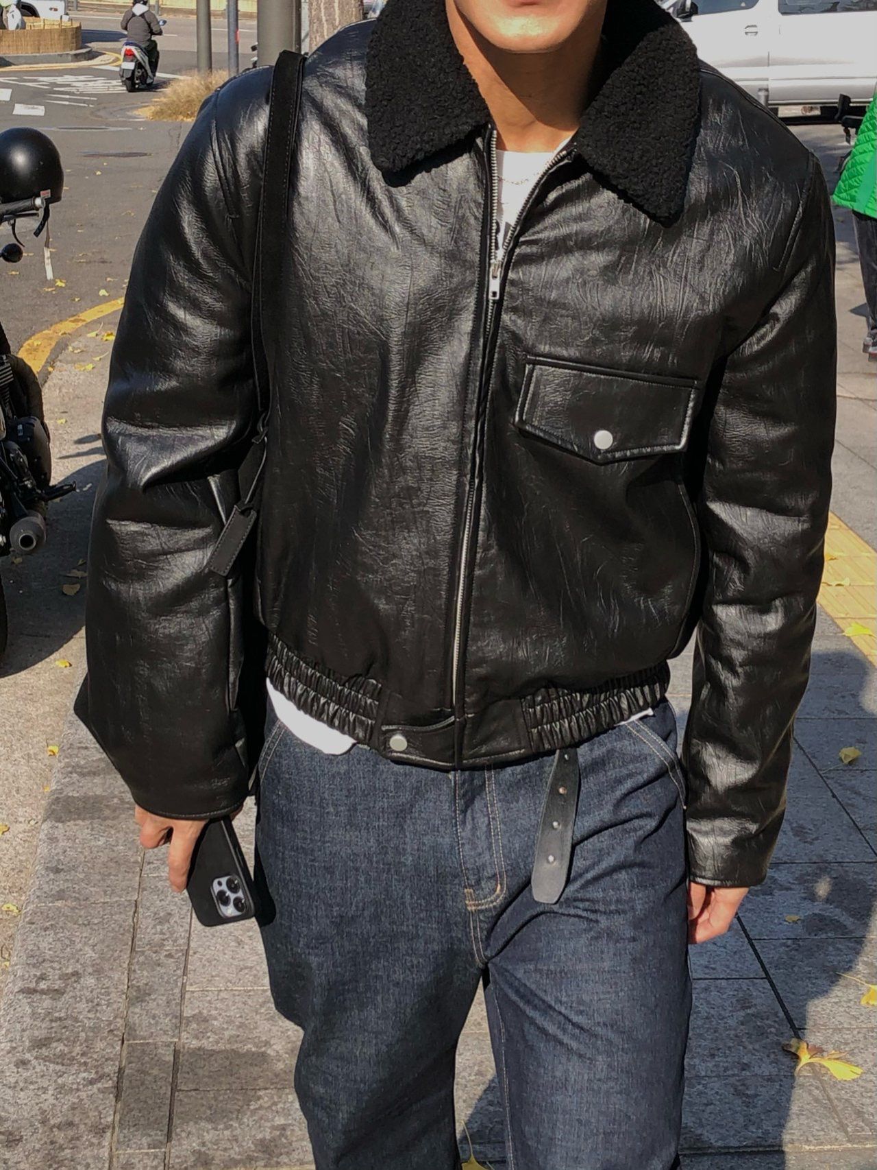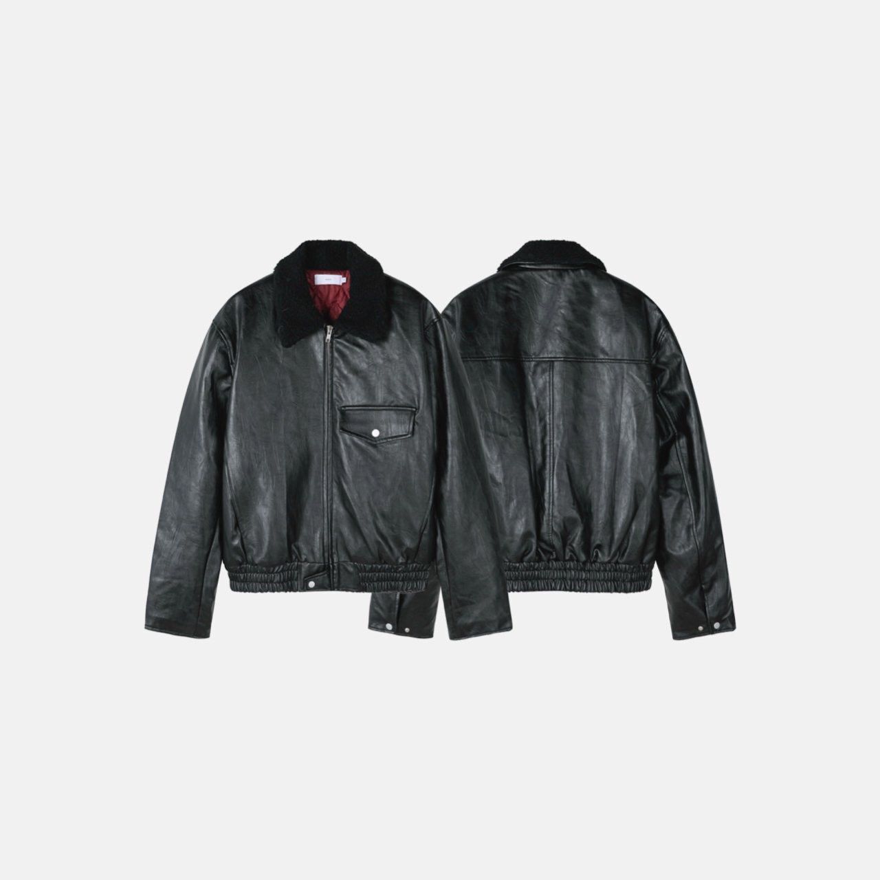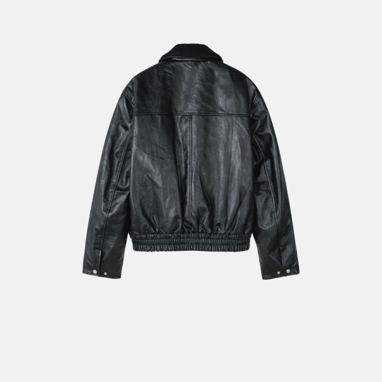 毛毛領拉鍊合成皮褸(薄夾棉) MENTO-028JK