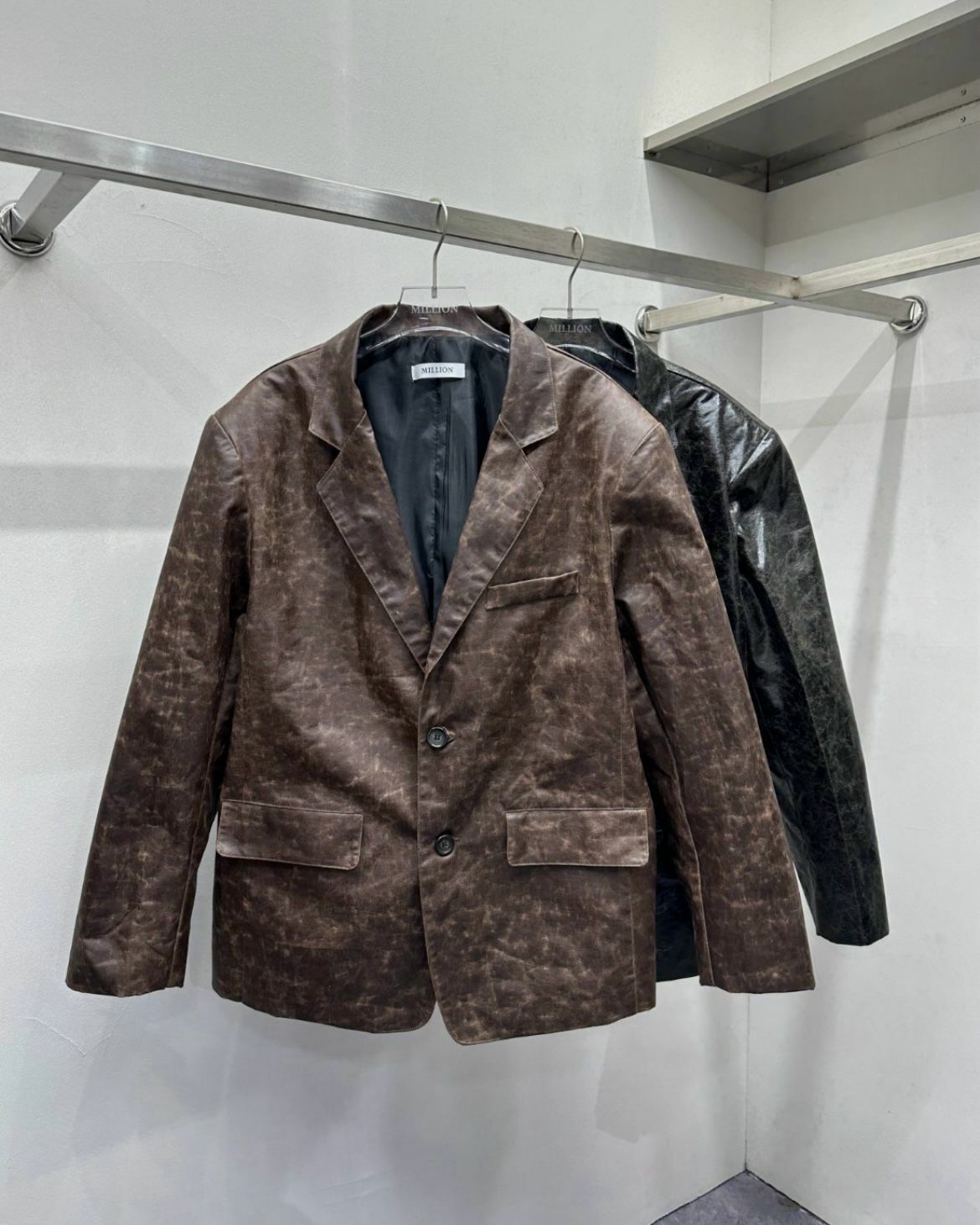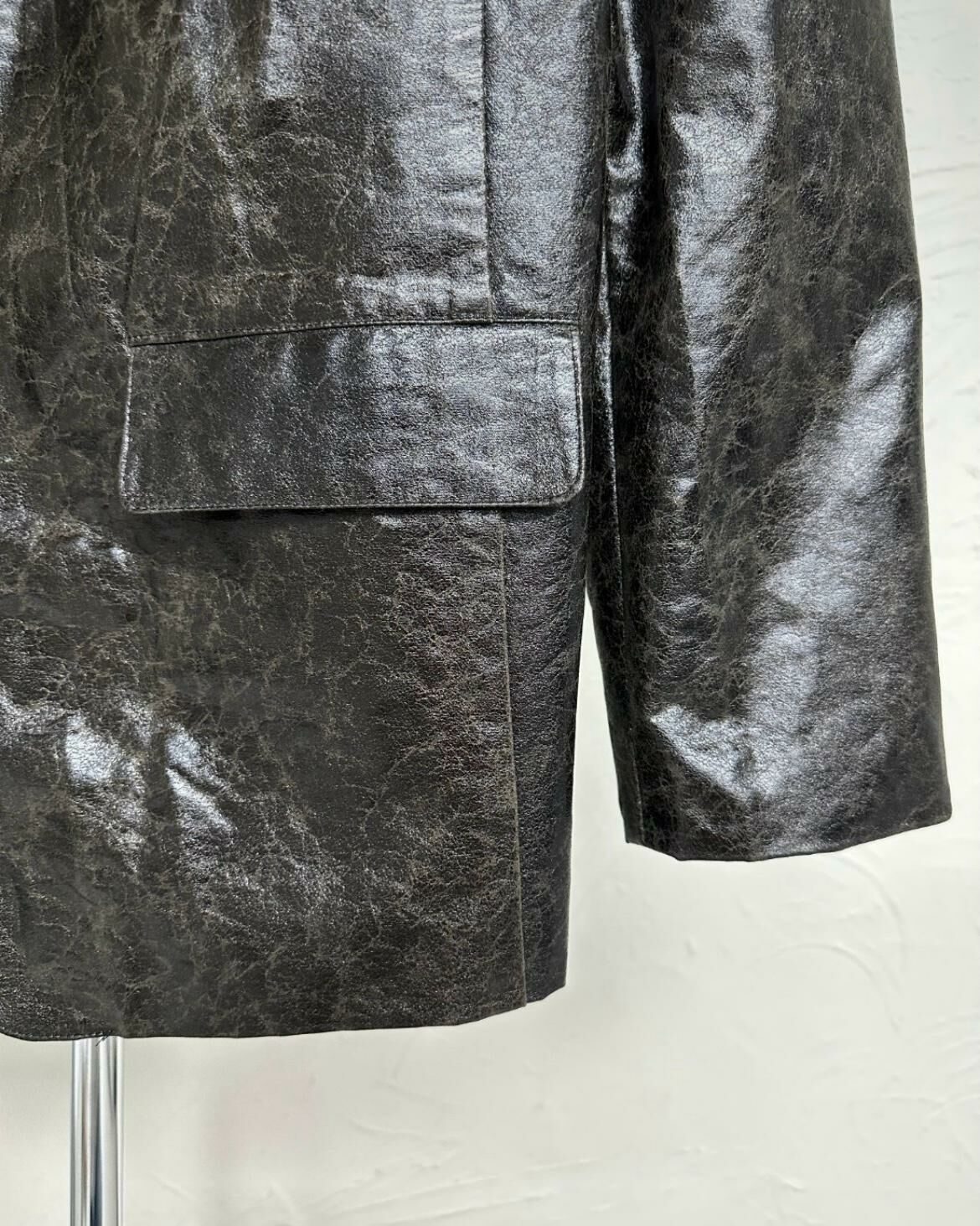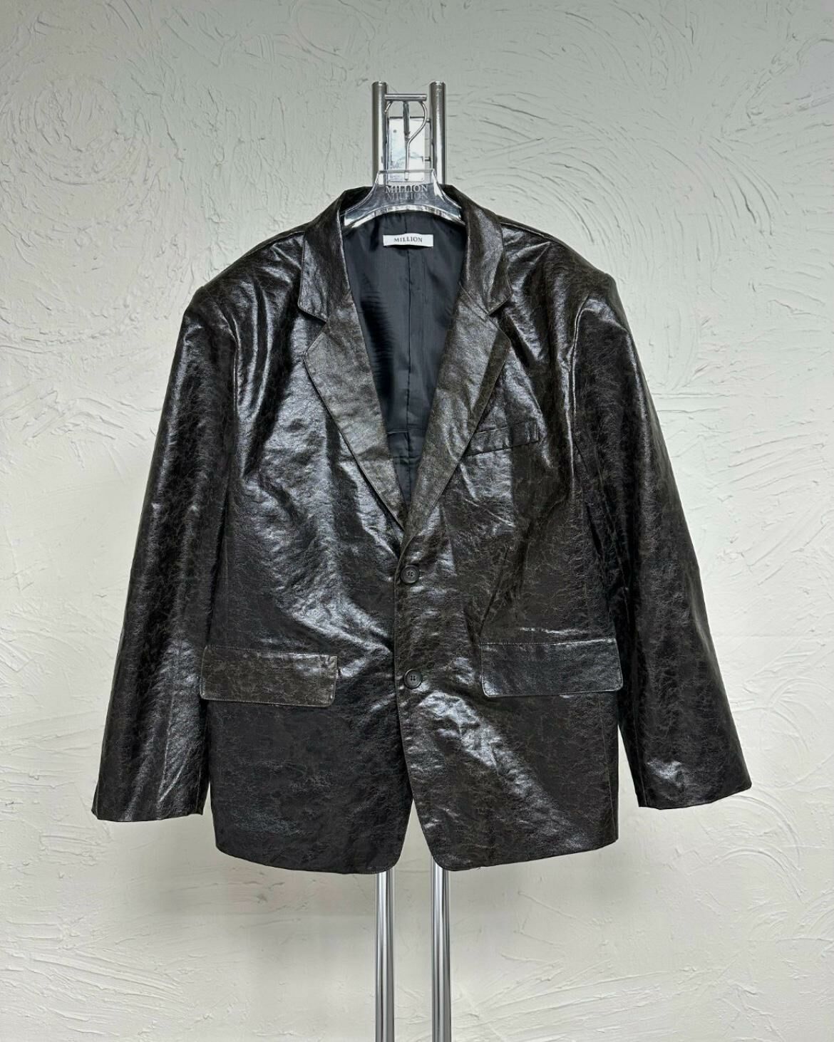 淨色暗裂紋合成皮西裝褸 Million-012JK