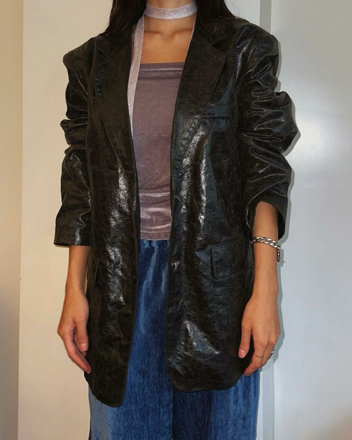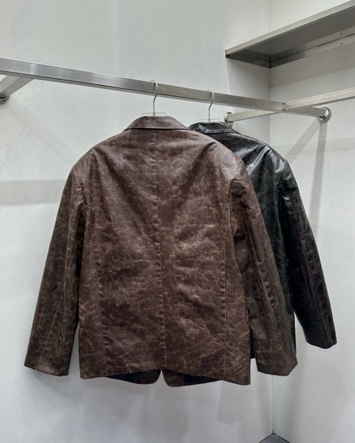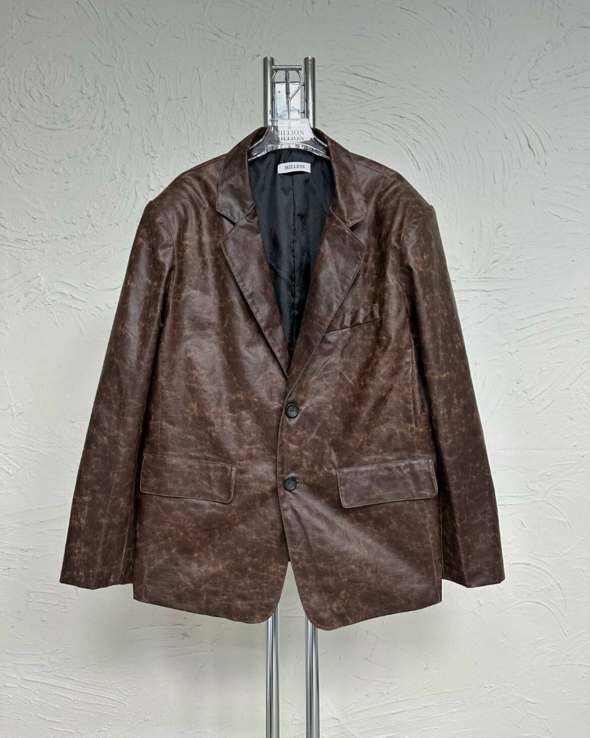 淨色暗裂紋合成皮西裝褸 Million-012JK
