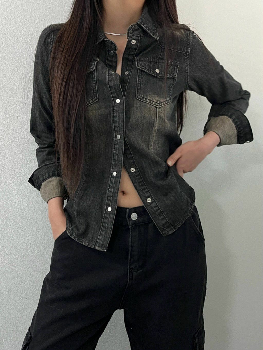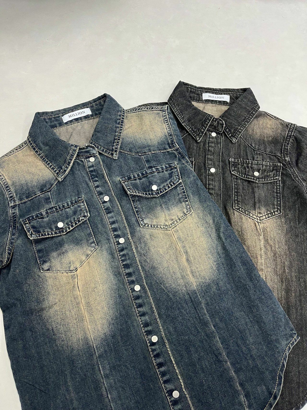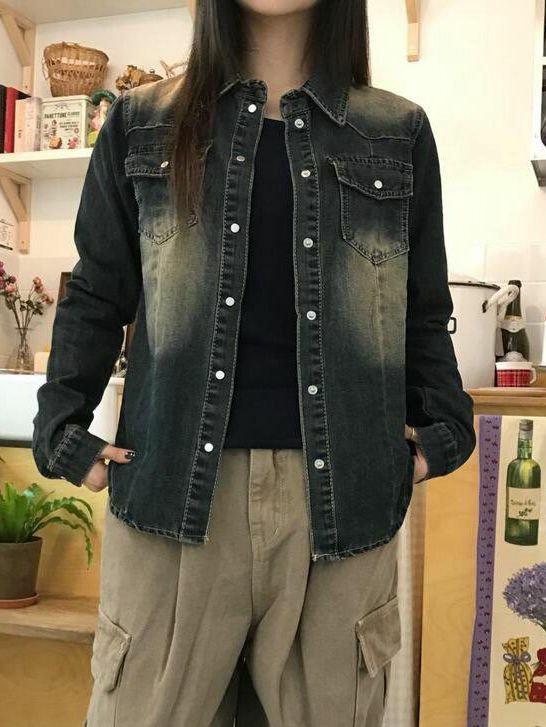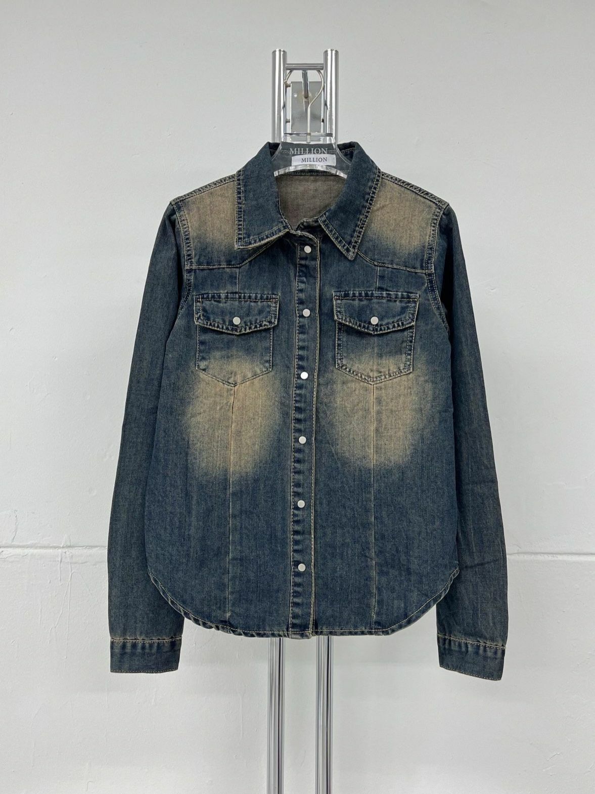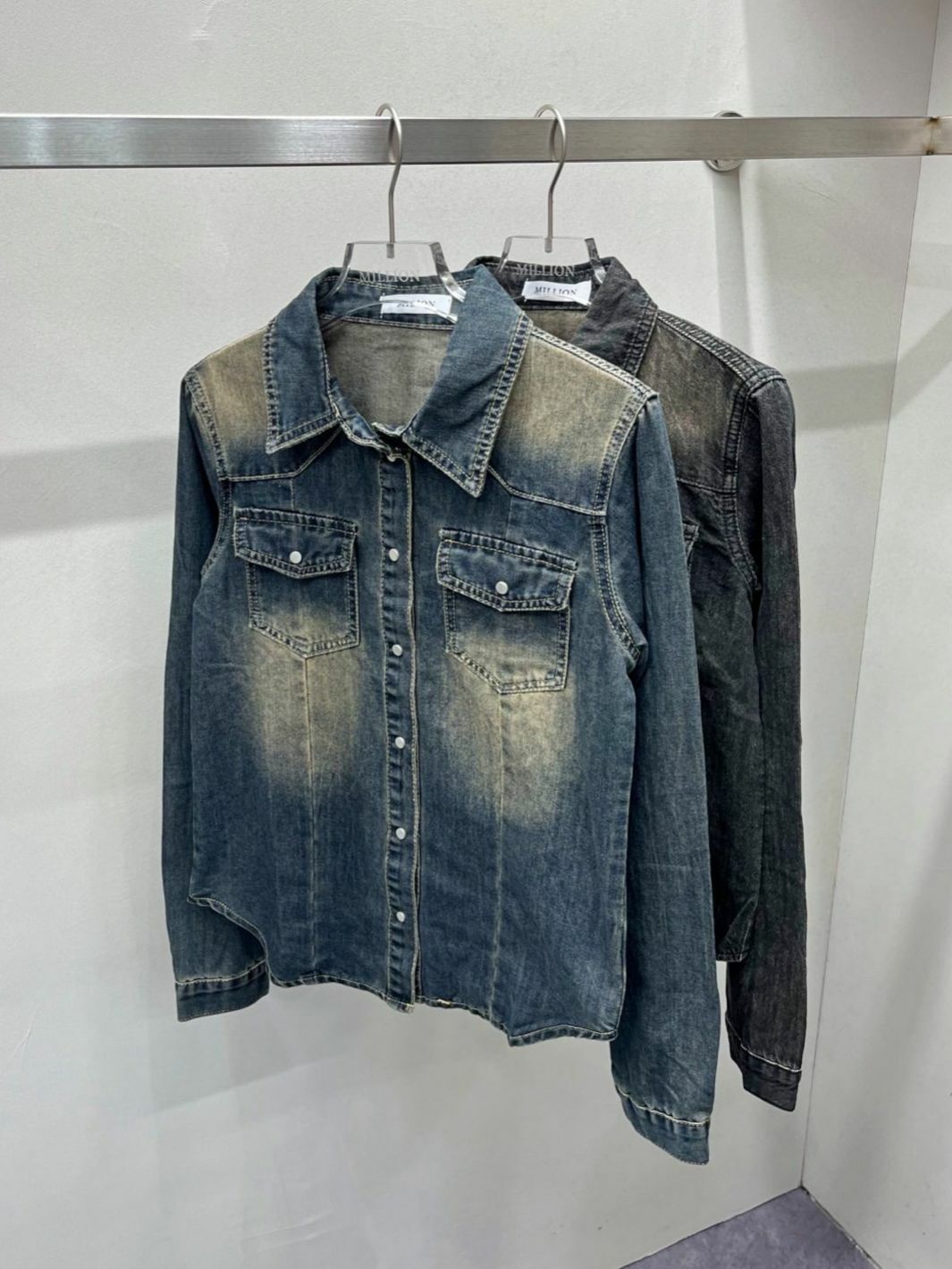 洗水牛仔長袖恤衫 Million-014S
