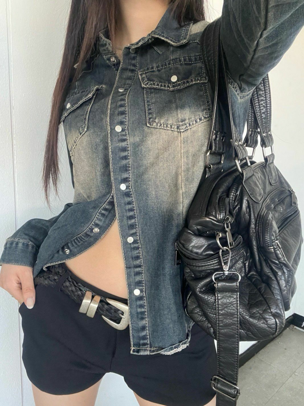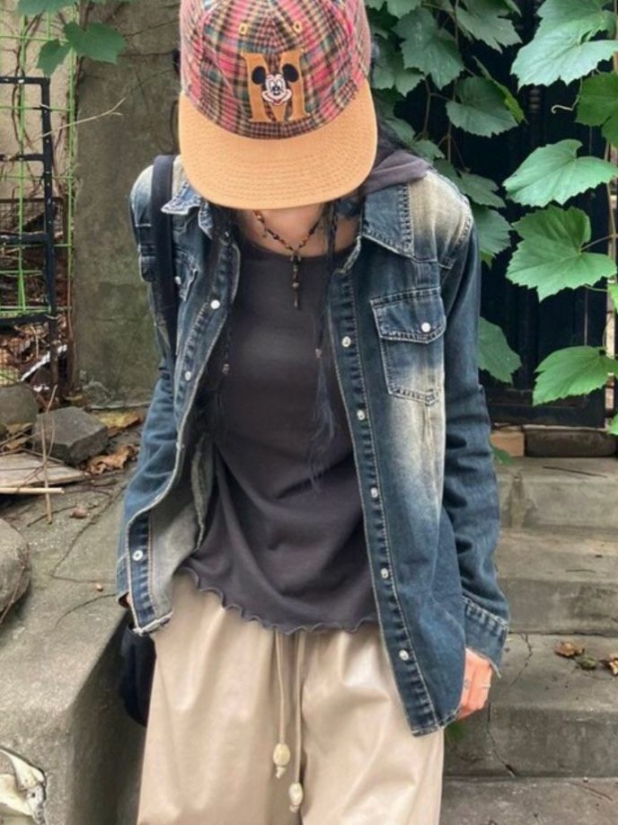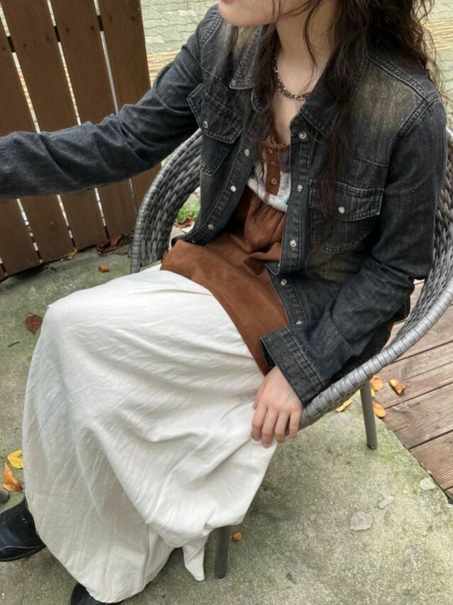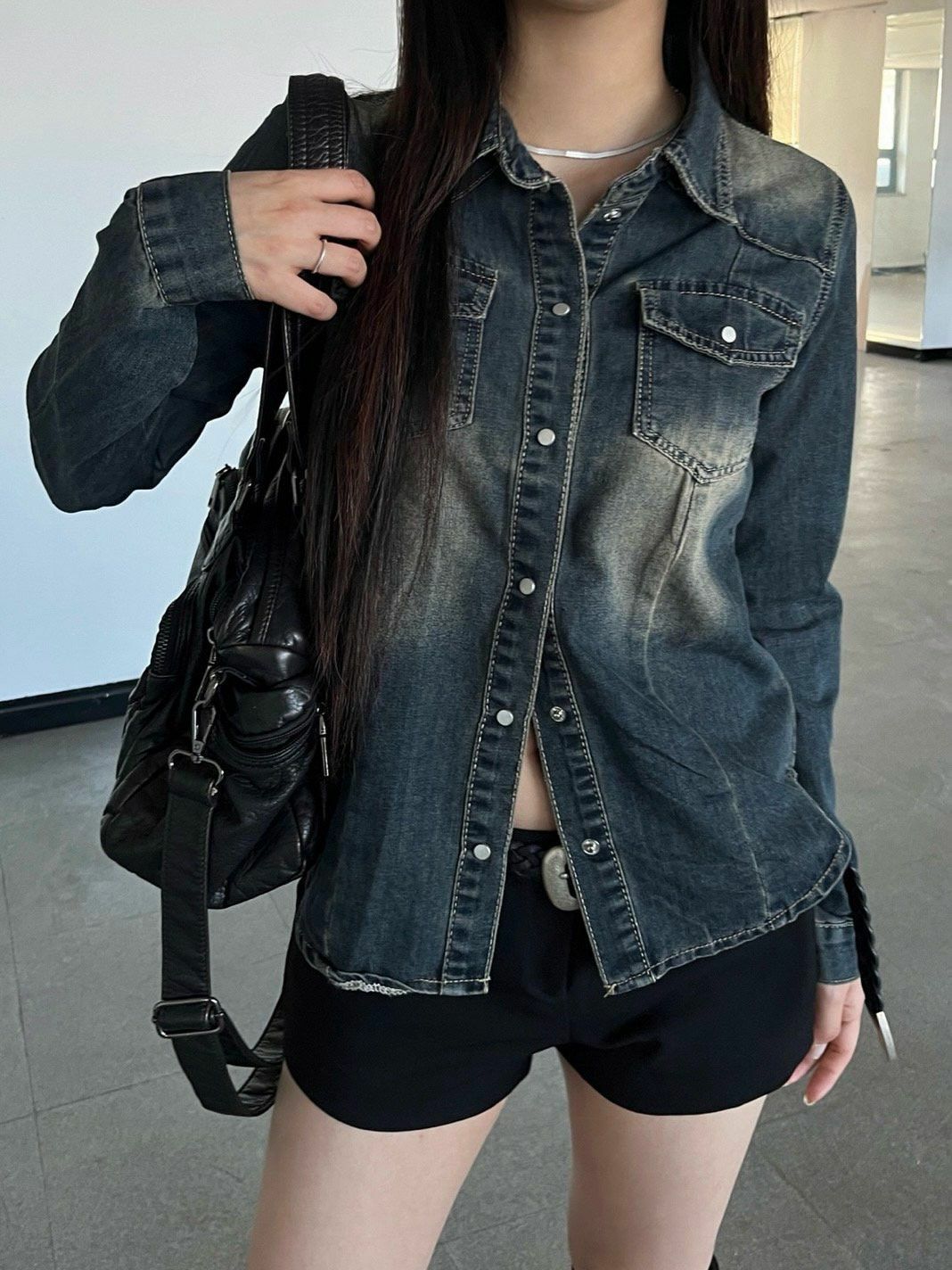 洗水牛仔長袖恤衫 Million-014S