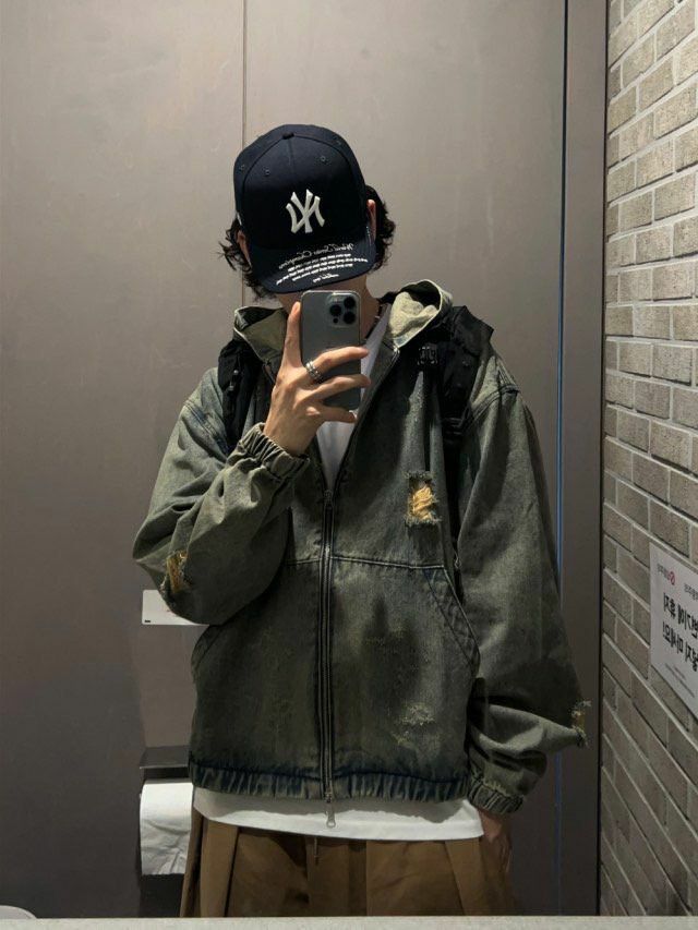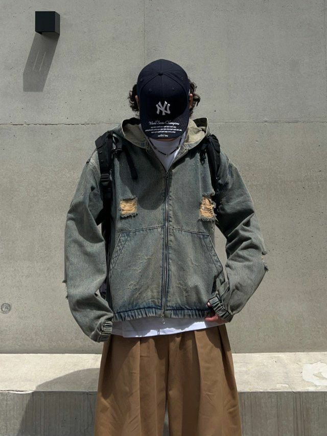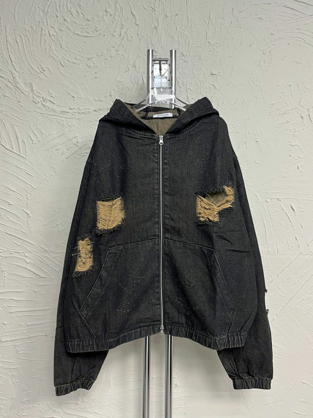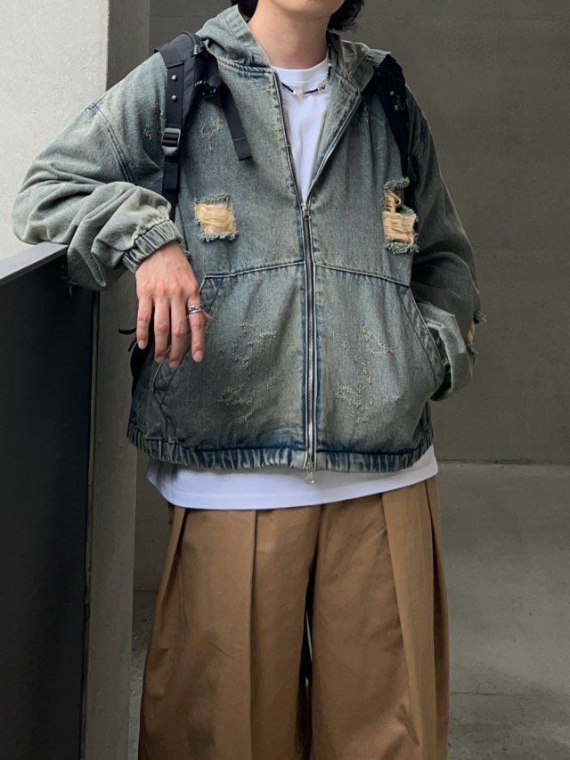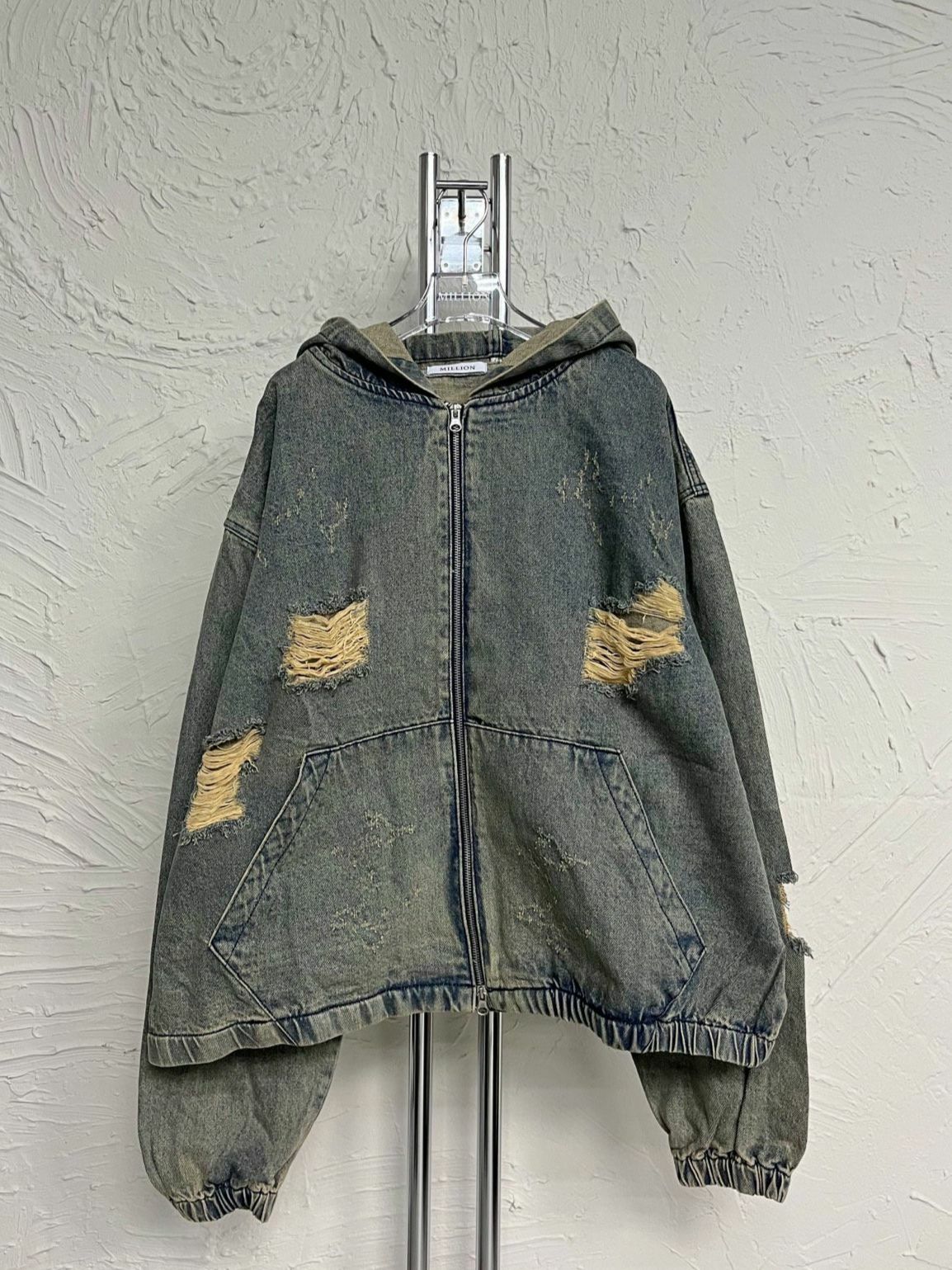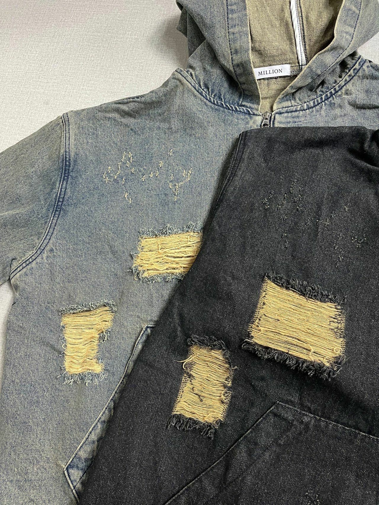 洗水破洞連帽拉鍊牛仔外套 Million-015JK