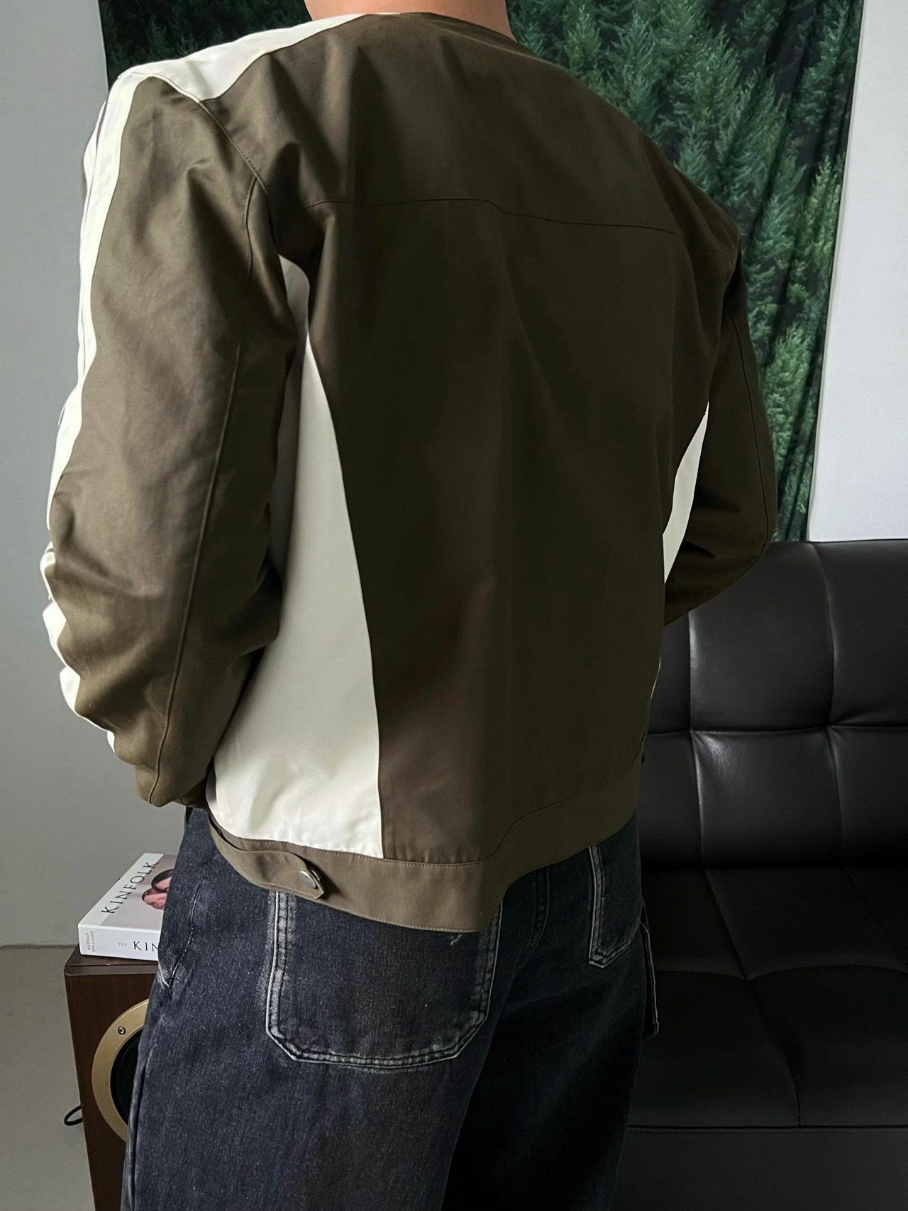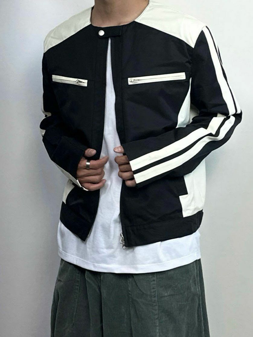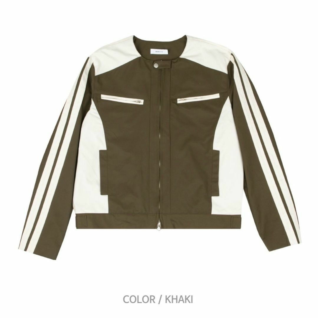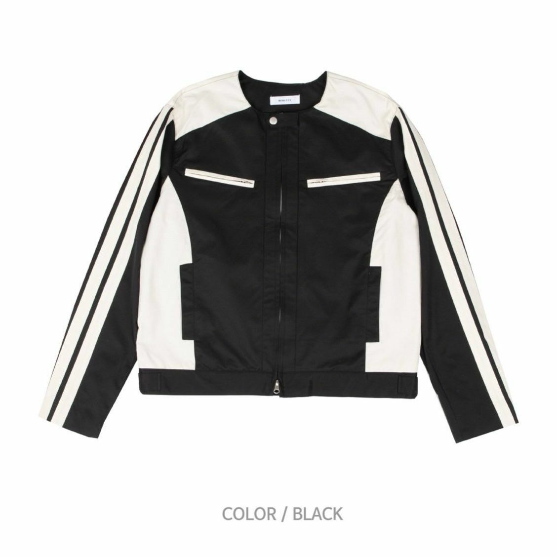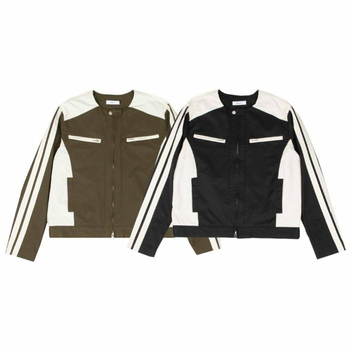 圓領拼色拉鍊合成皮褸 MINETTE-006JK