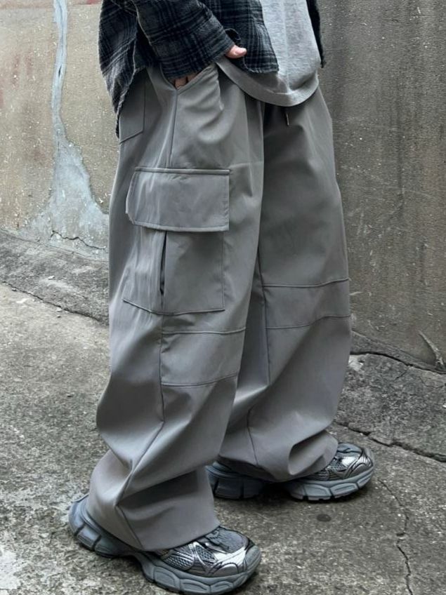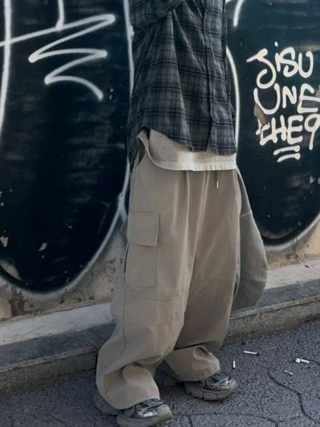 淨色可束腳工裝鬆身褲 MONTH-019P