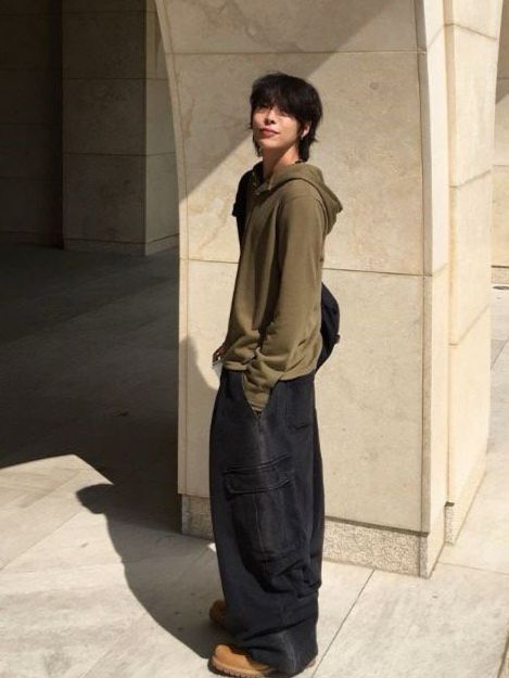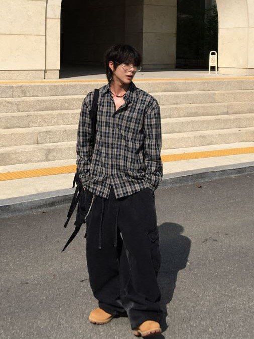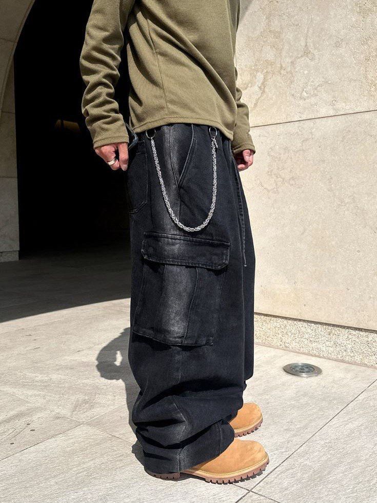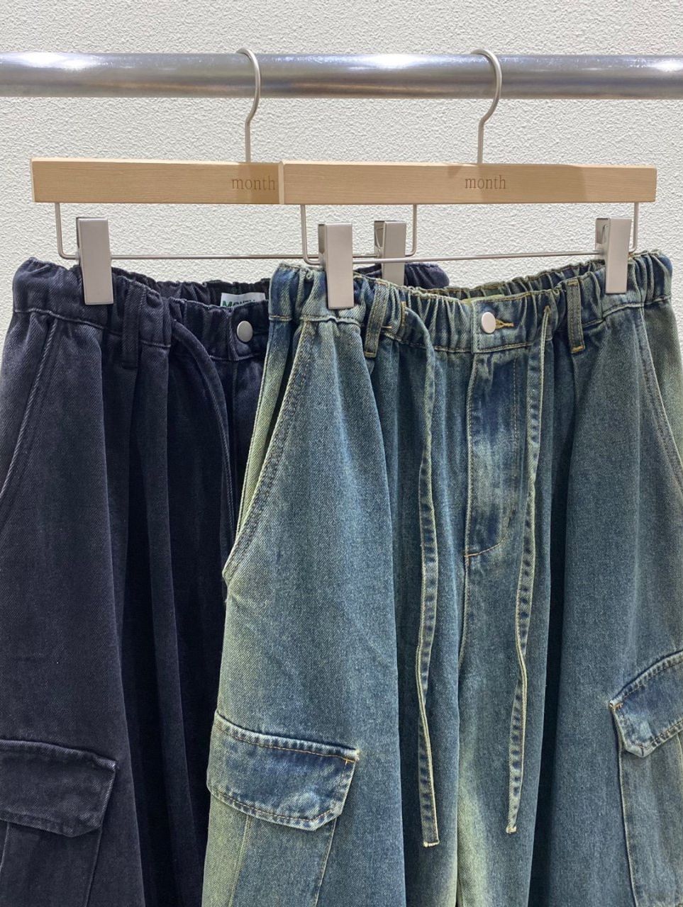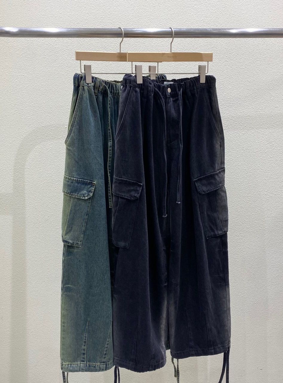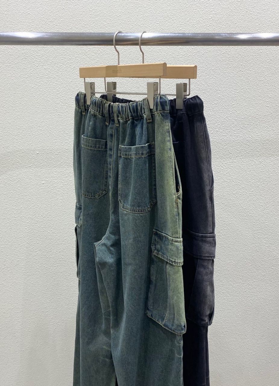 洗水淨色工裝鬆身牛仔褲 MONTH-025P