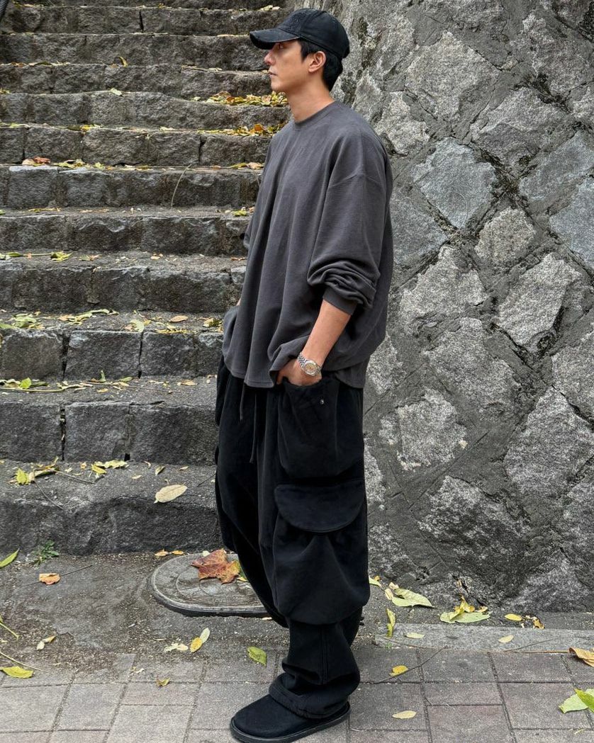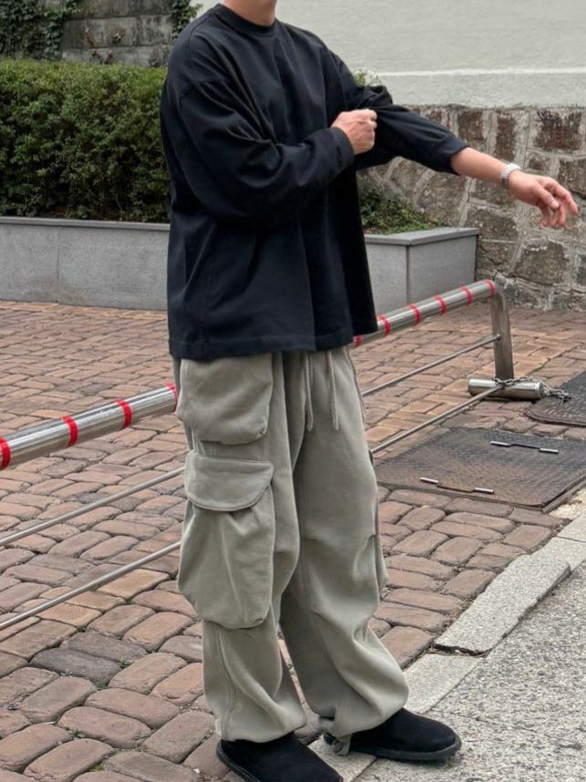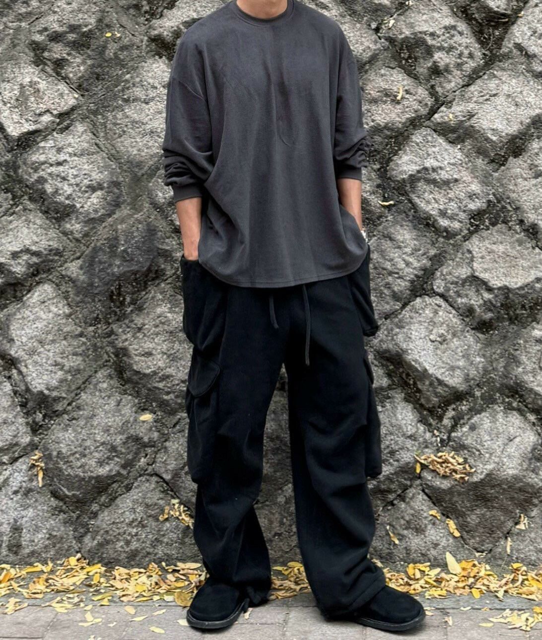淨色可束腳工裝鬆身褲(薄抓毛底) MOSCO-014P