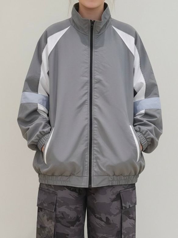 拼色企領拉鍊外套 Not-029JK