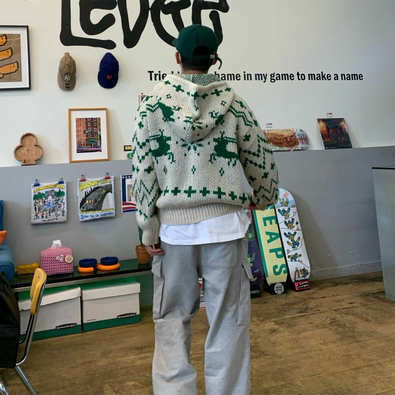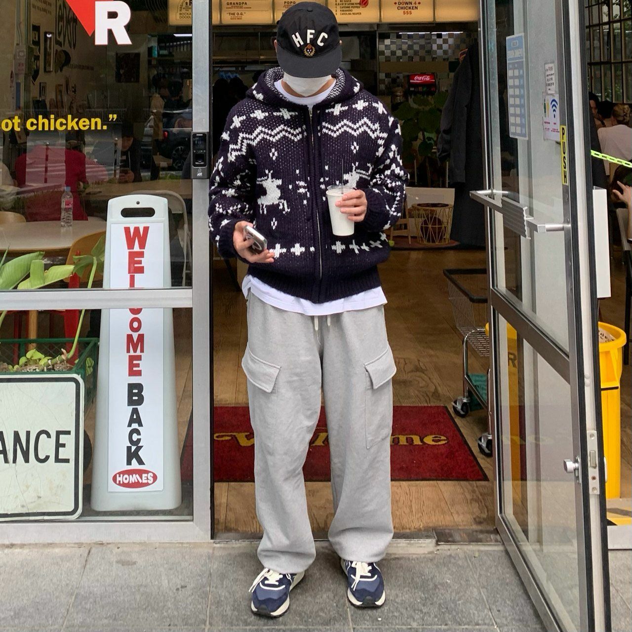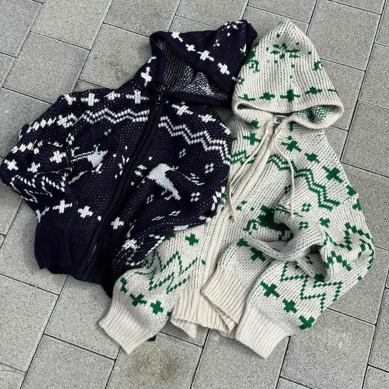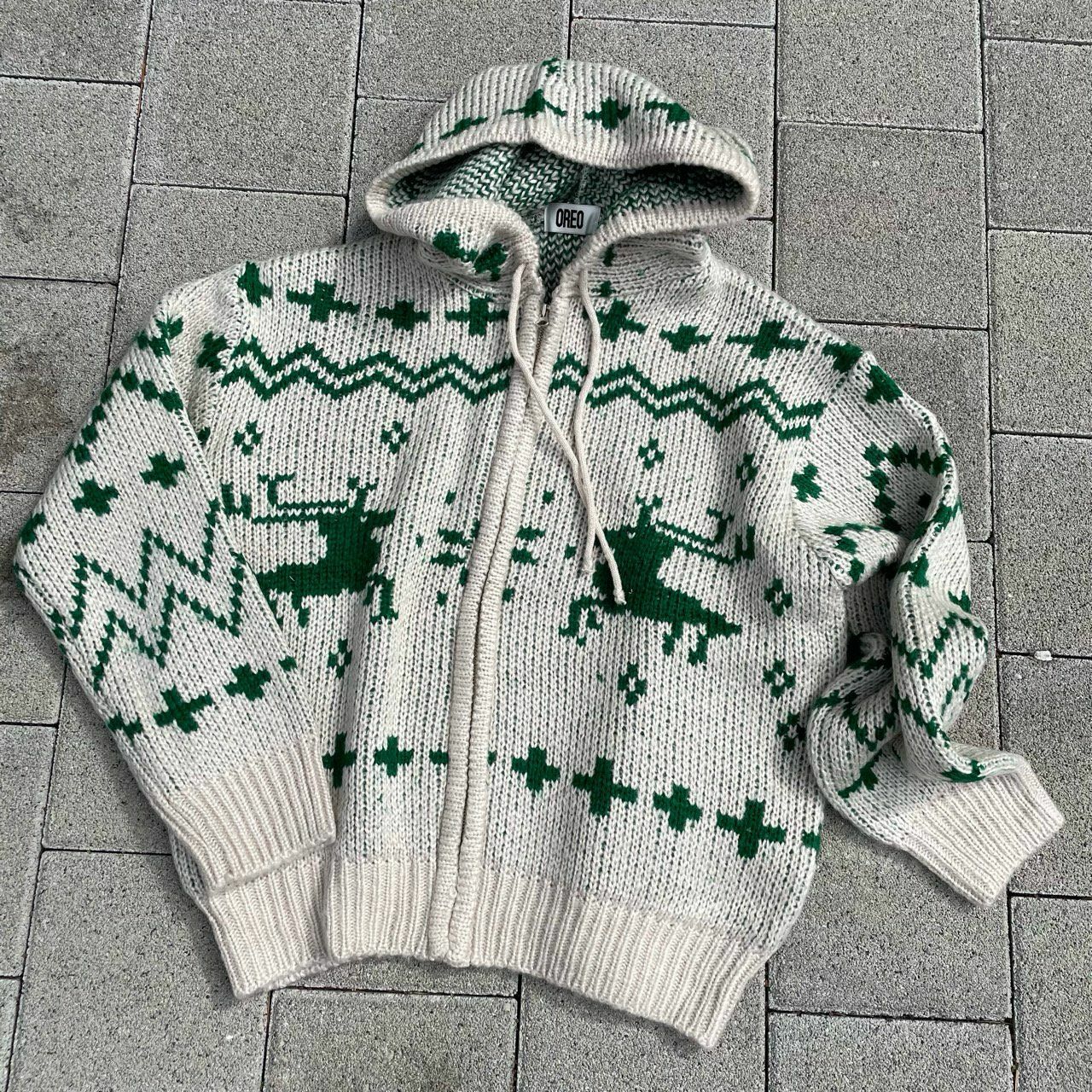 鹿圖案連帽拉鍊針織外套 OREO-028JK