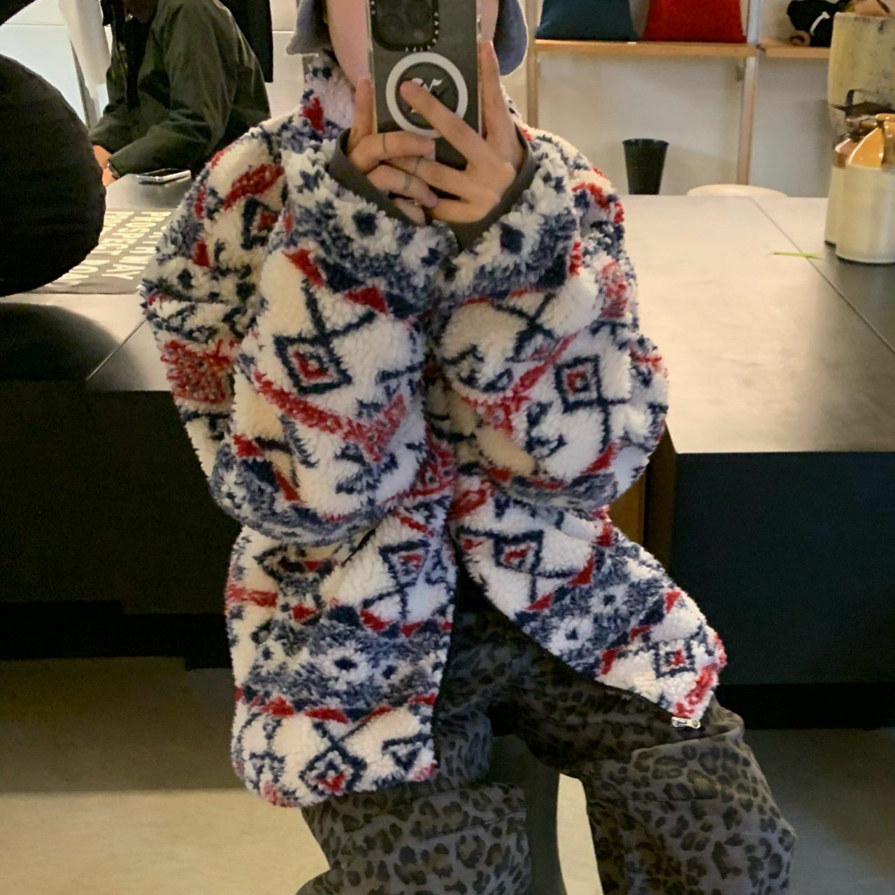 民族花拉鍊毛毛褸 OREO-098JK
