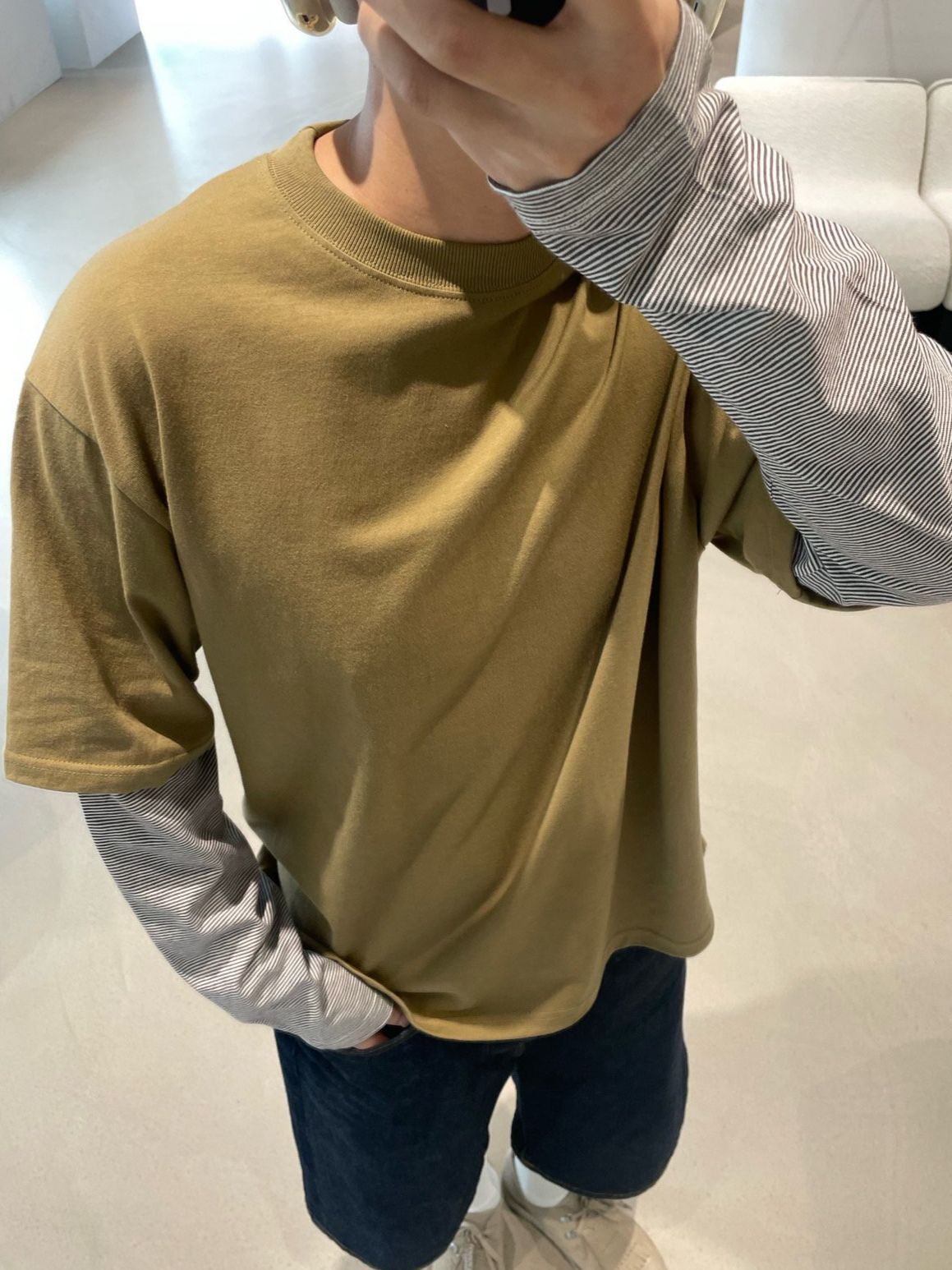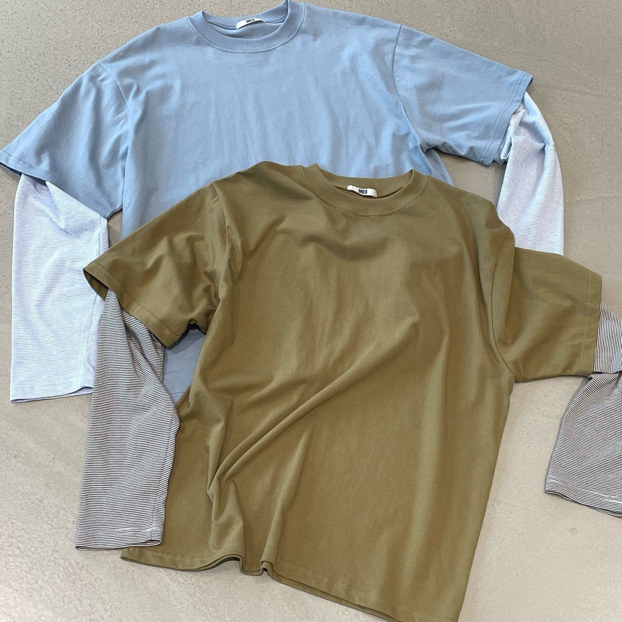 假兩件橫間袖長袖衫 OREO-122T