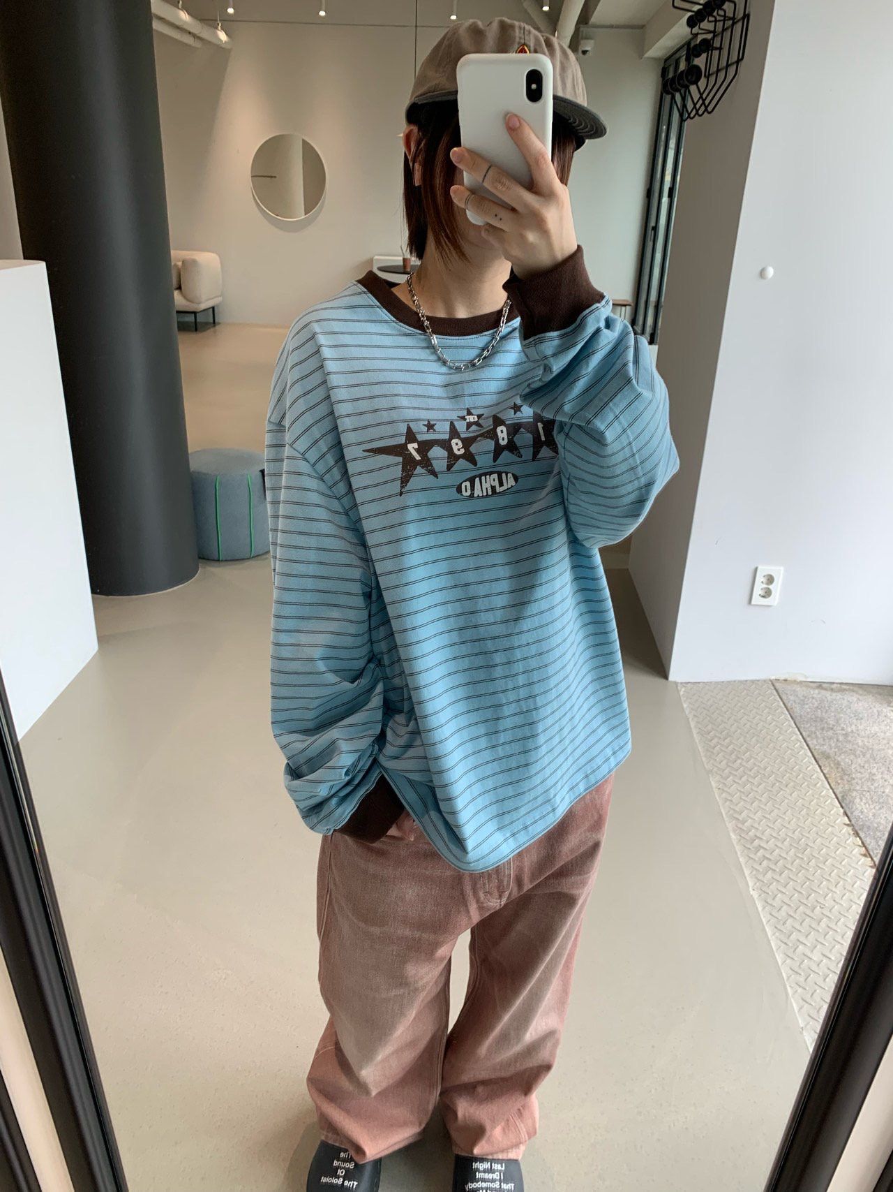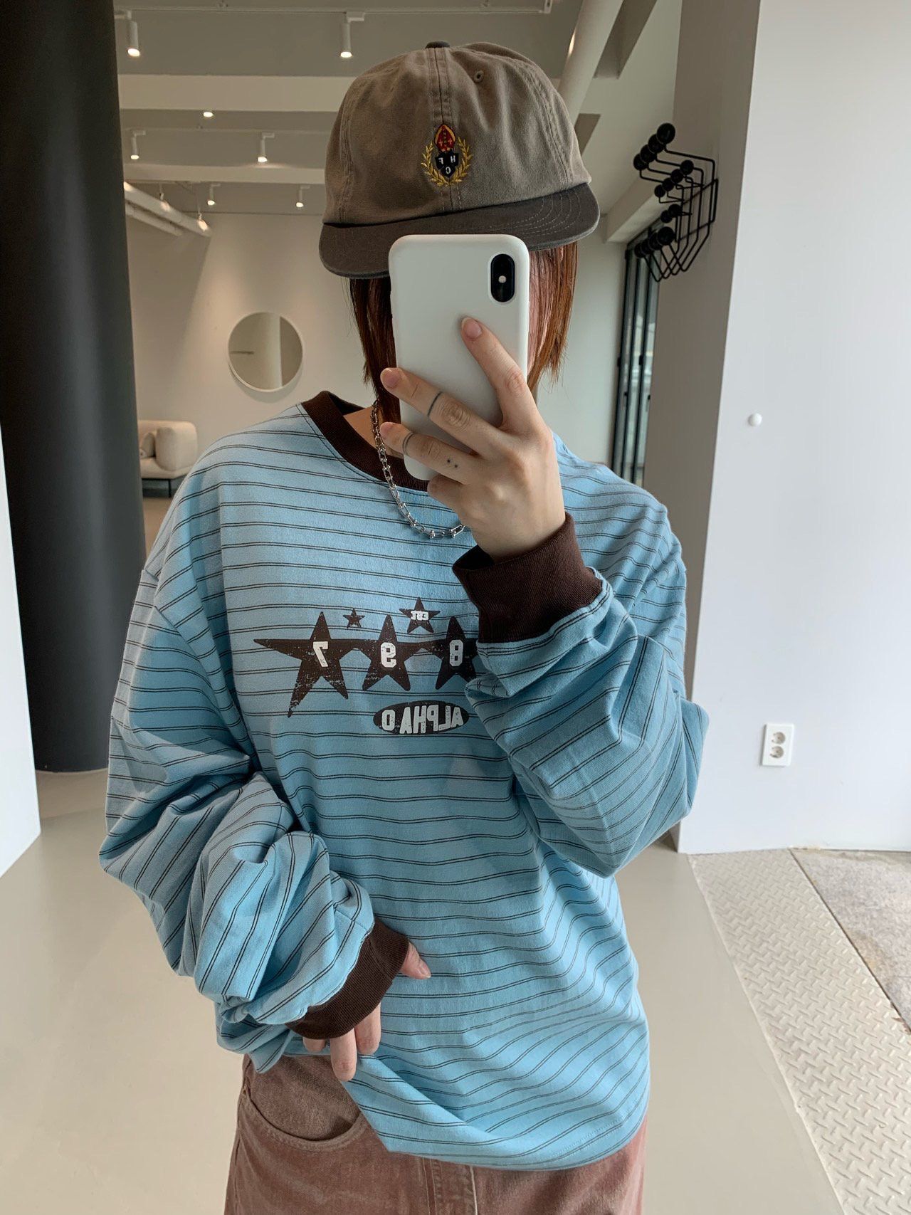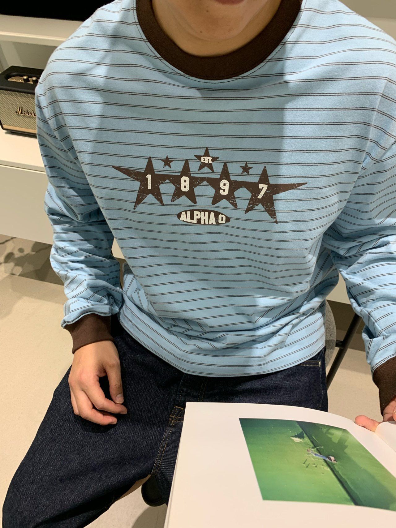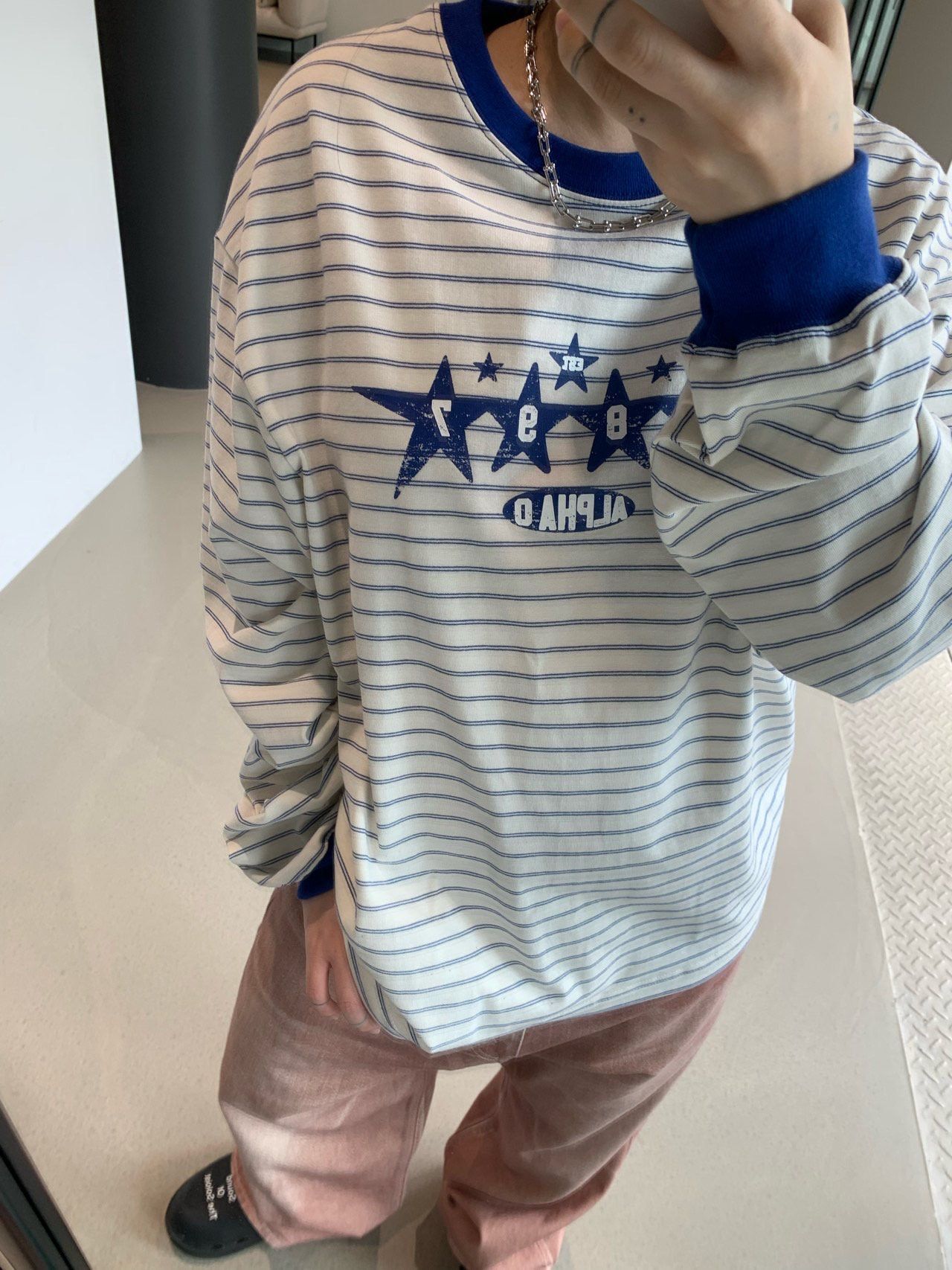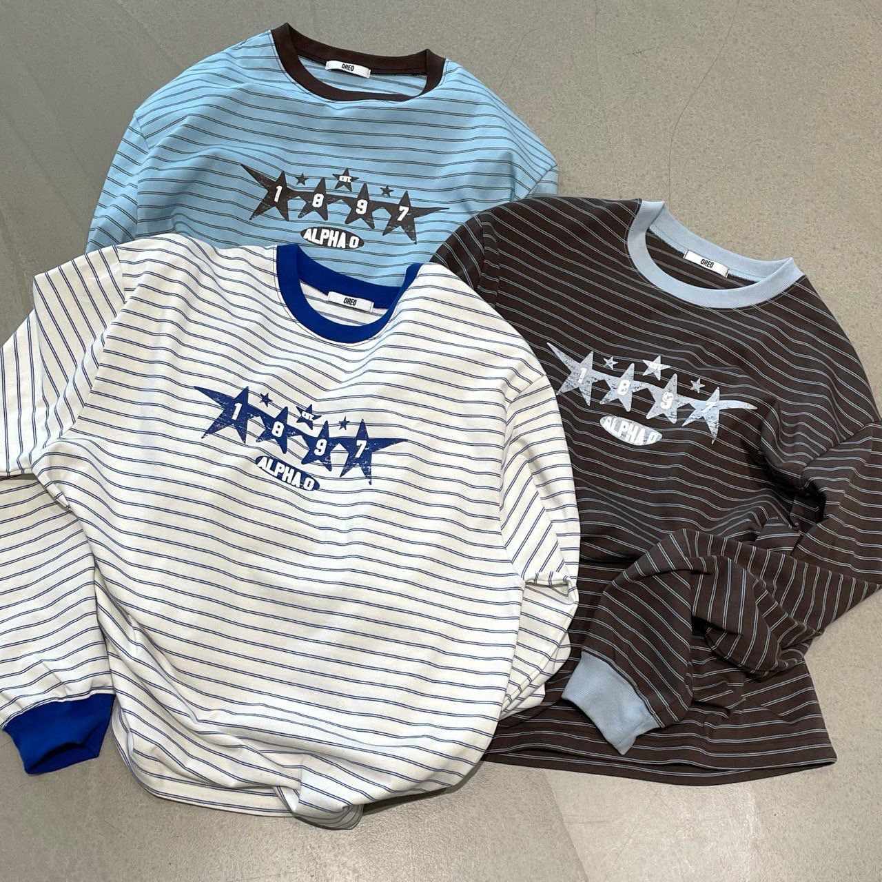 橫間圖案長袖衫 OREO-124T