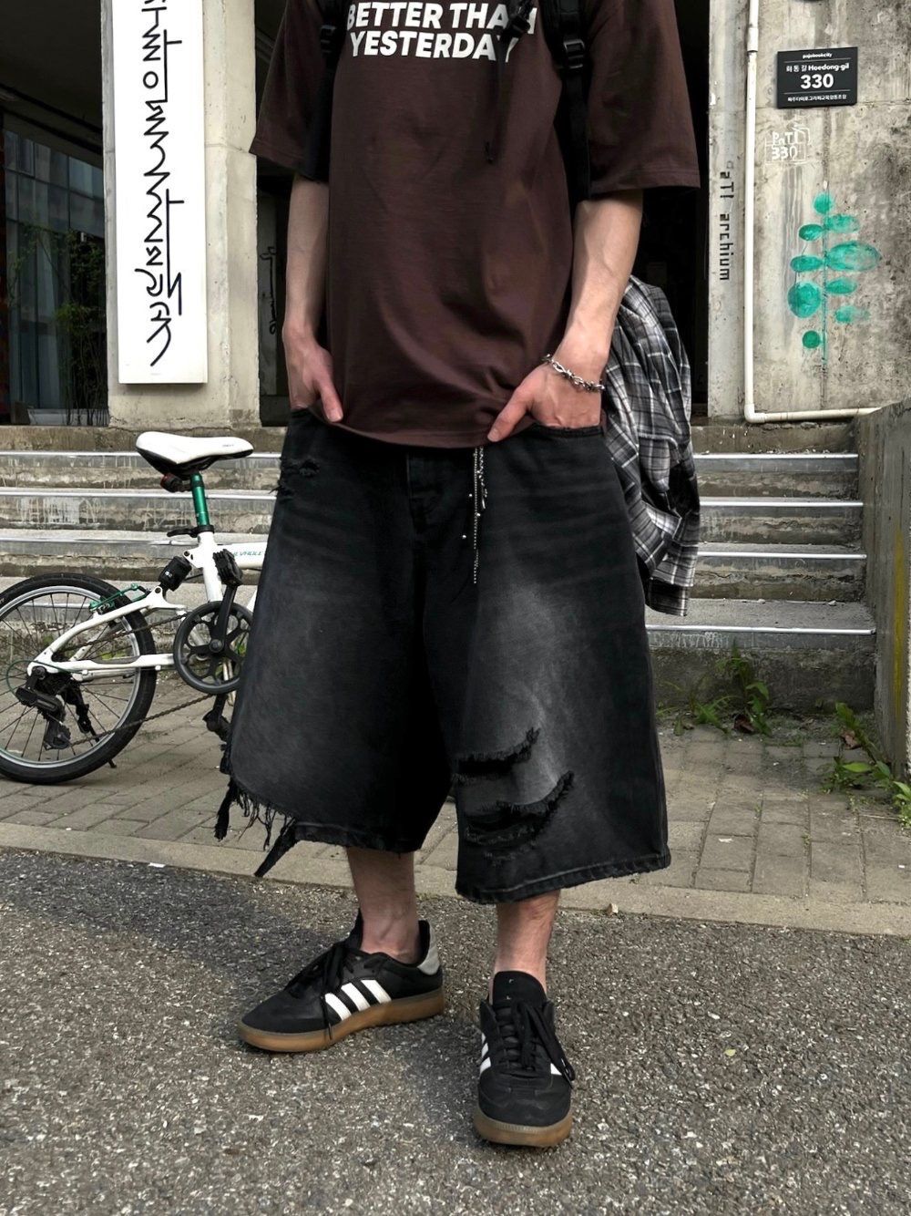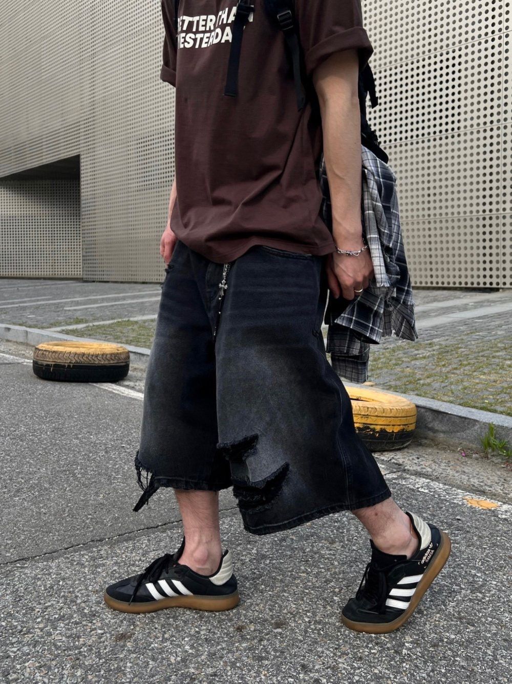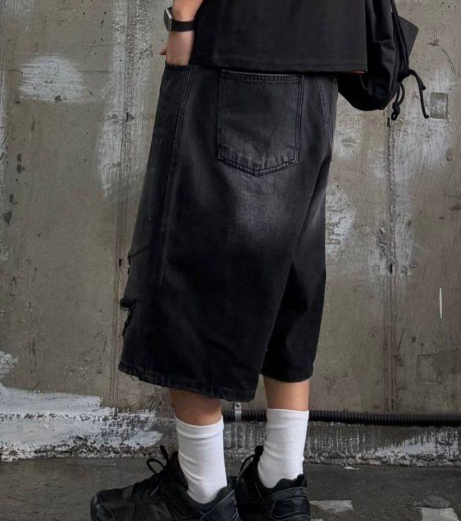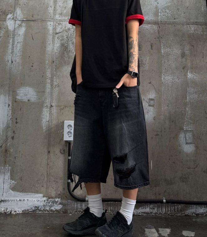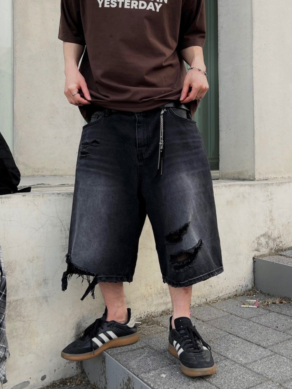 仿污破洞牛仔鬆身褲 OTHERFIT-016J