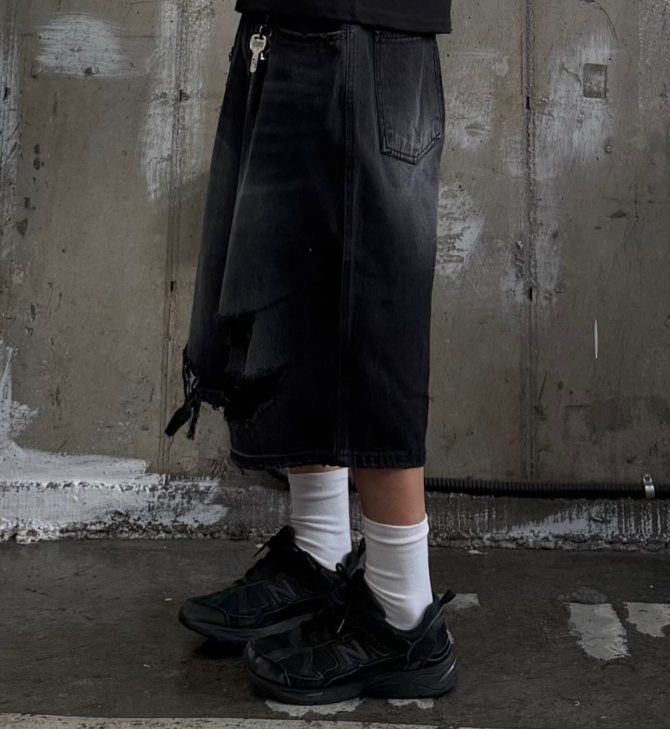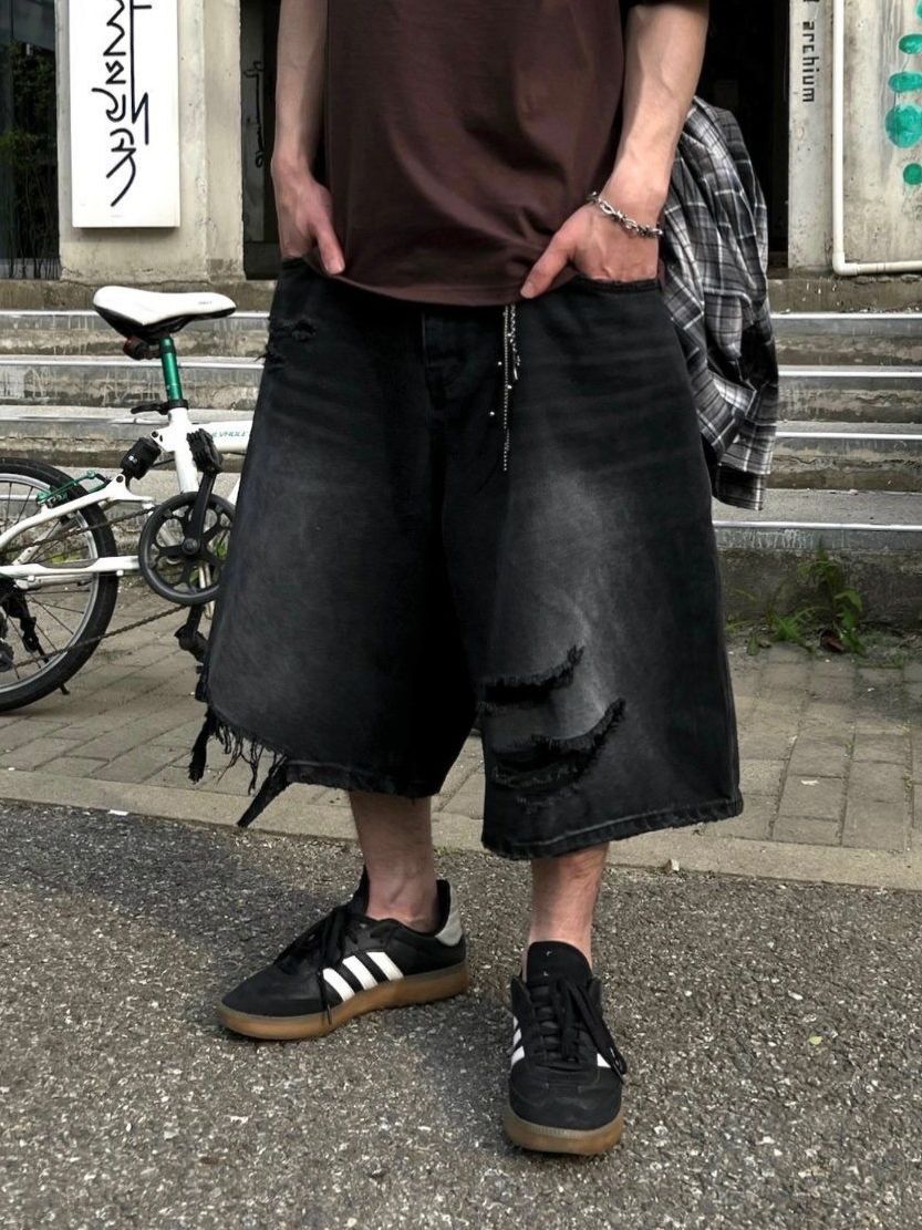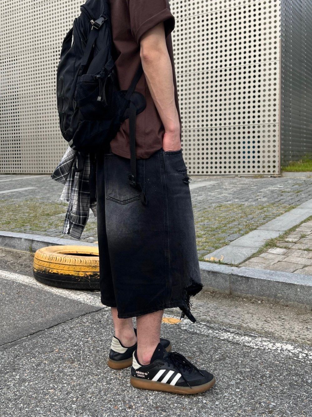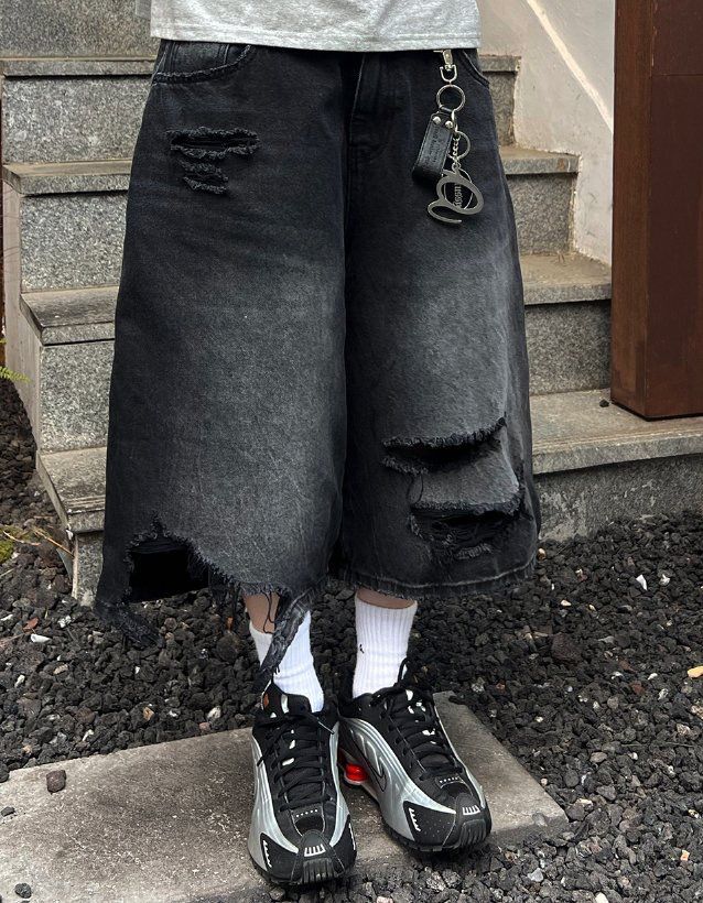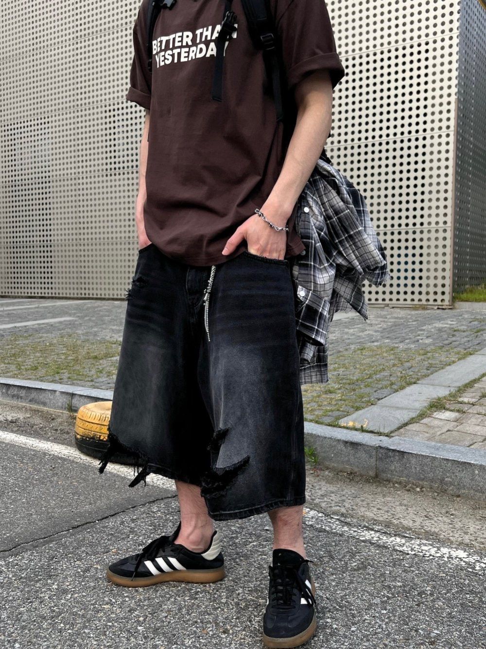 仿污破洞牛仔鬆身褲 OTHERFIT-016J