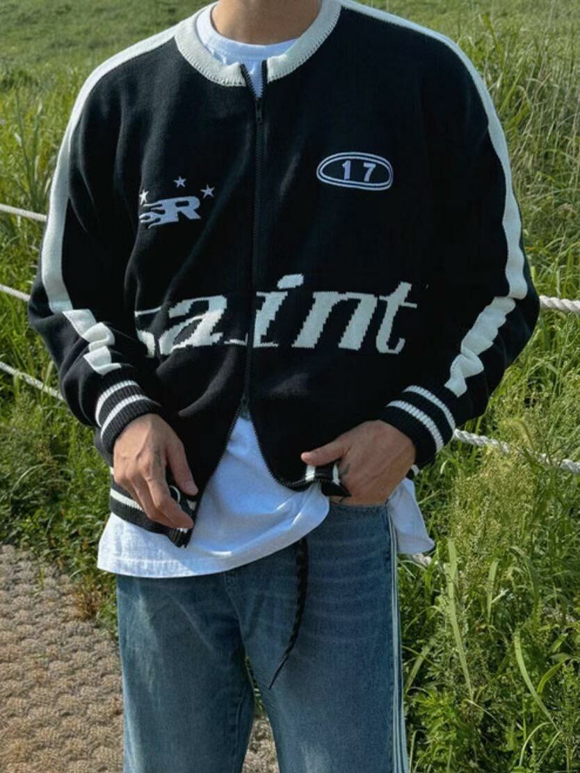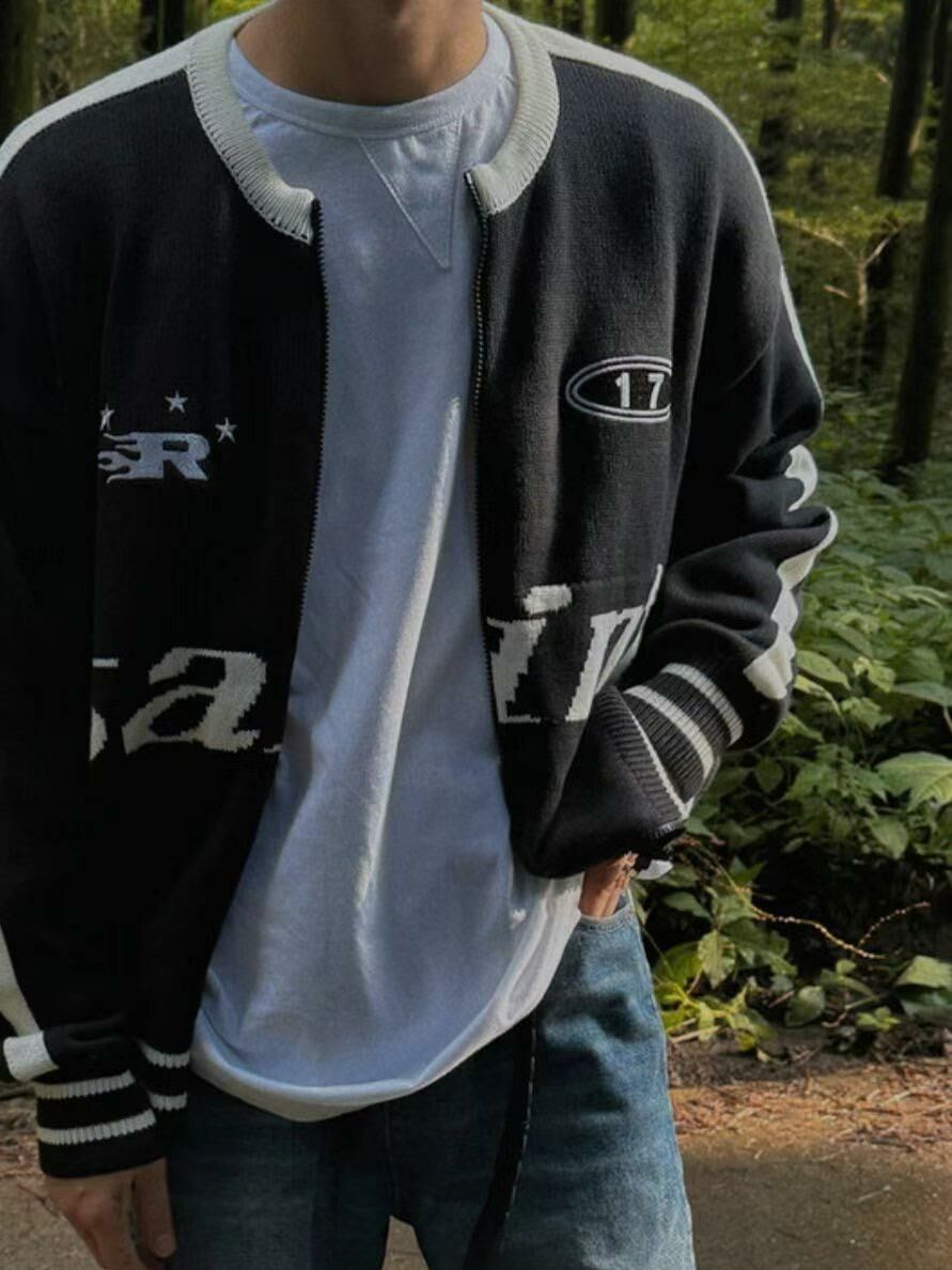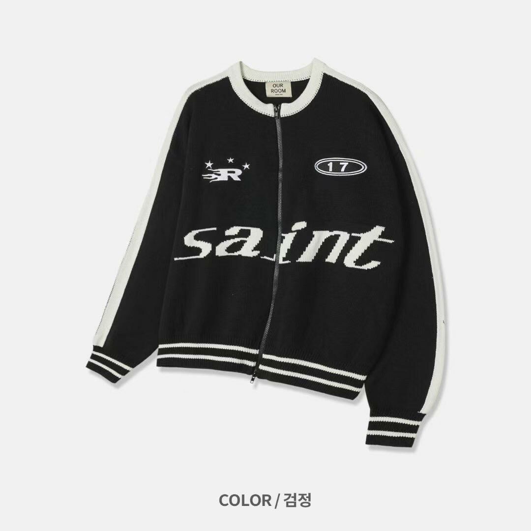 英文字拉鍊針織外套 OUR ROOM-009JK