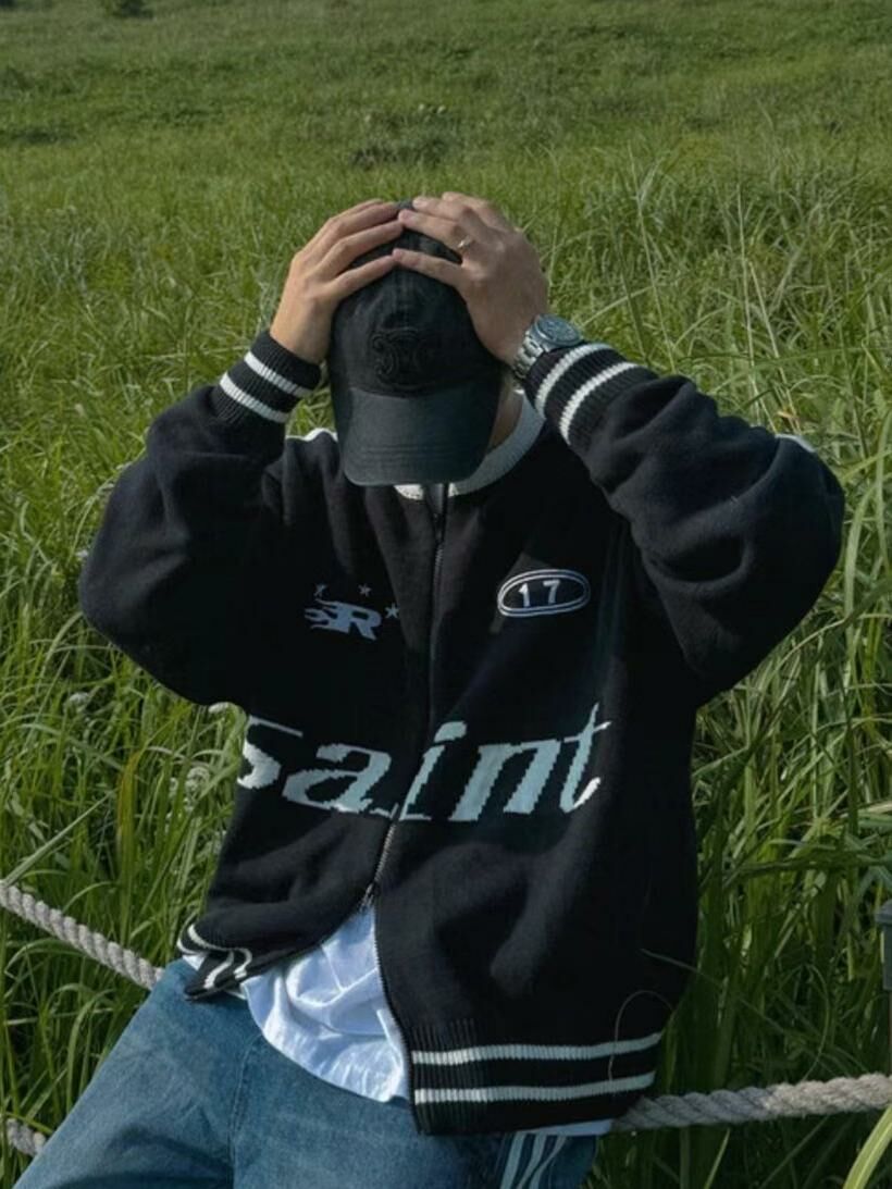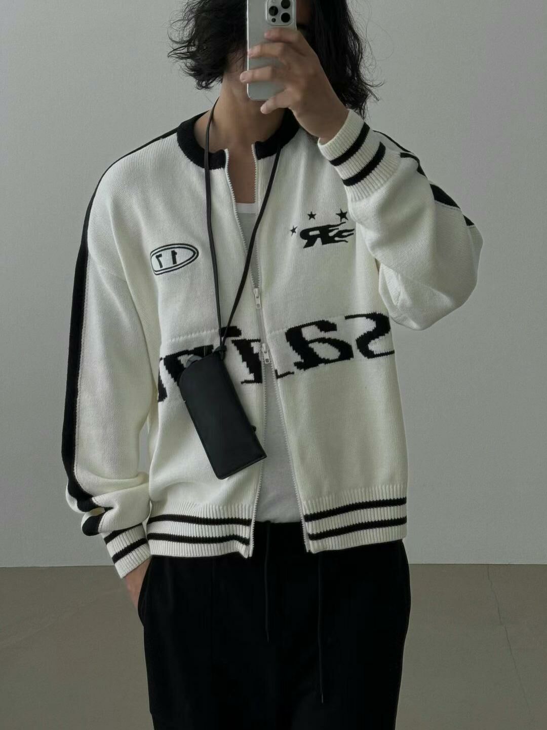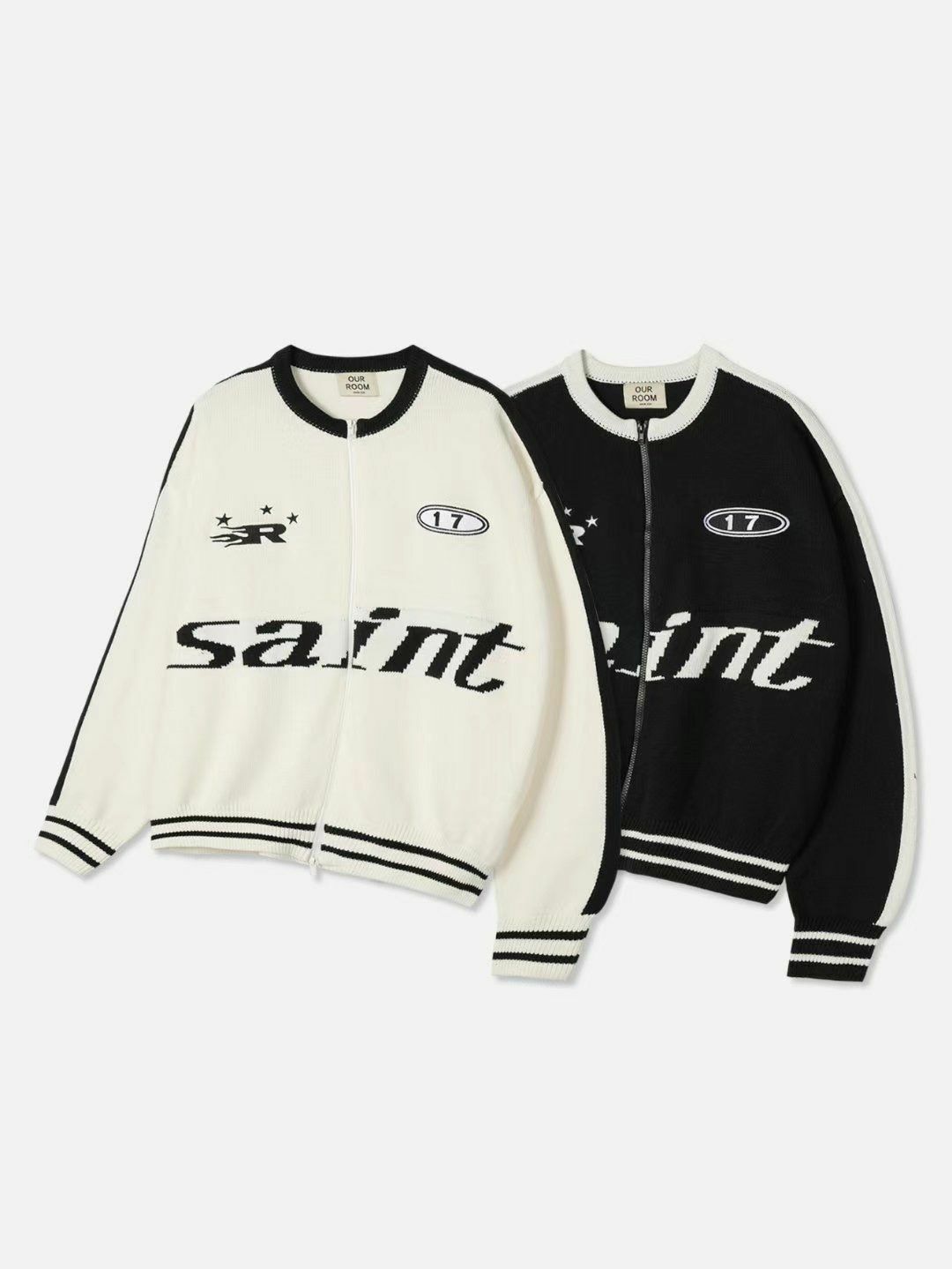 英文字拉鍊針織外套 OUR ROOM-009JK