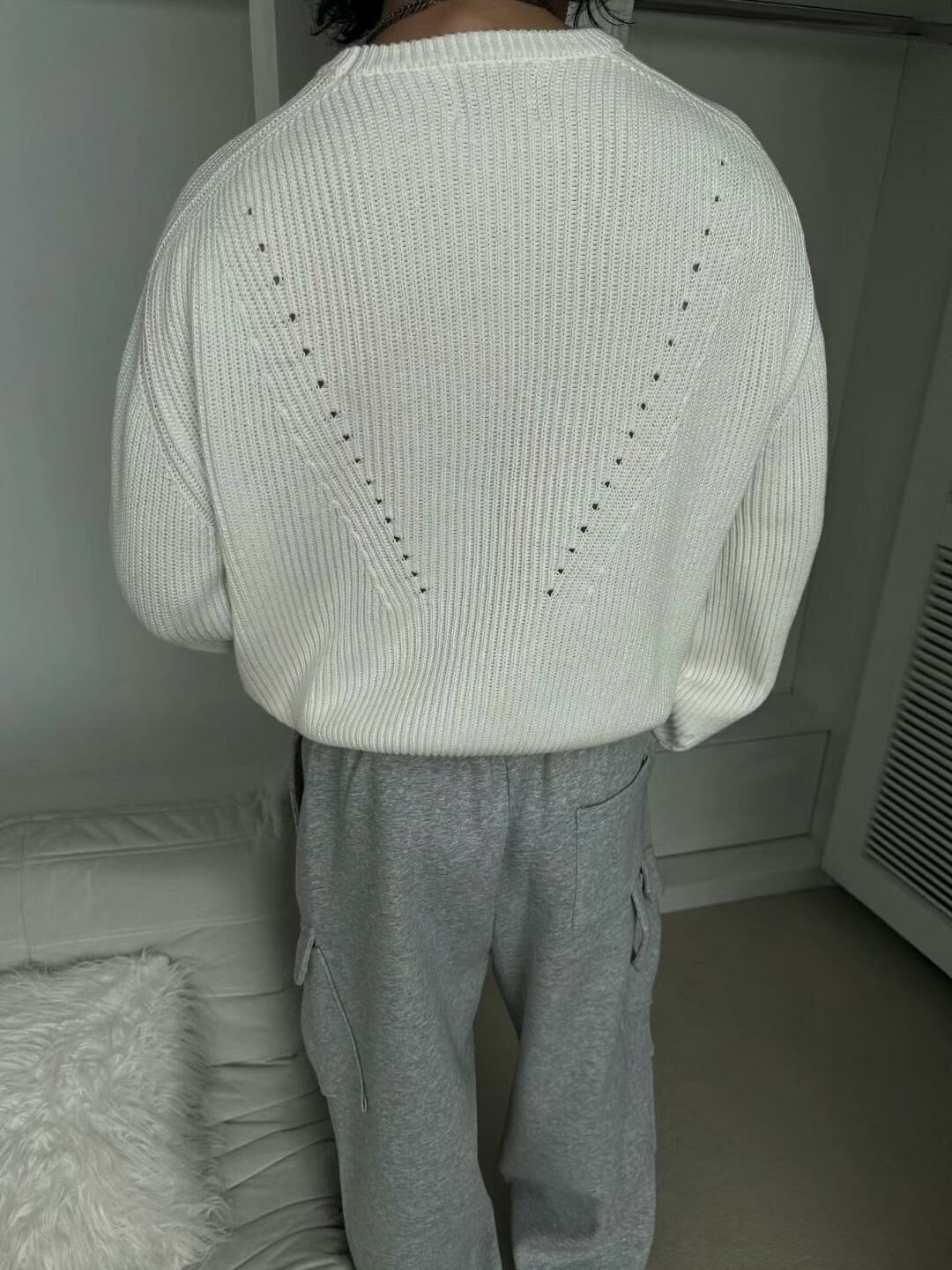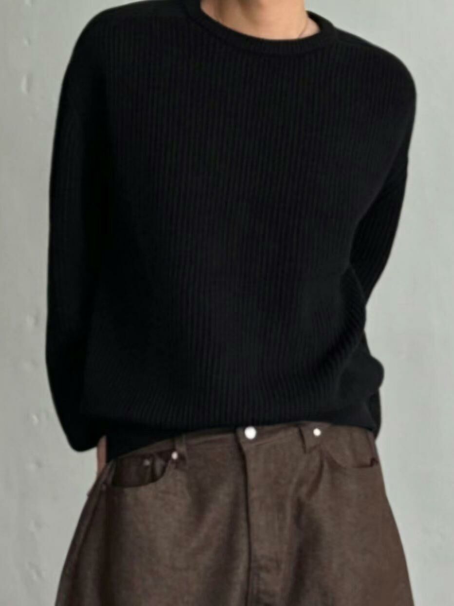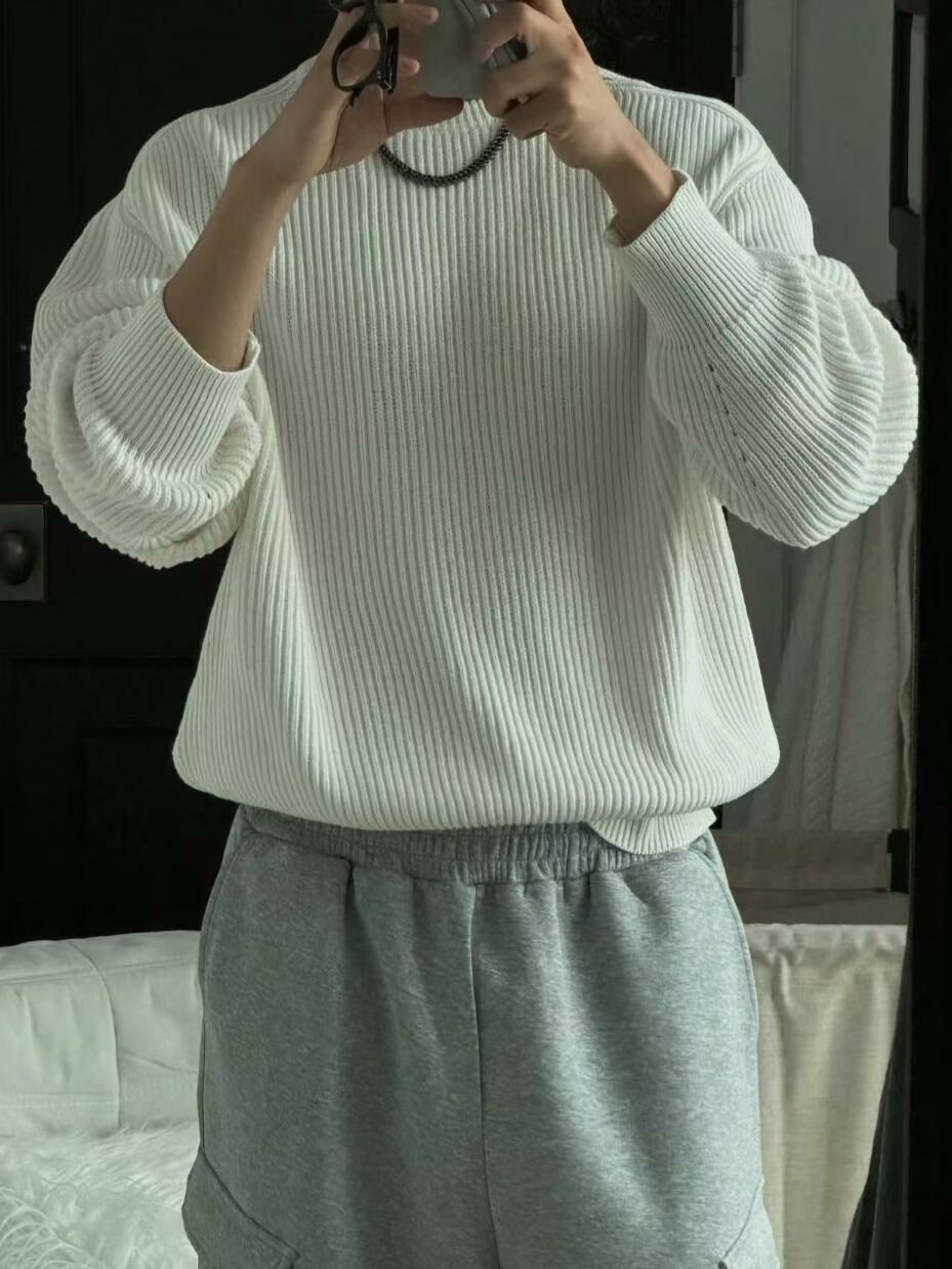 淨色圓領暗直紋針織衫 OUR ROOM-010T
