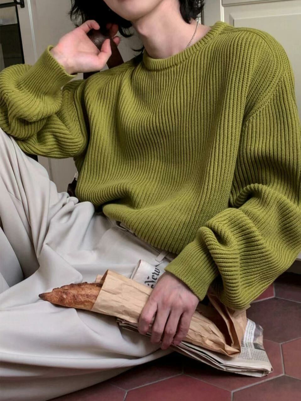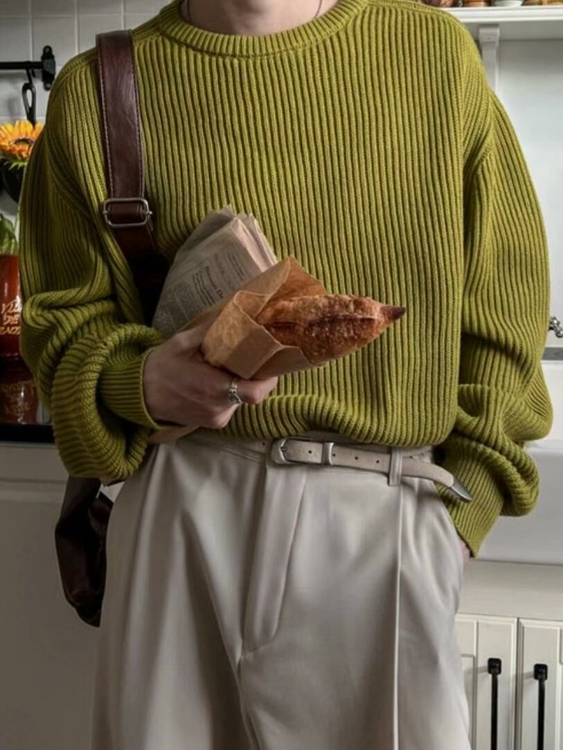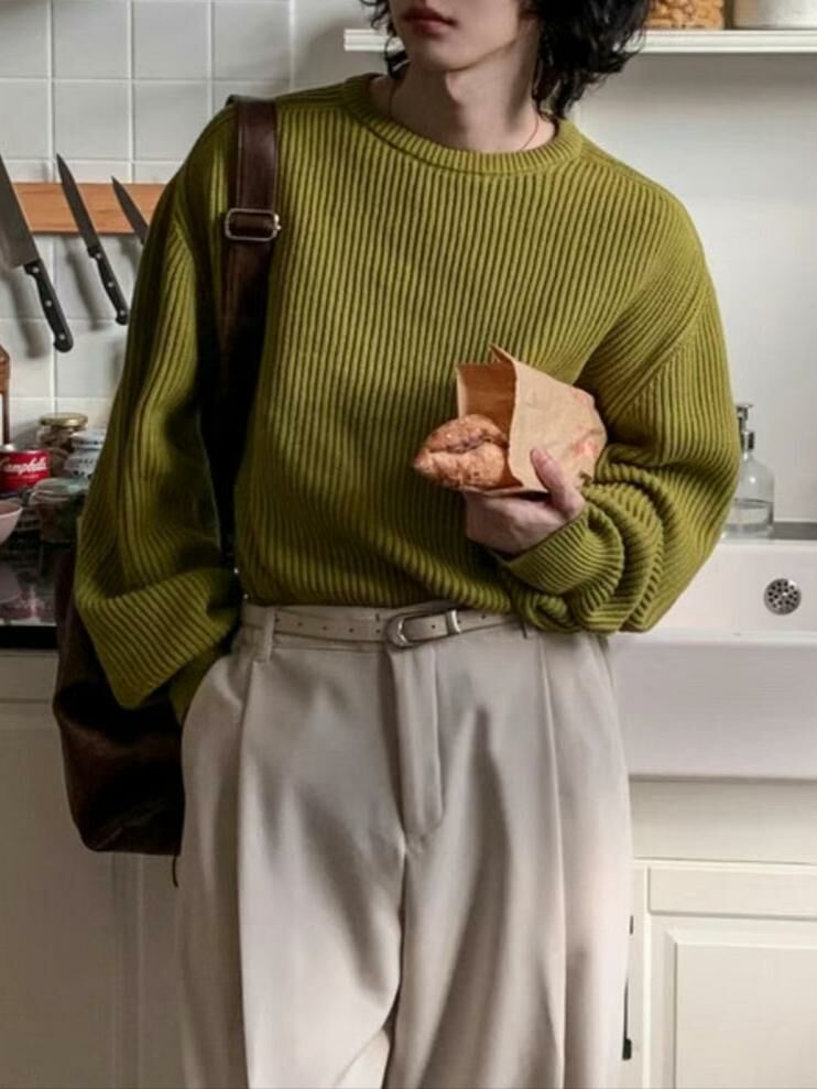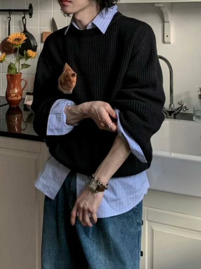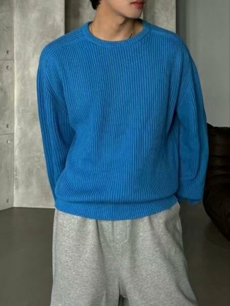 淨色圓領暗直紋針織衫 OUR ROOM-010T