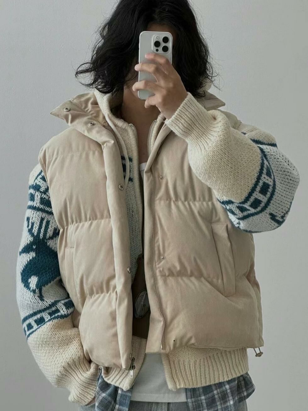 淨色企領拉鍊背心褸(夾棉) OUR ROOM-020V