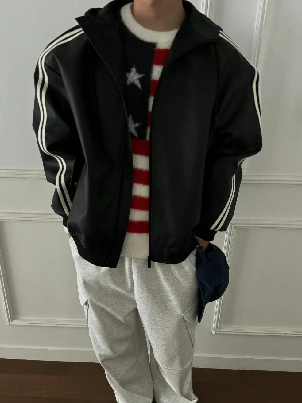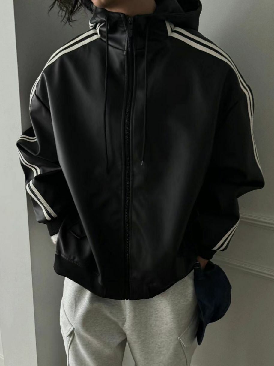 雙間連帽拉鍊合成皮褸 OUR ROOM-024JK