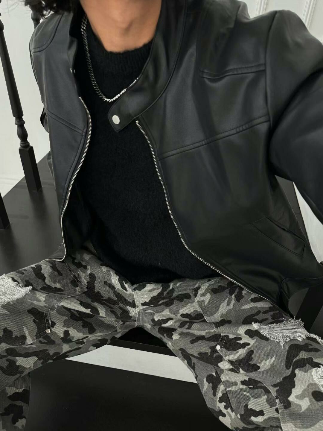 企領拉鍊合成皮褸 OUR ROOM-027JK