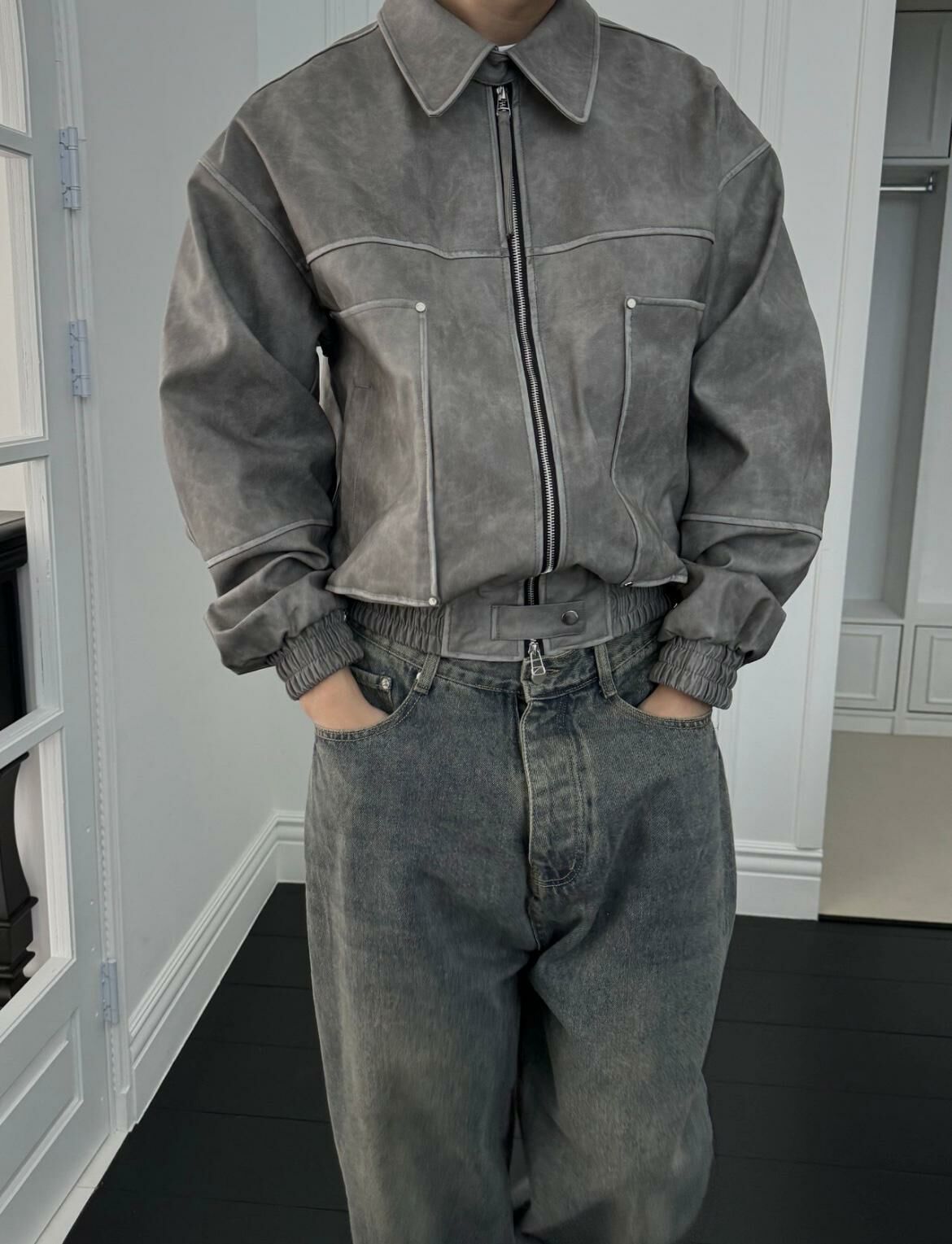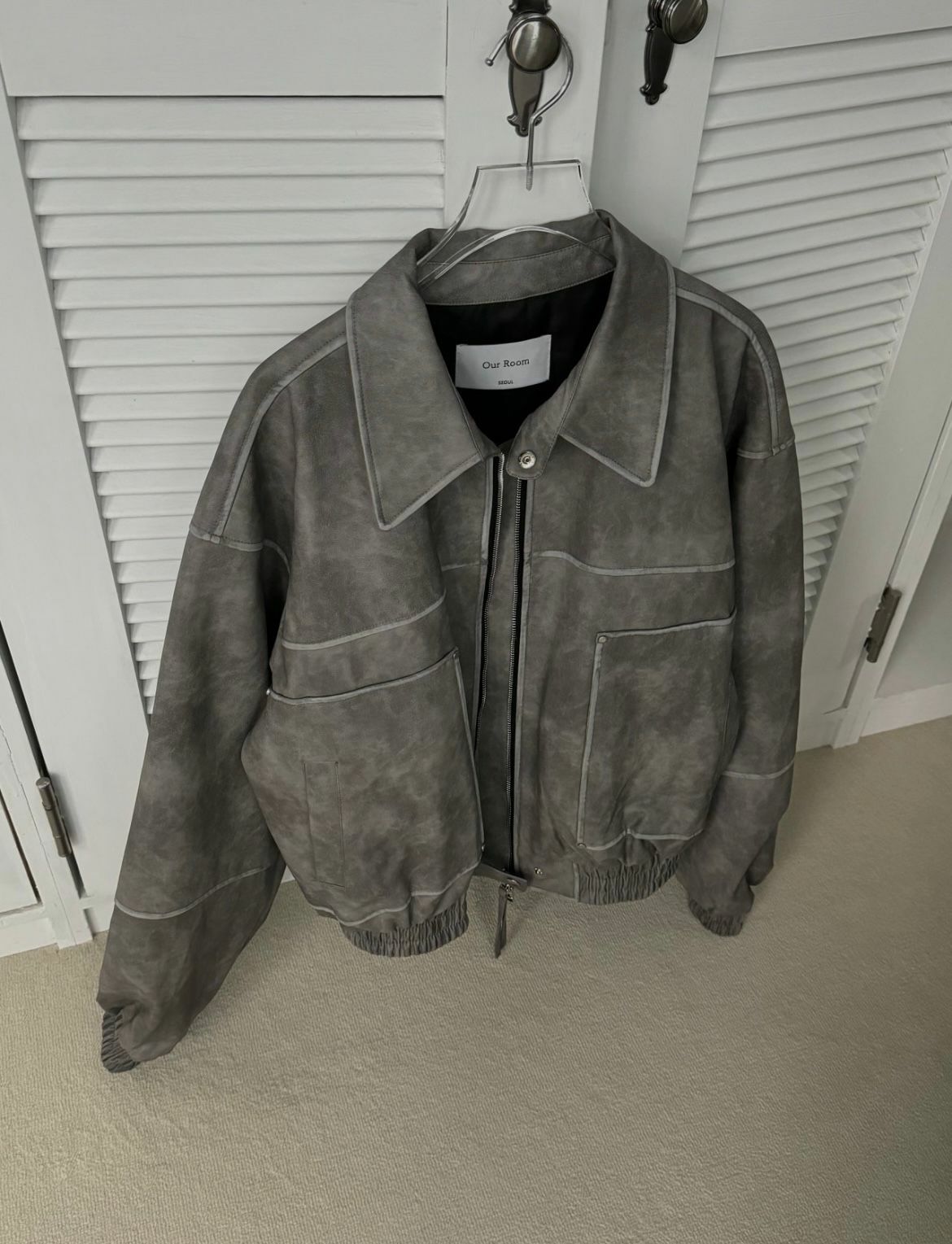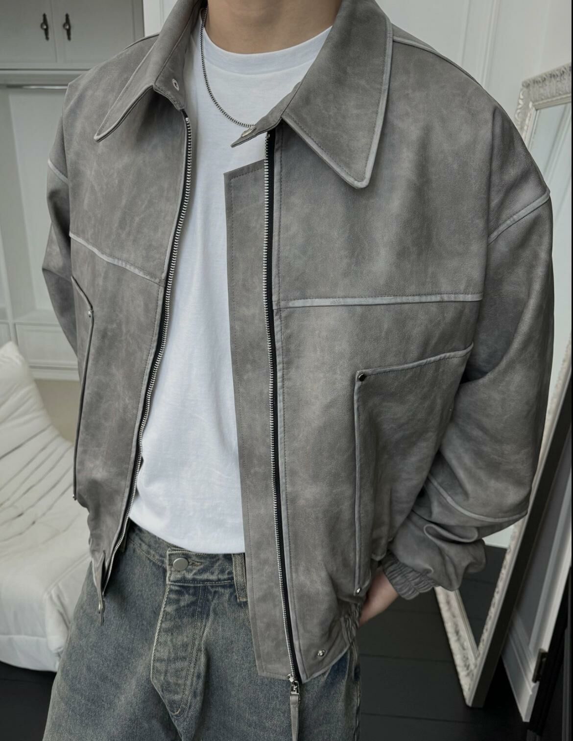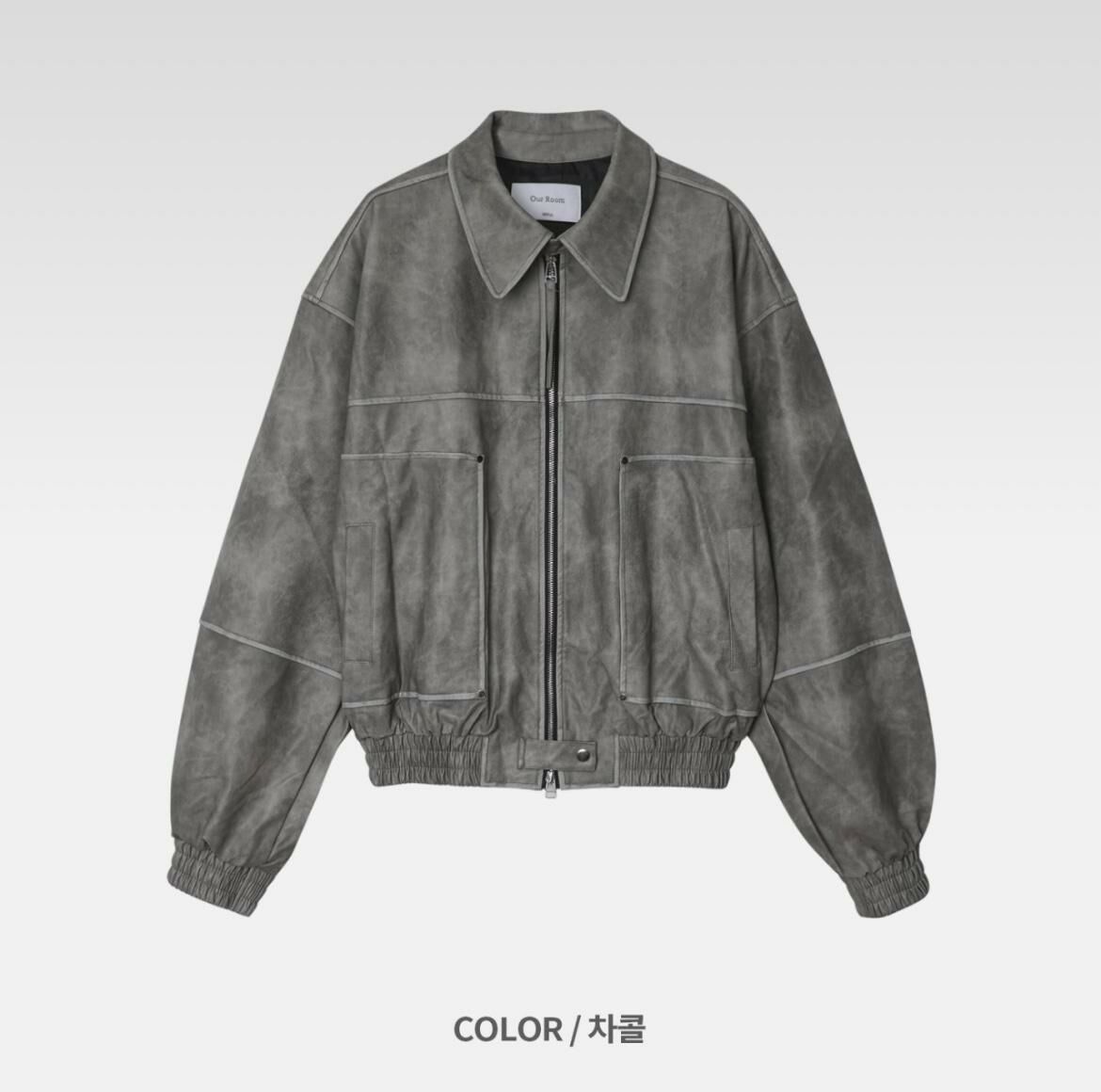 反領拉鍊合成皮褸 OUR ROOM-029JK
