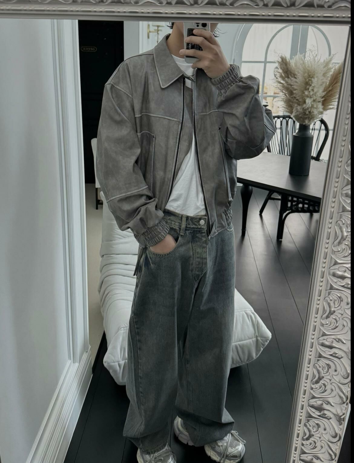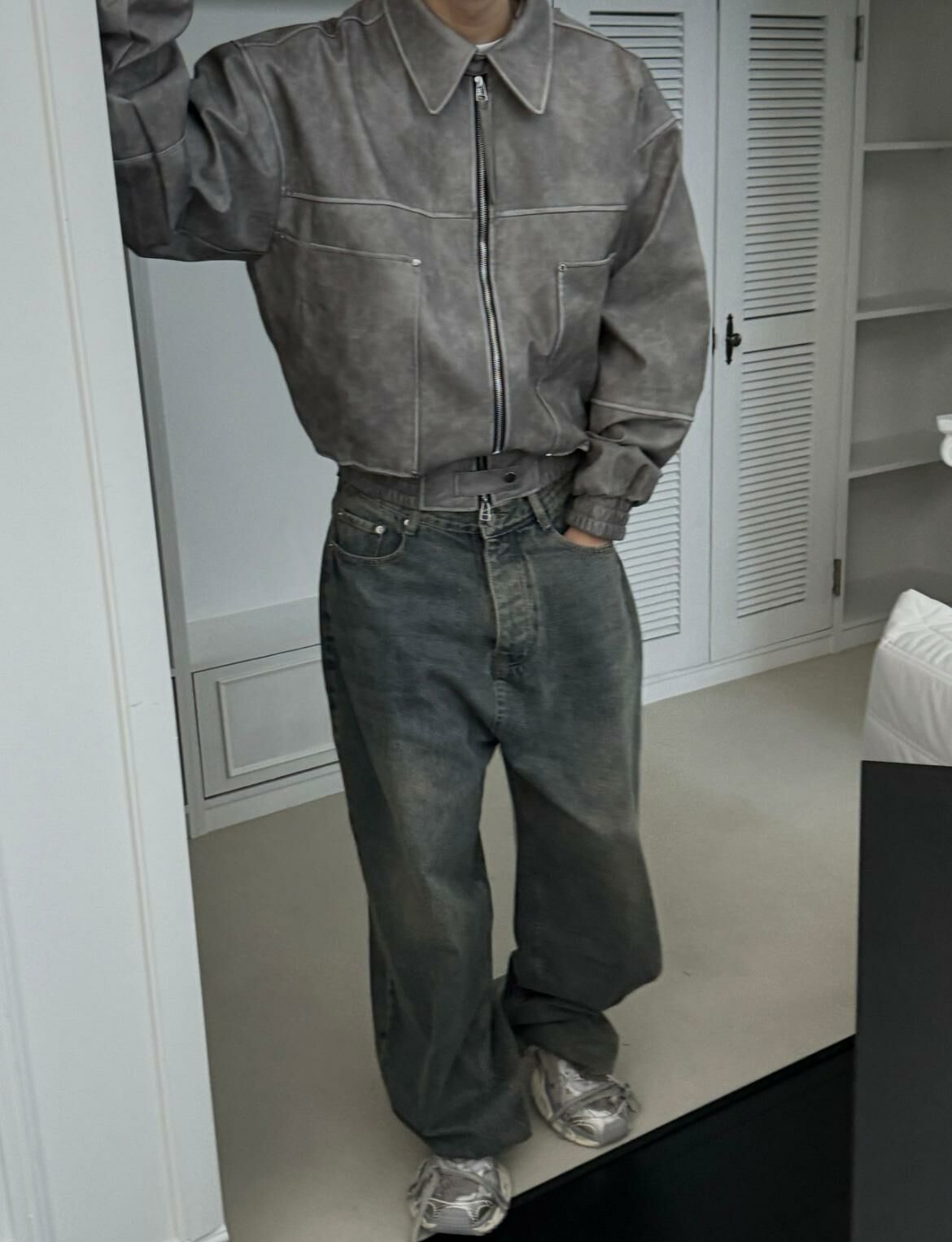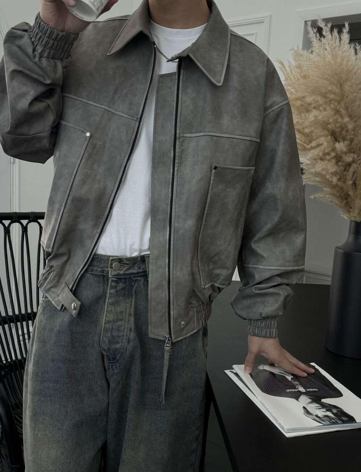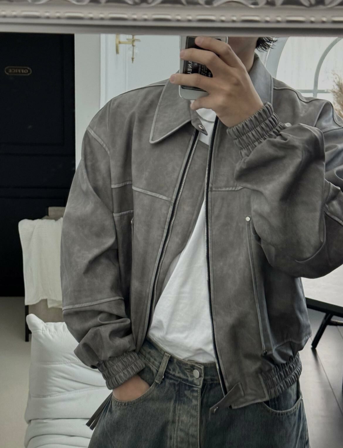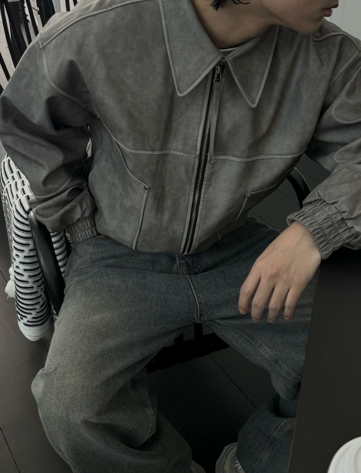 反領拉鍊合成皮褸 OUR ROOM-029JK